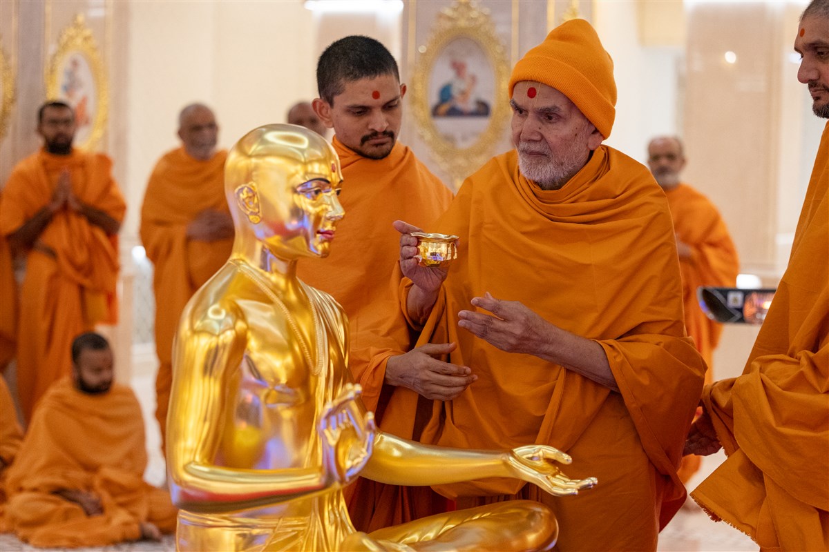 Swamishri performs the abhishek of Bhagwan Swaminarayan