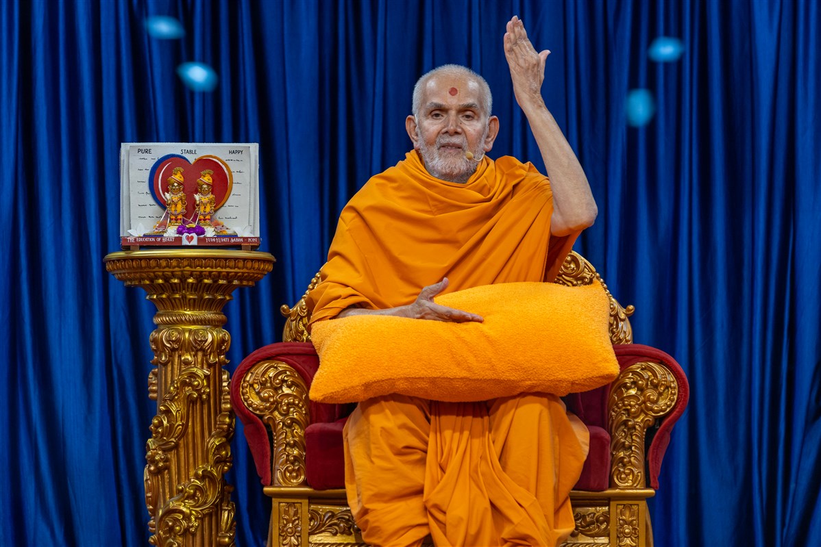 Swamishri responds to questions during the interactive session