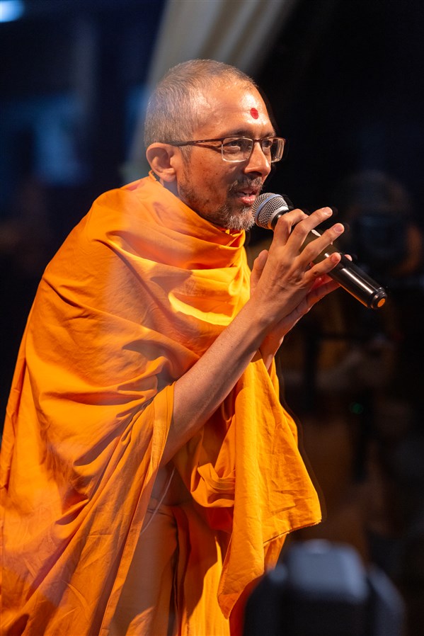During an interactive session, swamis pose questions to Swamishri