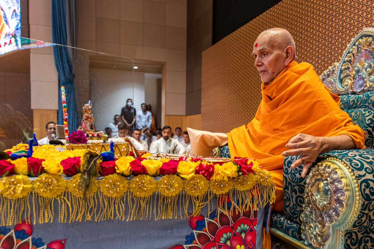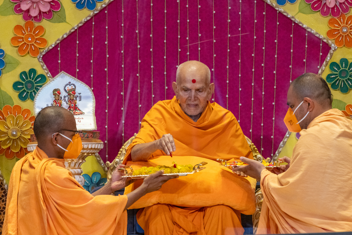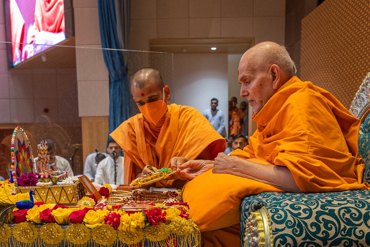 Swamishri offers thal to Brahmaswarup Pramukh Swami Maharaj
