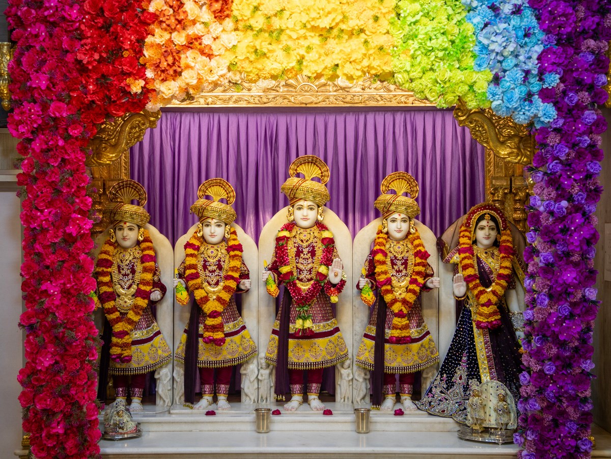 Pujya Bhaktipriya Swami (Kothari Swami), Pujya Tyagvallabh Swami, Pujya Ishwarcharan Swami and Pujya Viveksagar Swami doing darshan of Swamishri