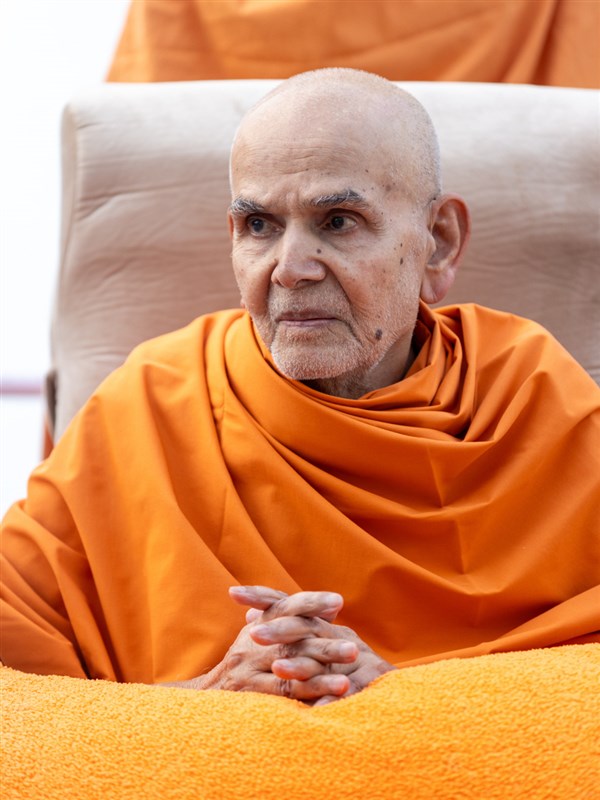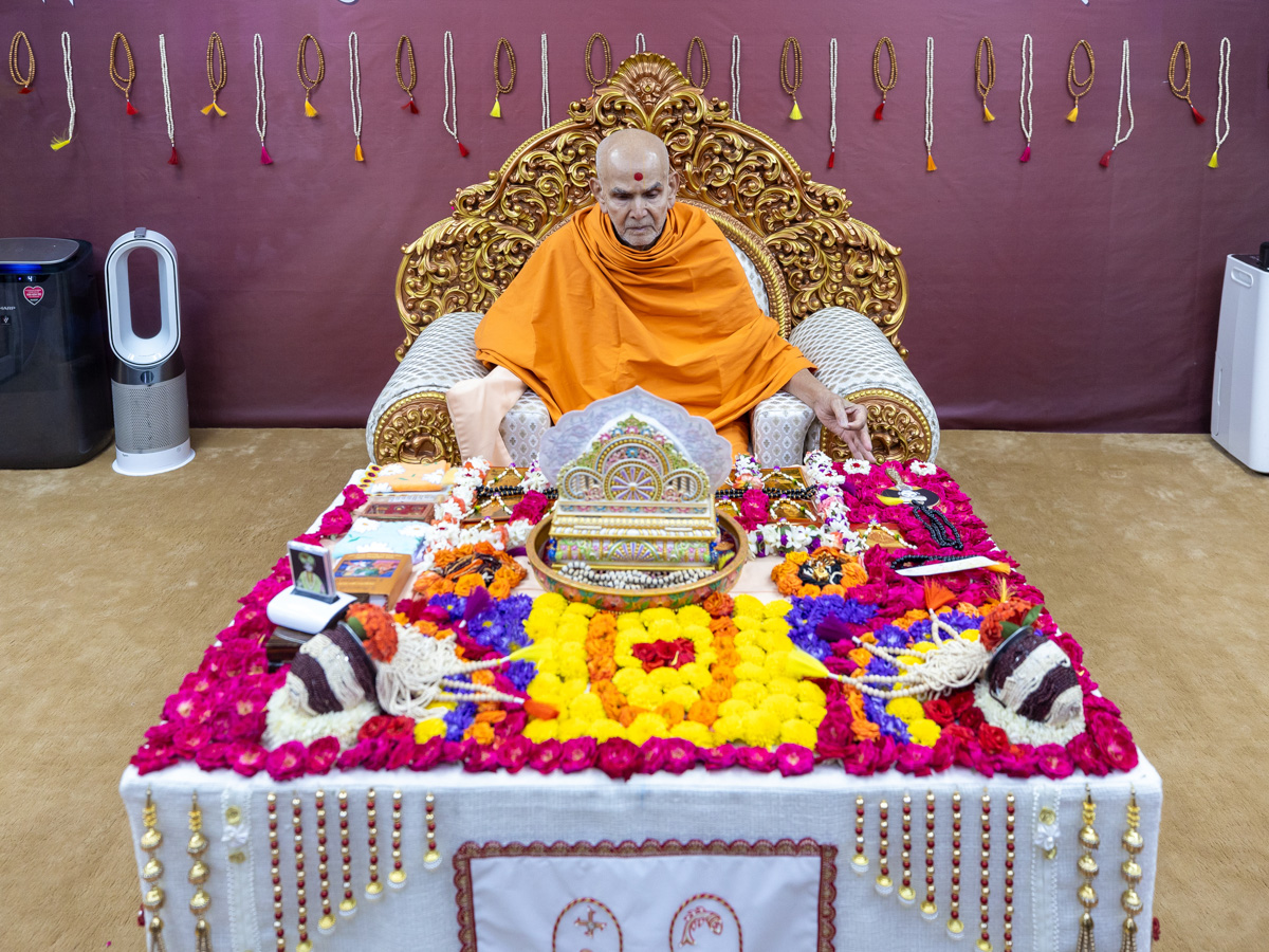 Swamishri engrossed in darshan of Shri Sukhshaiya