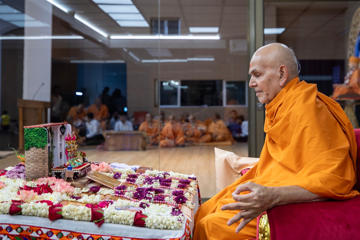 Swamishri engrossed in darshan of Brahmaswarup Pramukh Swami Maharaj