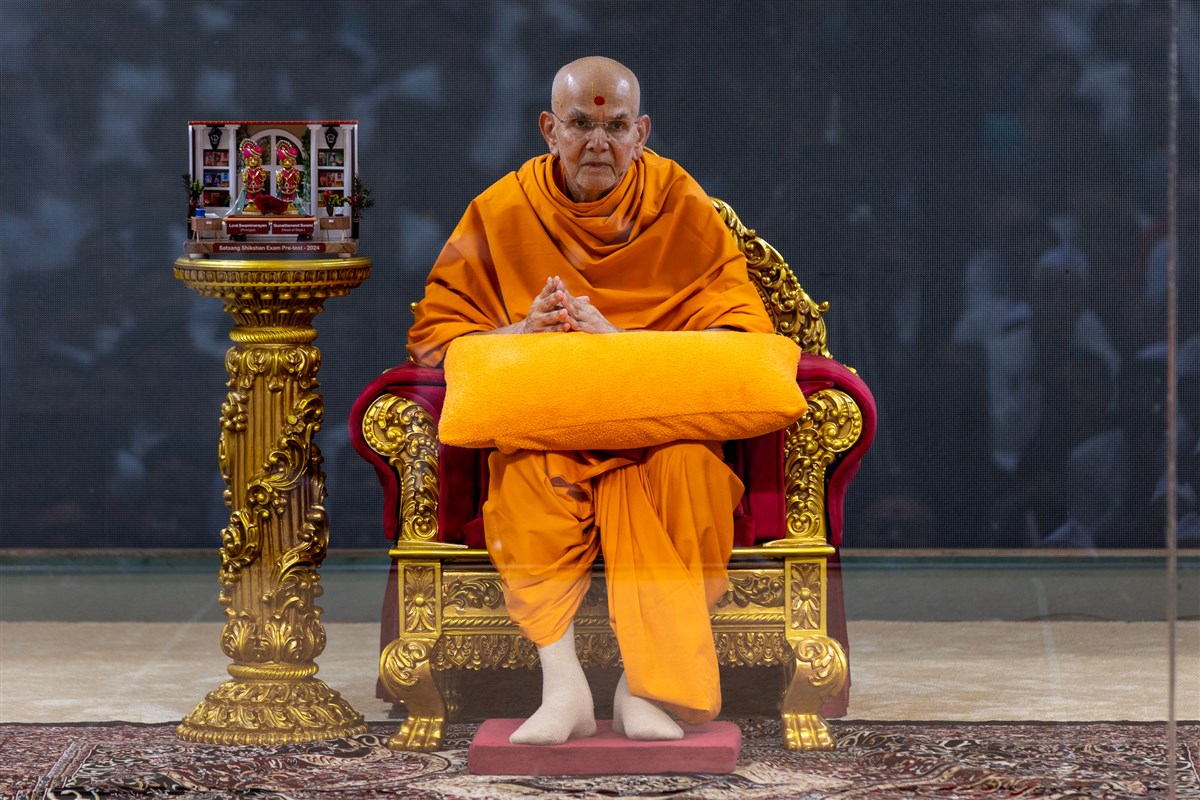 Swamishri sanctifies the Satsang Sikshan Pariksha pre-test papers