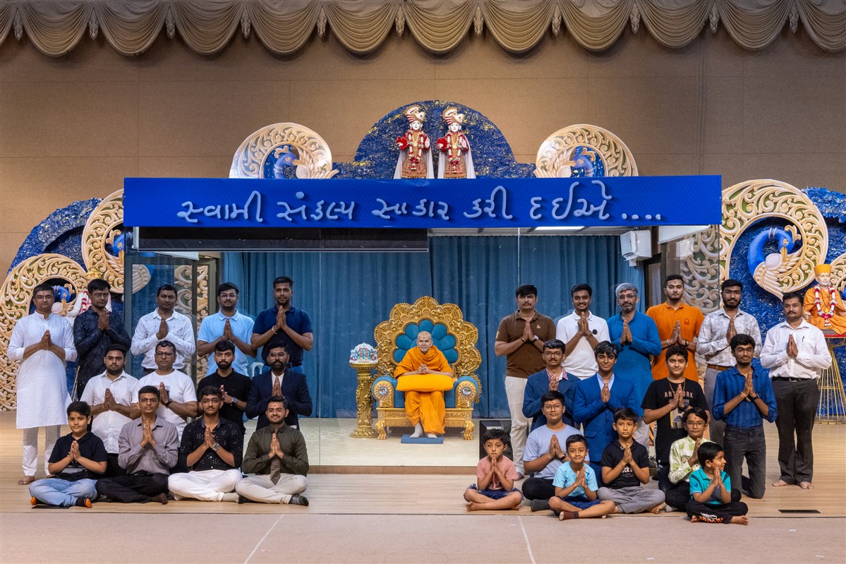 Bookstall volunteers doing darshan of Param Pujya Mahant Swami Maharaj