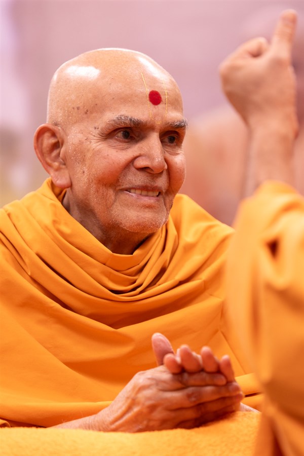Param Pujya Mahant Swami Maharaj arrives for his daily puja