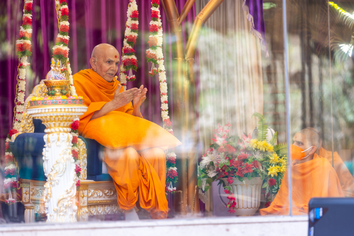 Swamishri returns to 'Sarvaswa' after the darshan of Thakorji