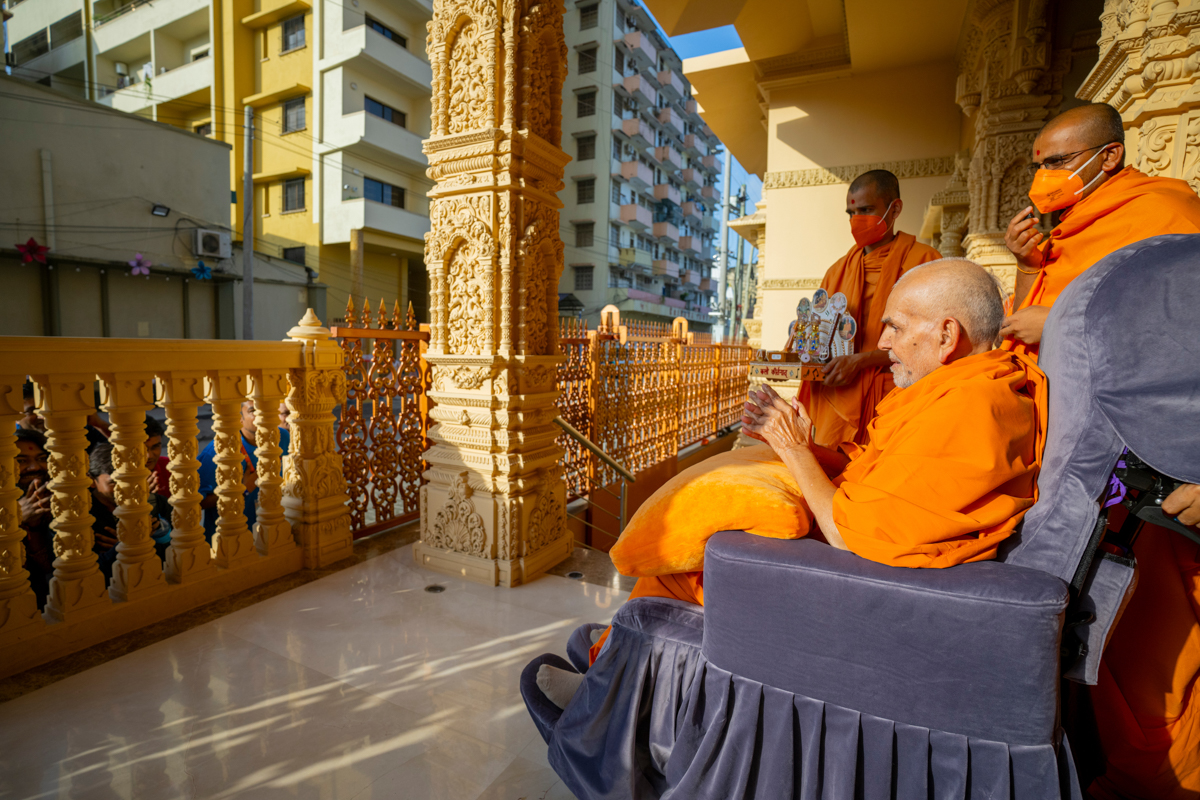 Swamishri visits the mandir complex
