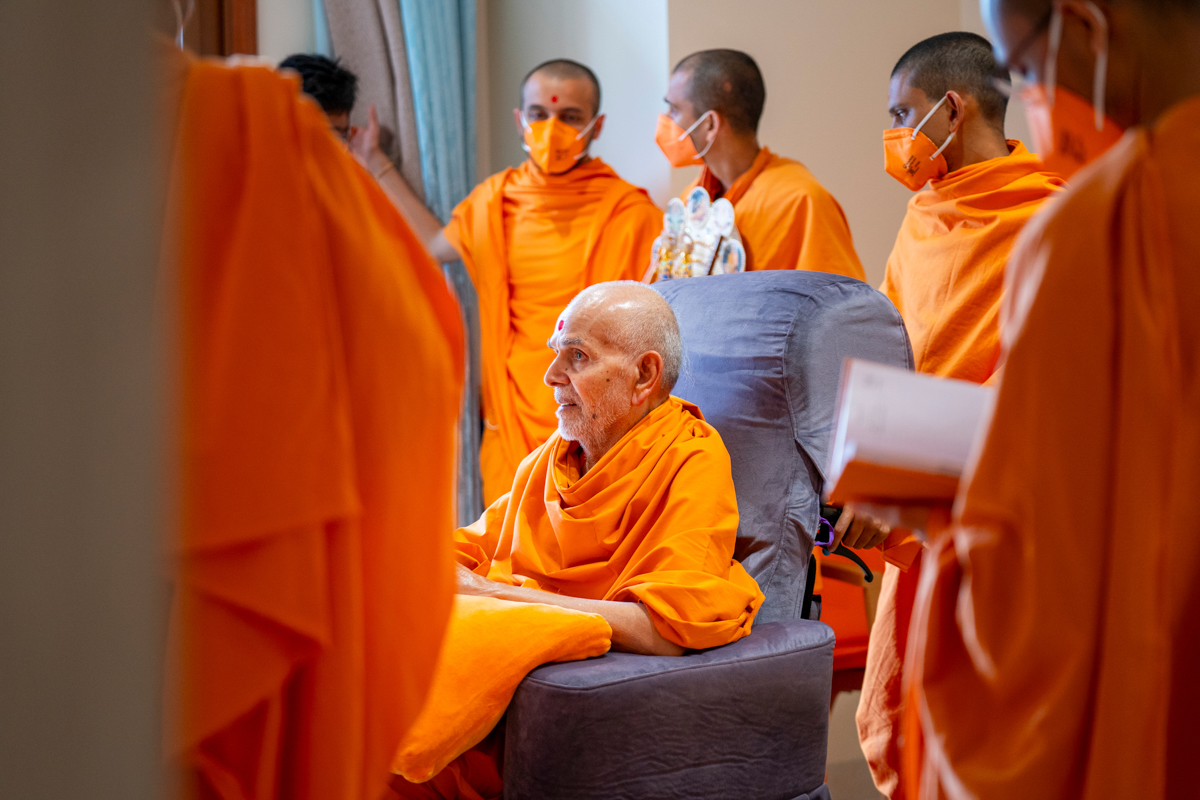 Swamis doing Swamishri's puja darshan