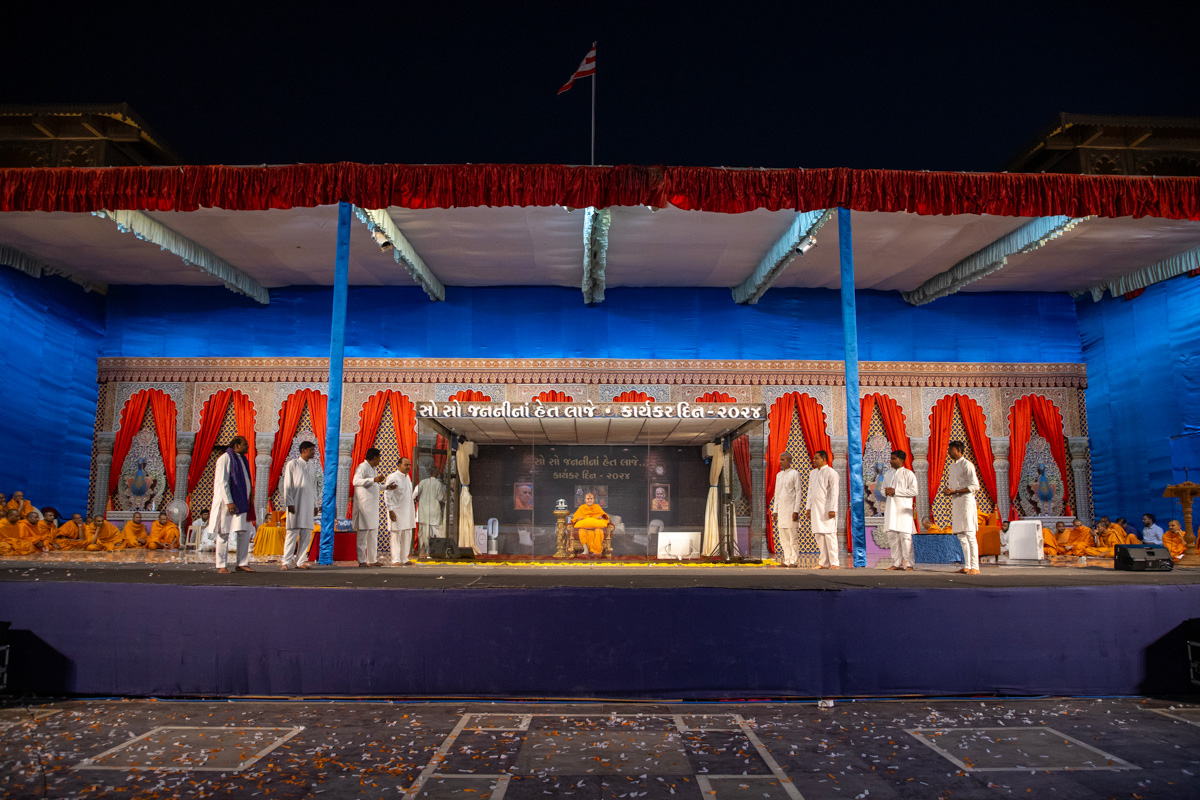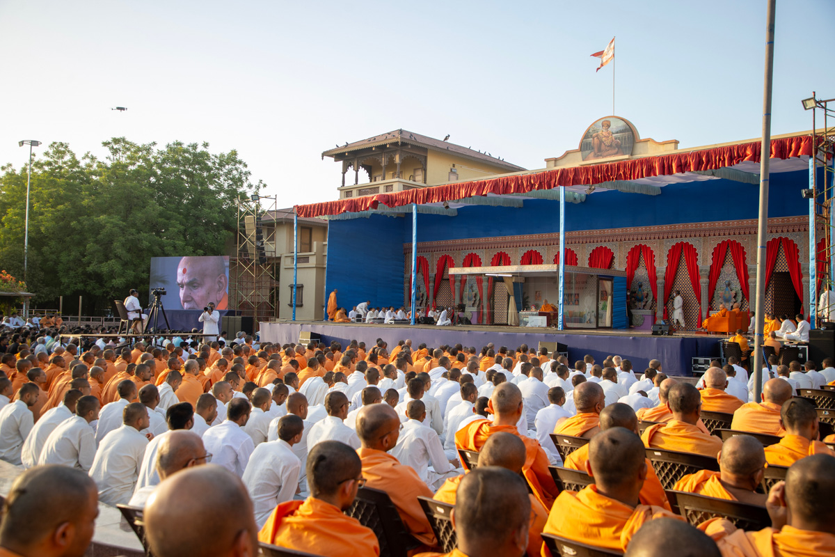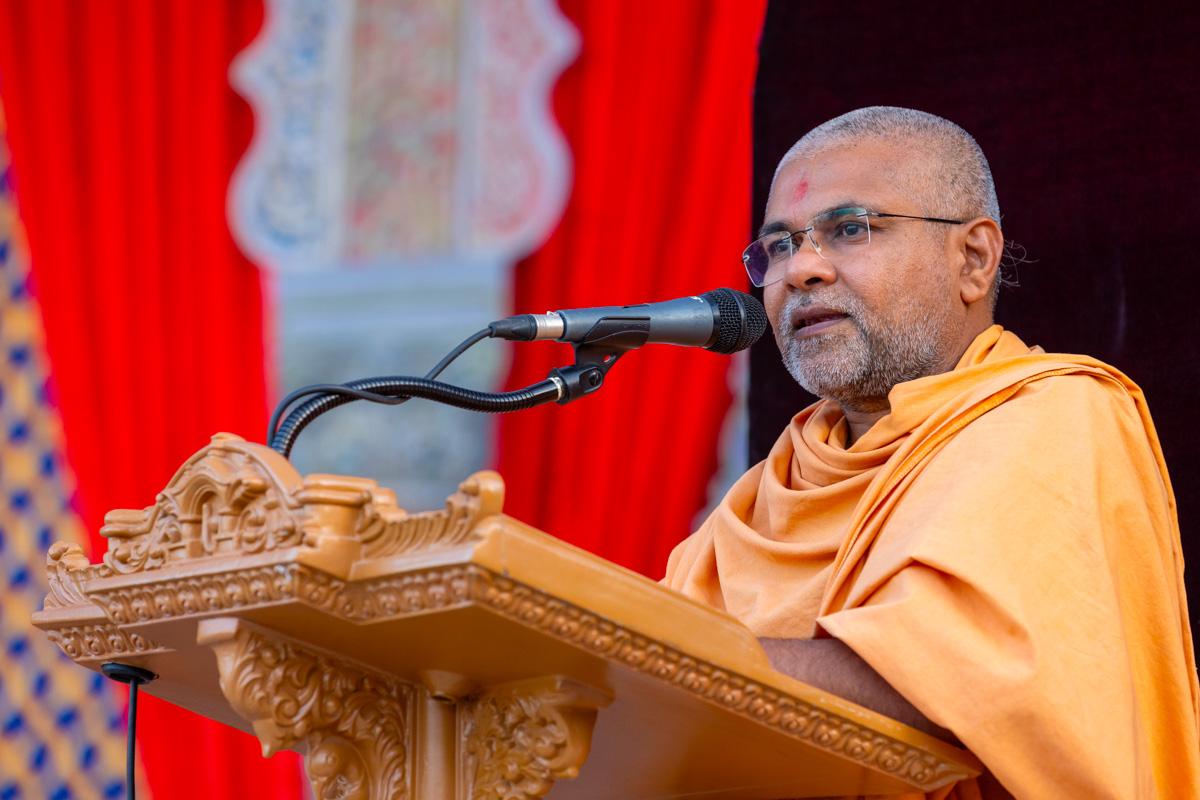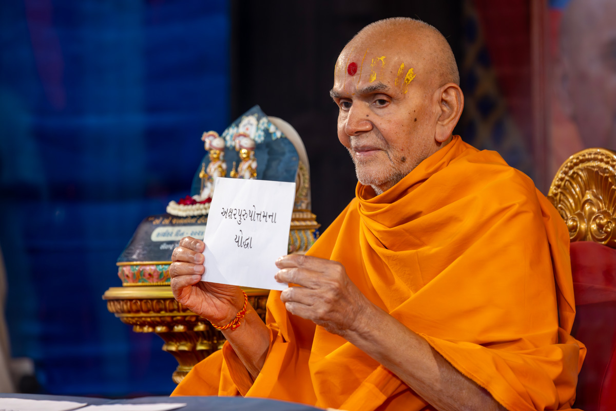 Param Pujya Mahant Swami Maharaj greets all with folded hands