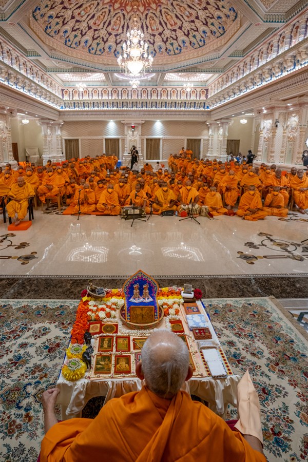 Swamis doing Swamishri's puja darshan
