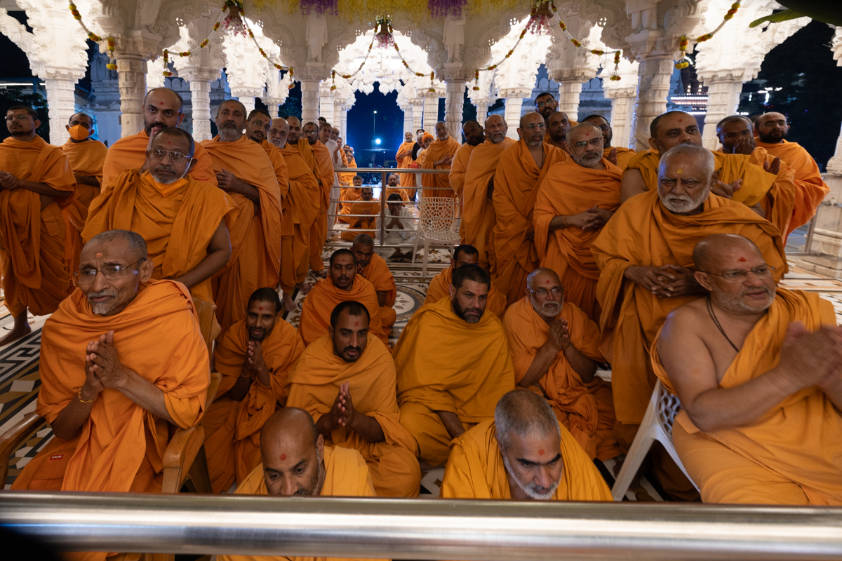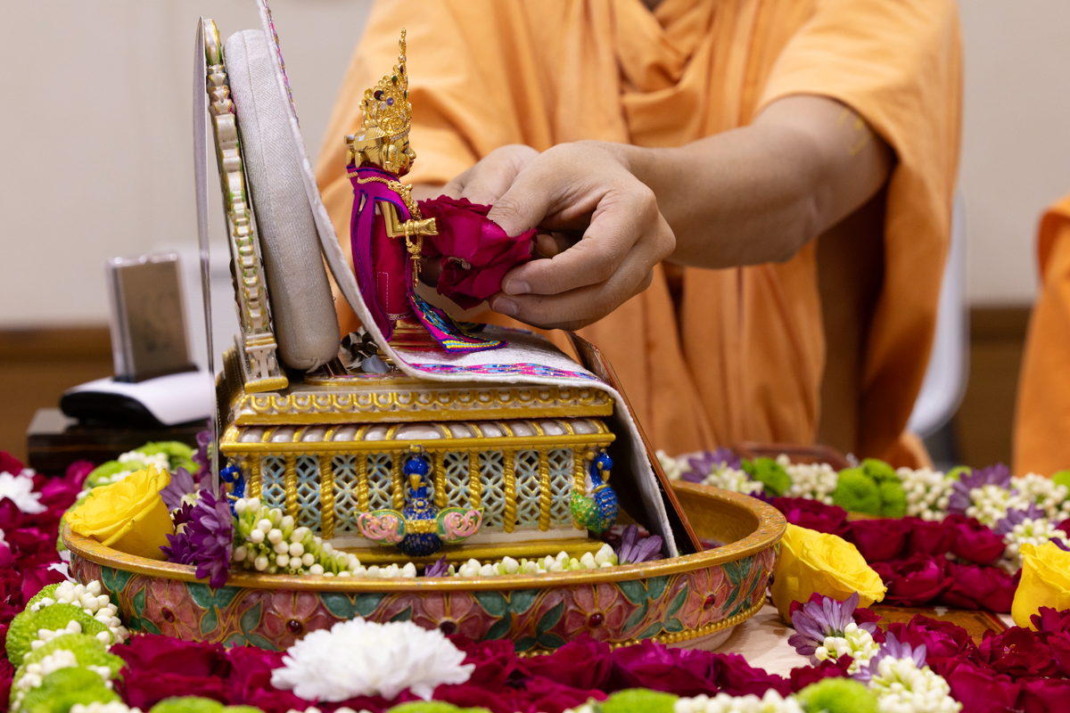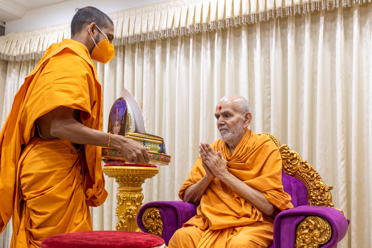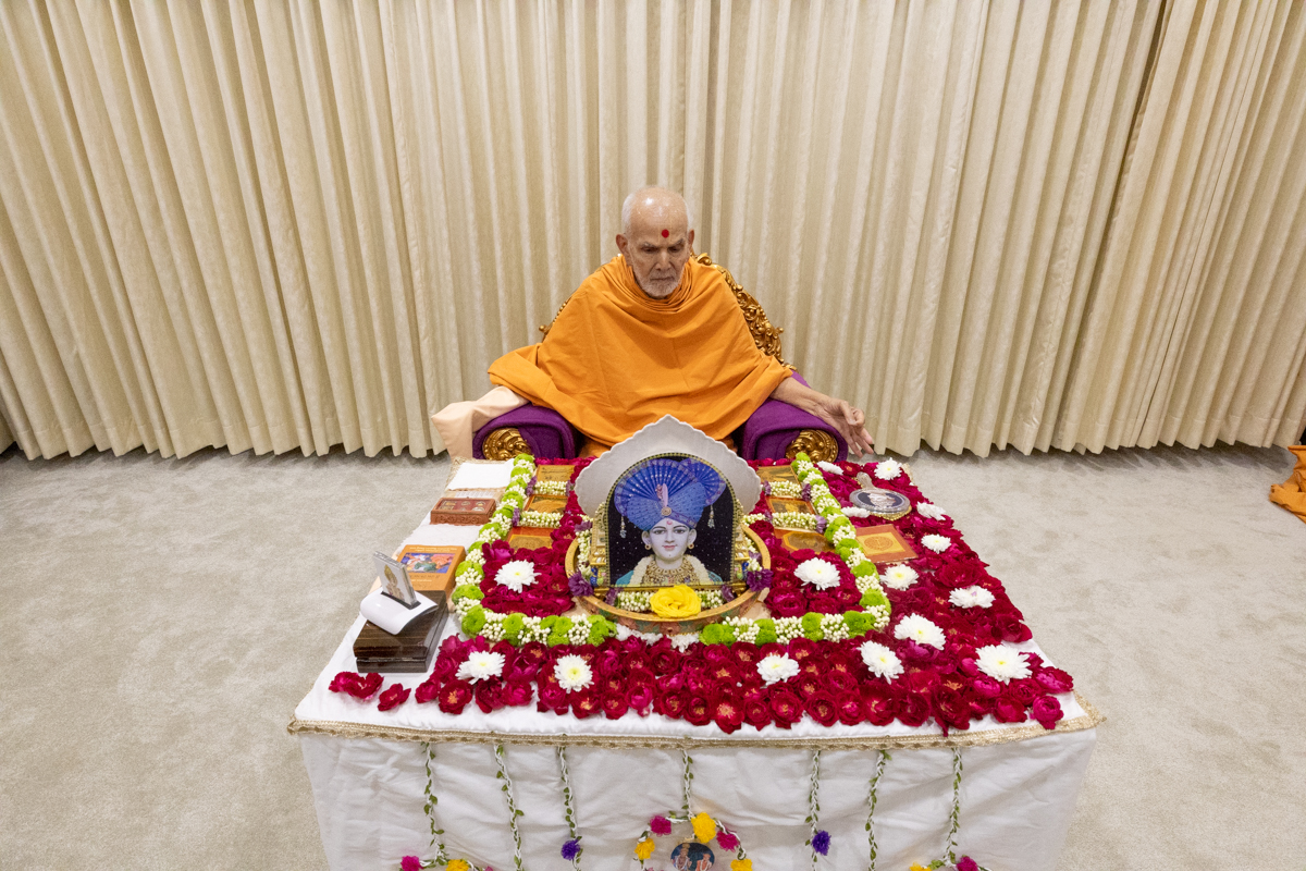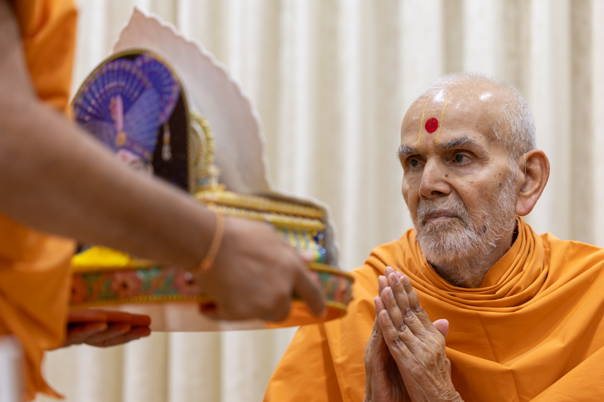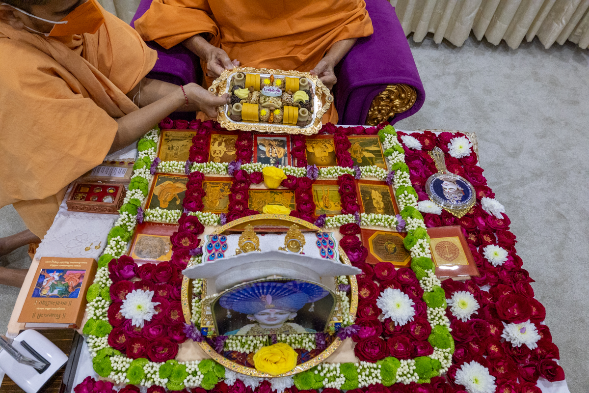 Swamishri offers thal to Brahmaswarup Pramukh Swami Maharaj
