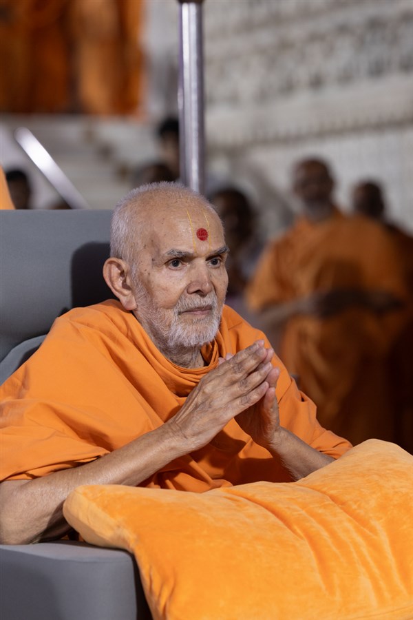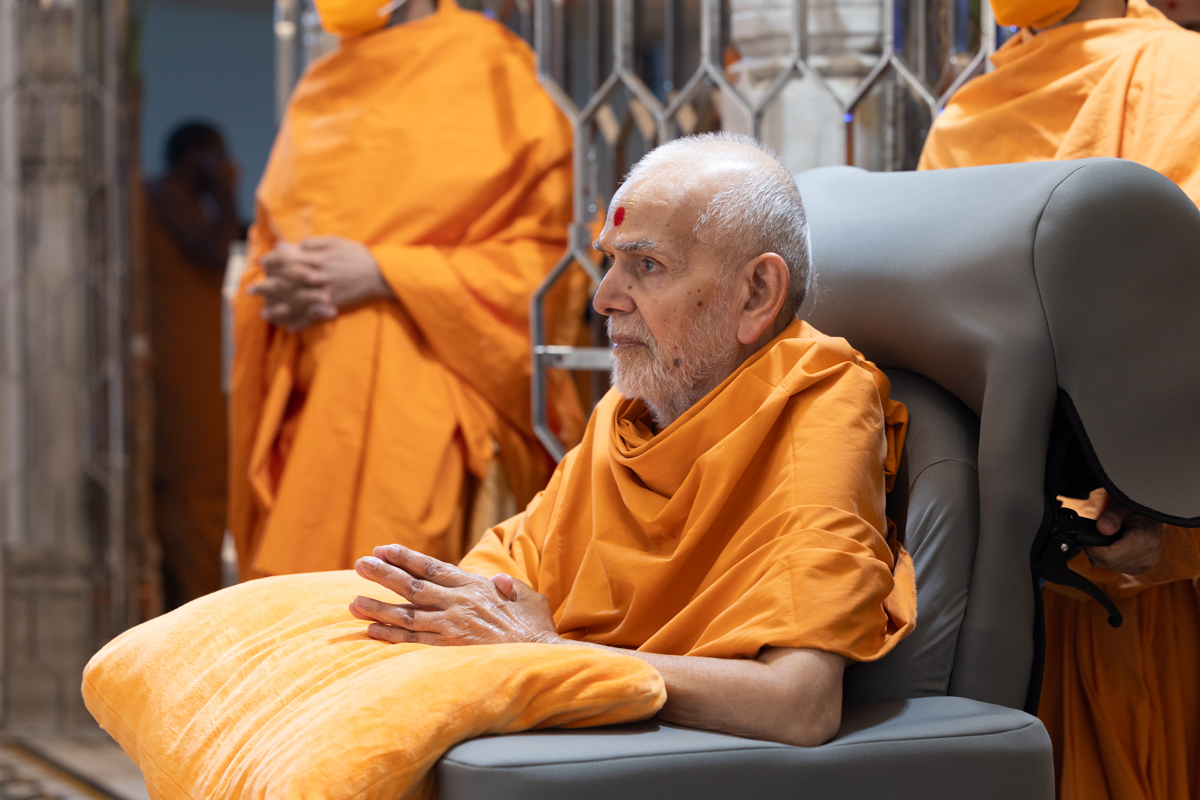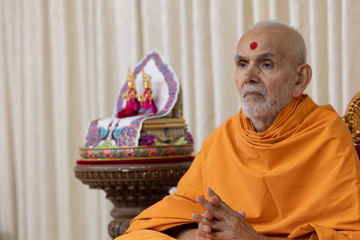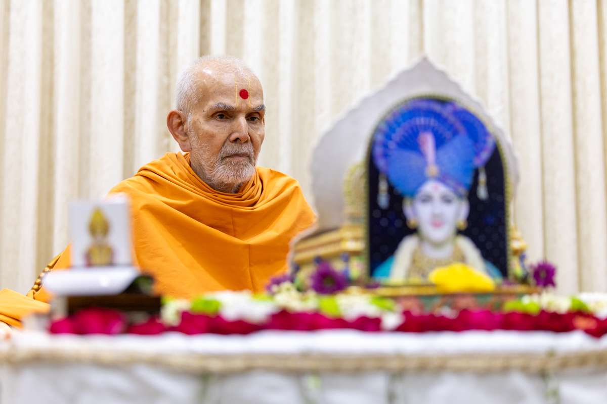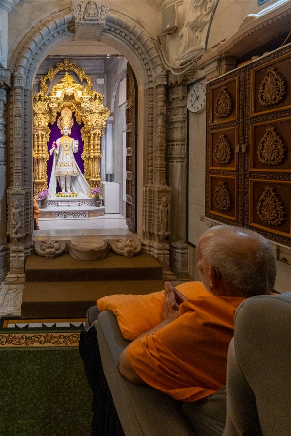 Swamishri engrossed in darshan of Shri Ghanshyam Maharaj