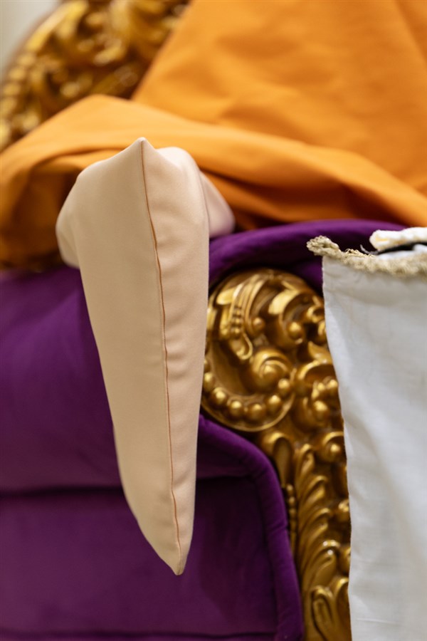Swamishri reverently touches the holy charanarvind of Shri Akshar-Purushottam Maharaj