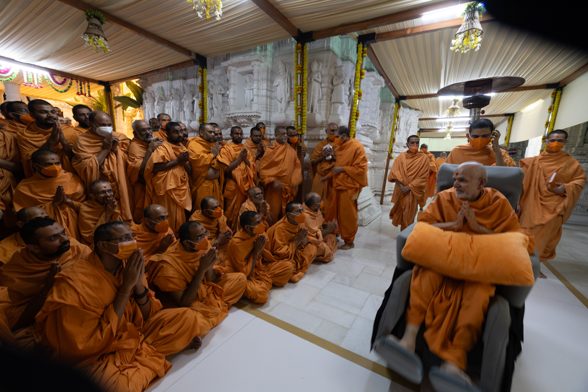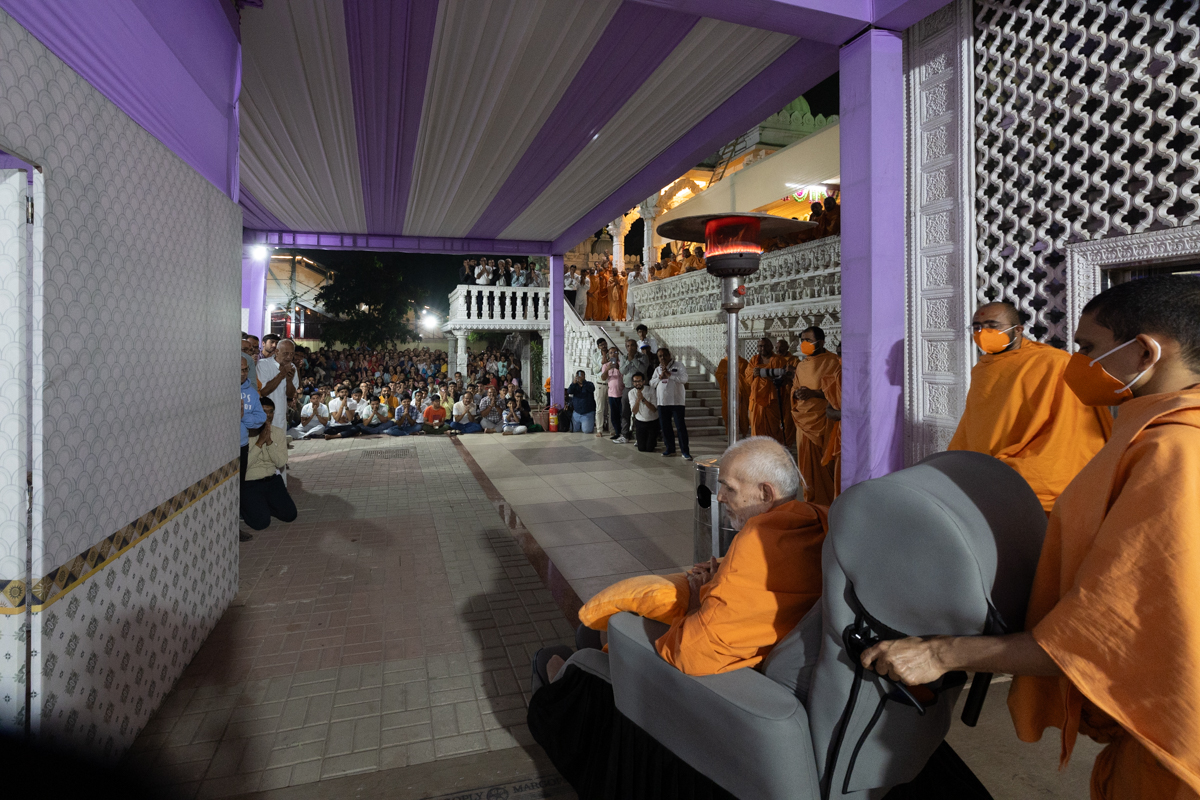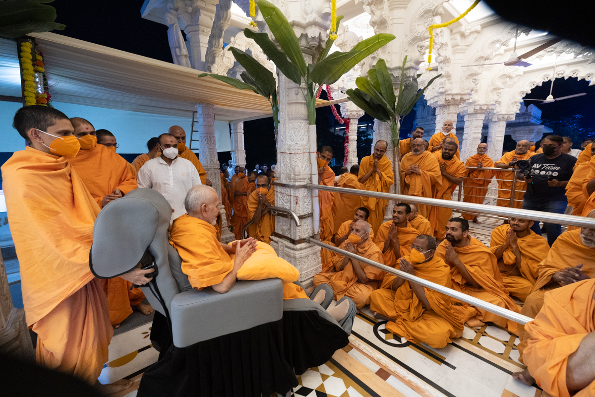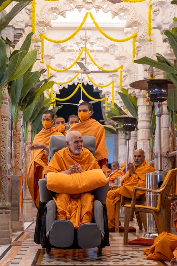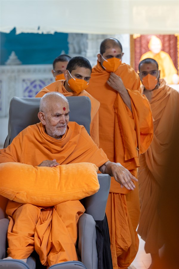 Swamishri engrossed in darshan of Brahmaswarup Bhagatji Maharaj