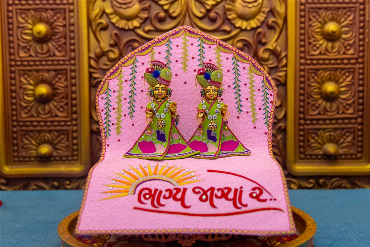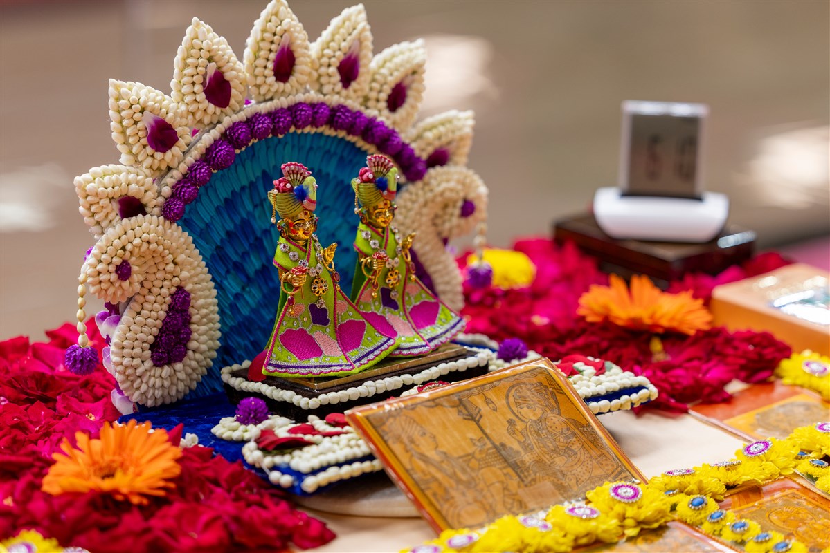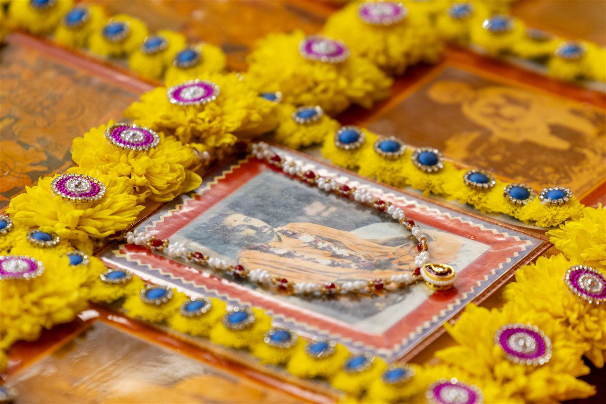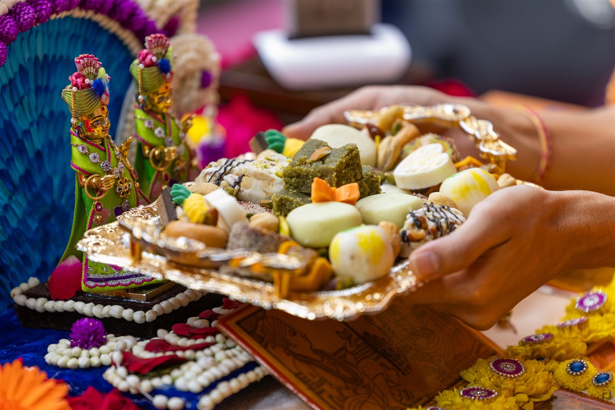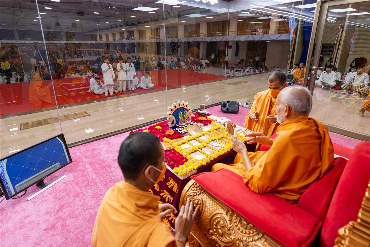 Swamishri offers thal to Shri Harikrishna Maharaj and Shri Gunatitanand Swami Maharaj