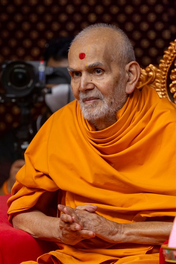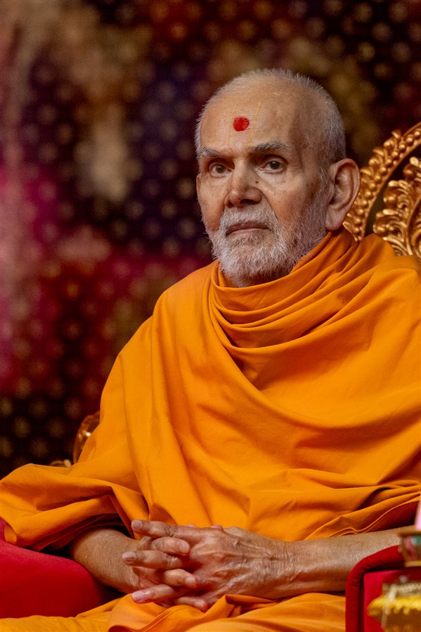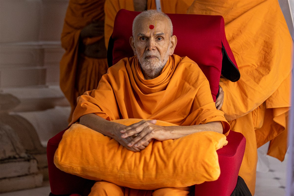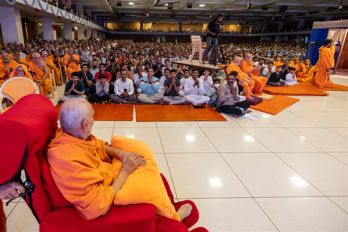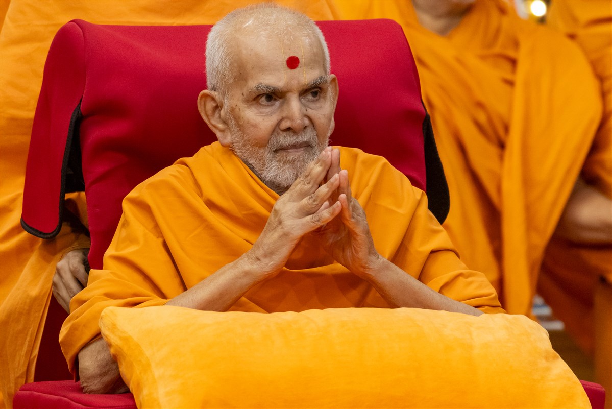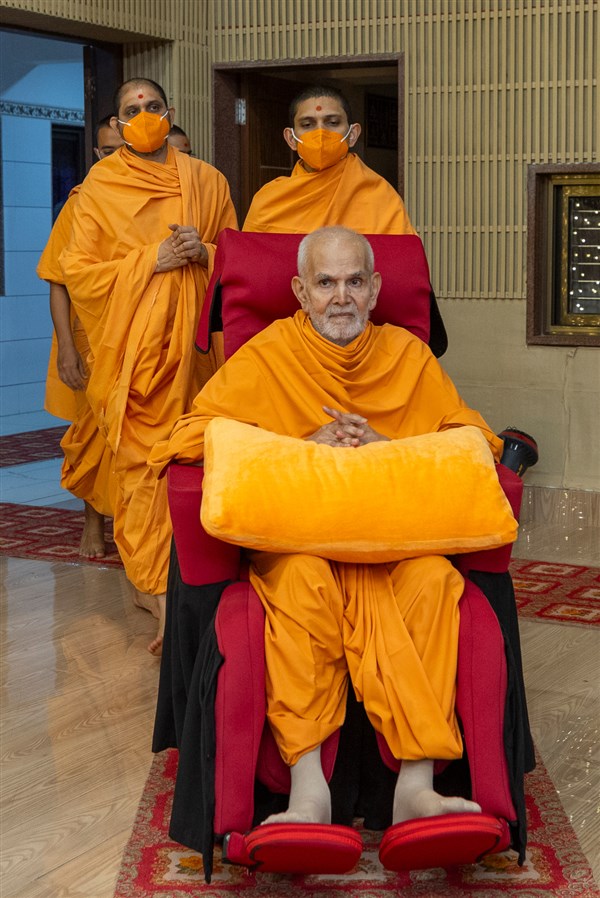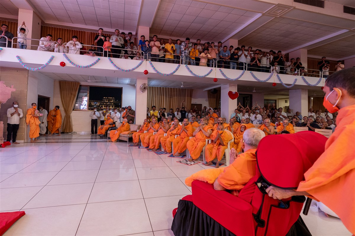Param Pujya Mahant Swami Maharaj arrives in the assembly hall