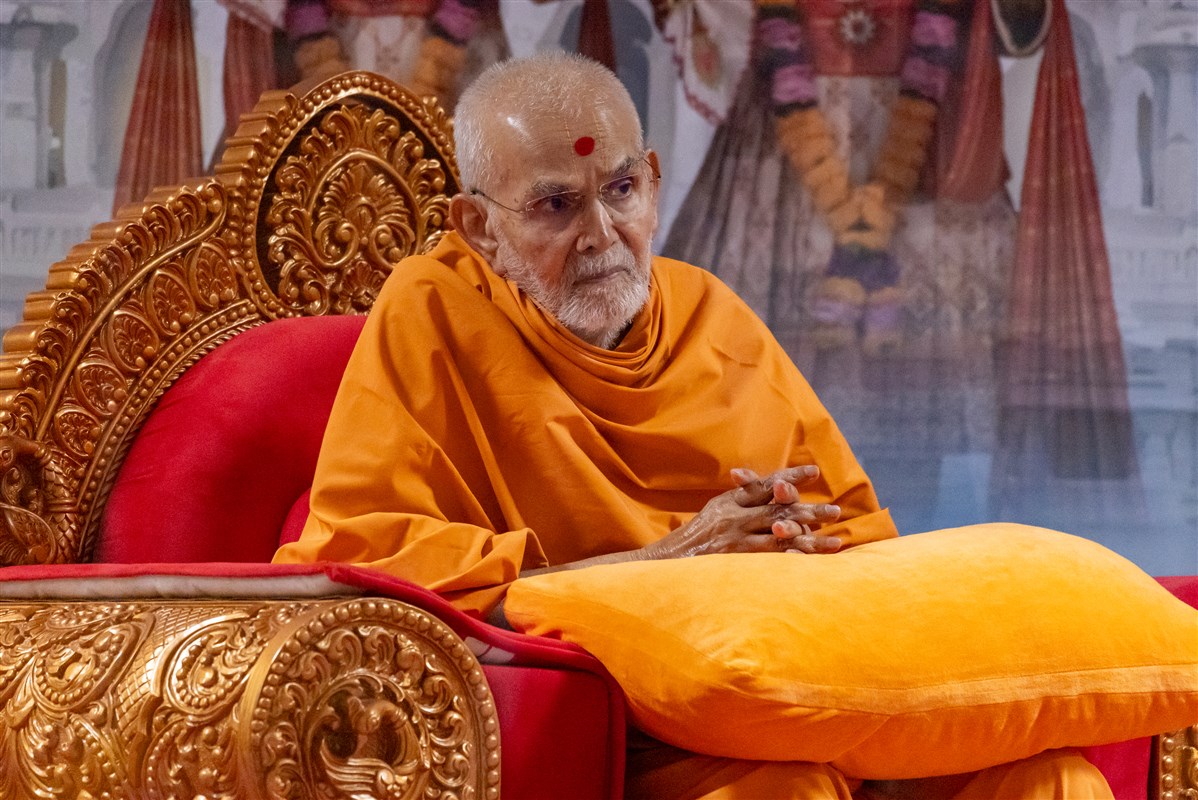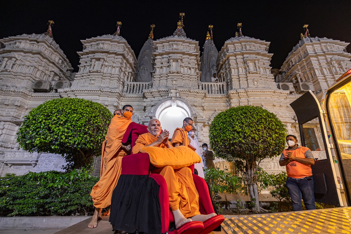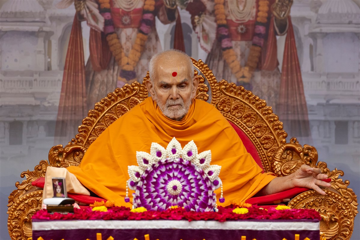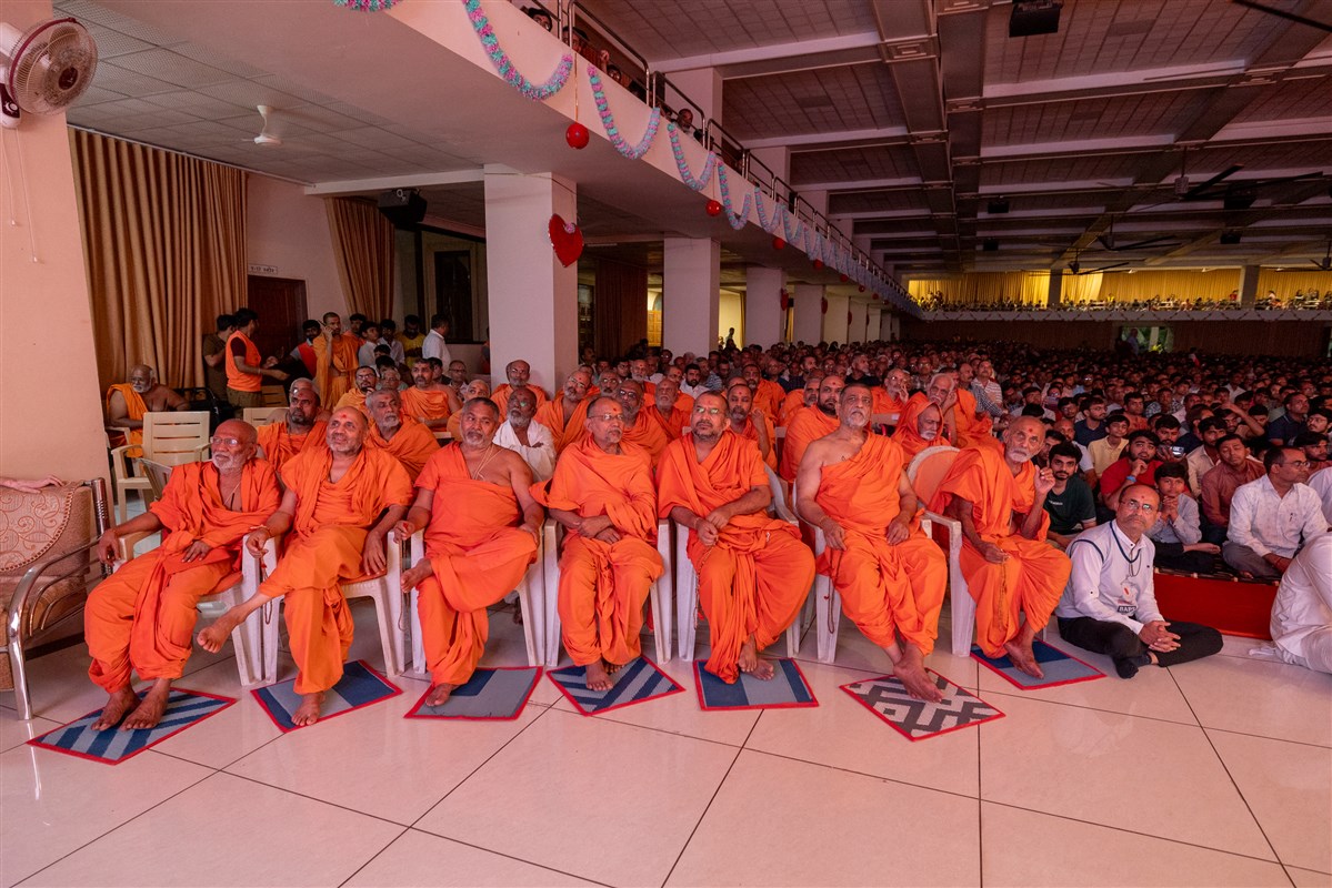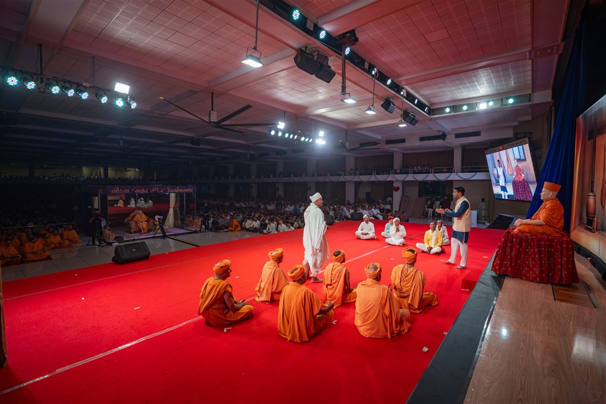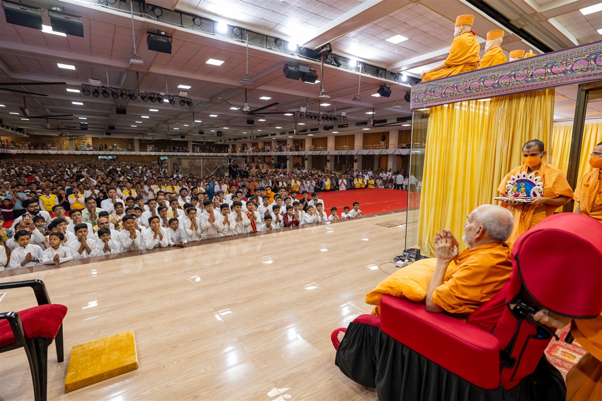 Param Pujya Mahant Swami Maharaj arrives in the assembly hall