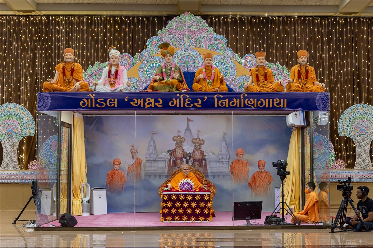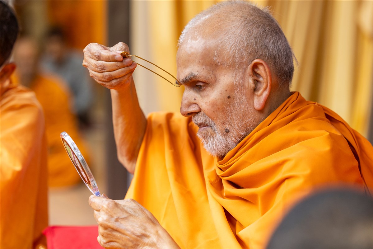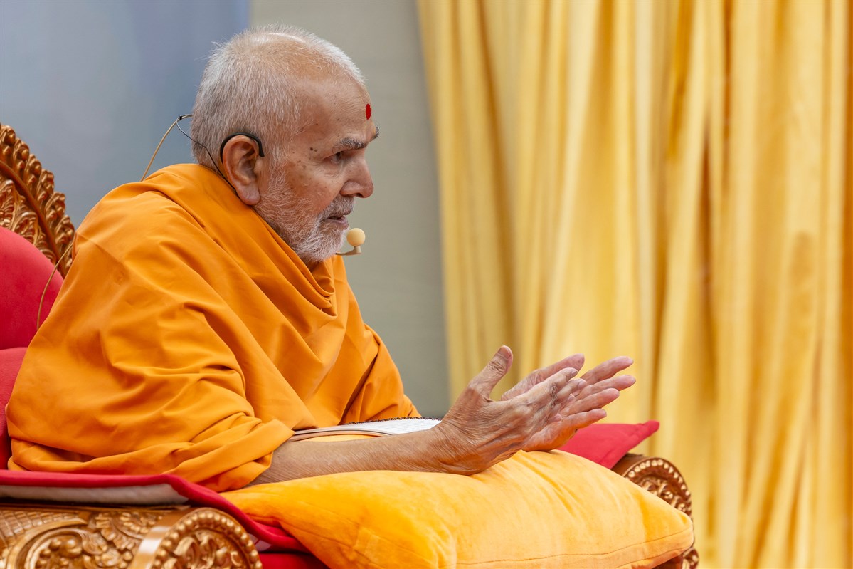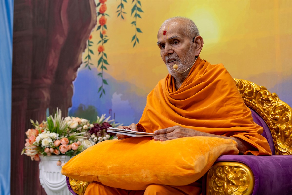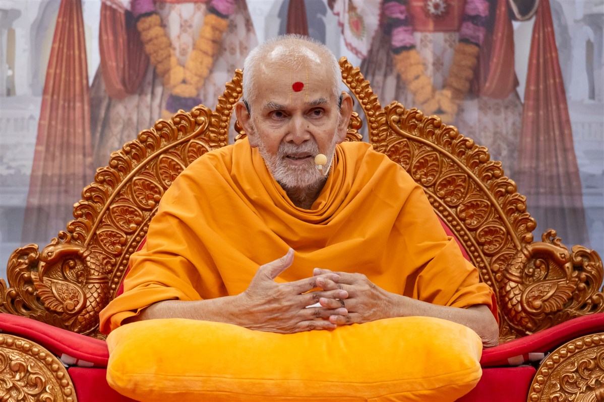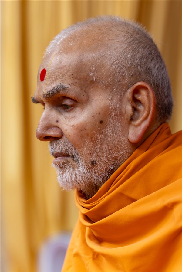 Param Pujya Mahant Swami Maharaj arrives in the assembly hall
