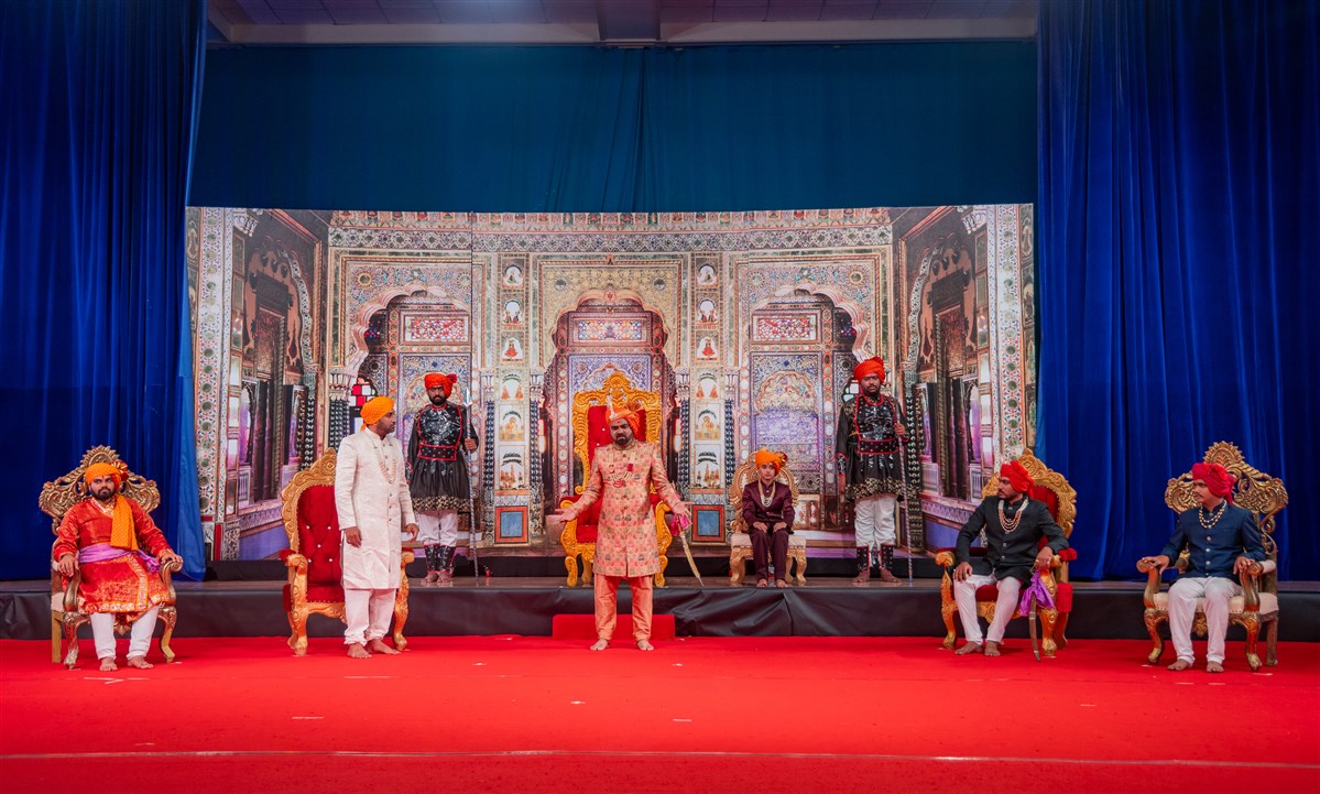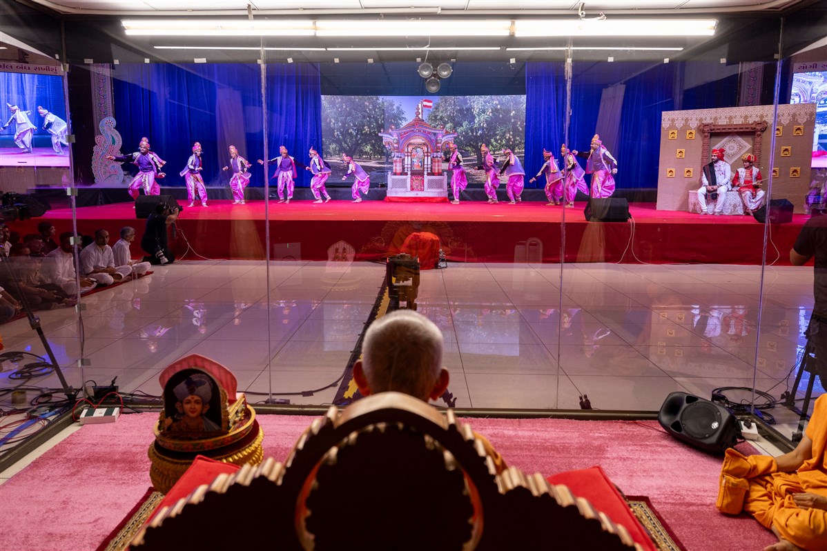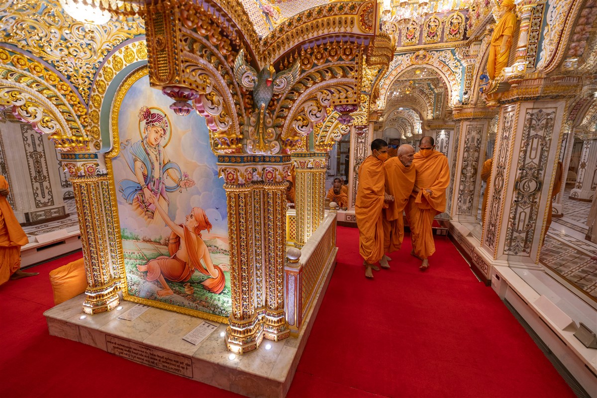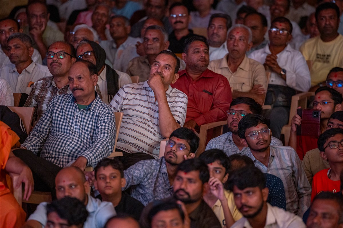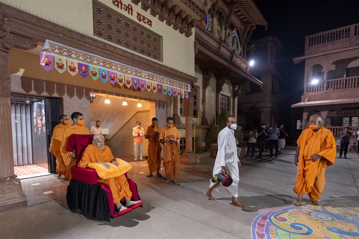 Param Pujya Mahant Swami Maharaj arrives in the assembly hall