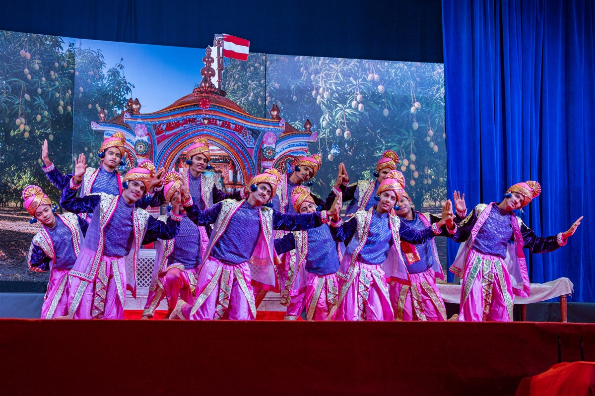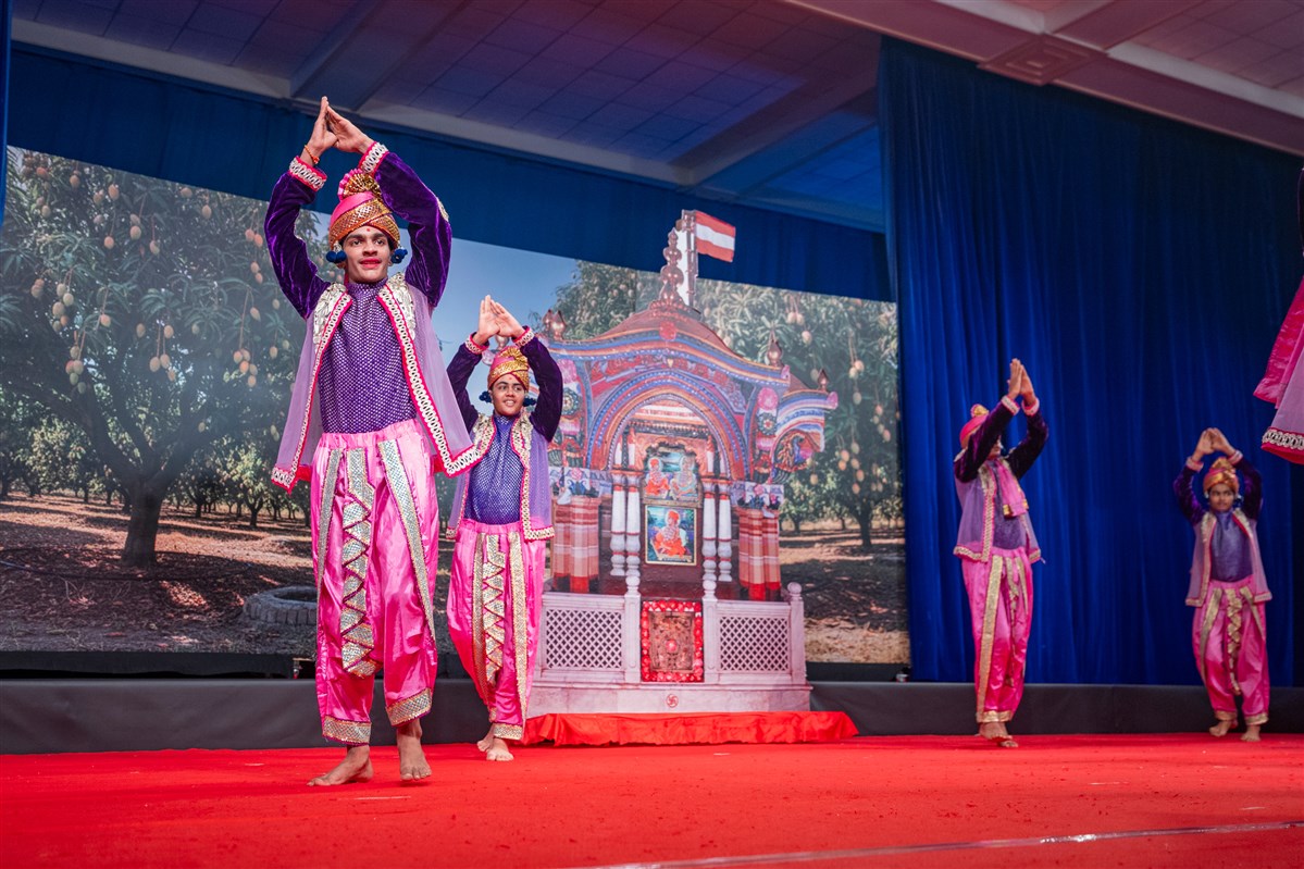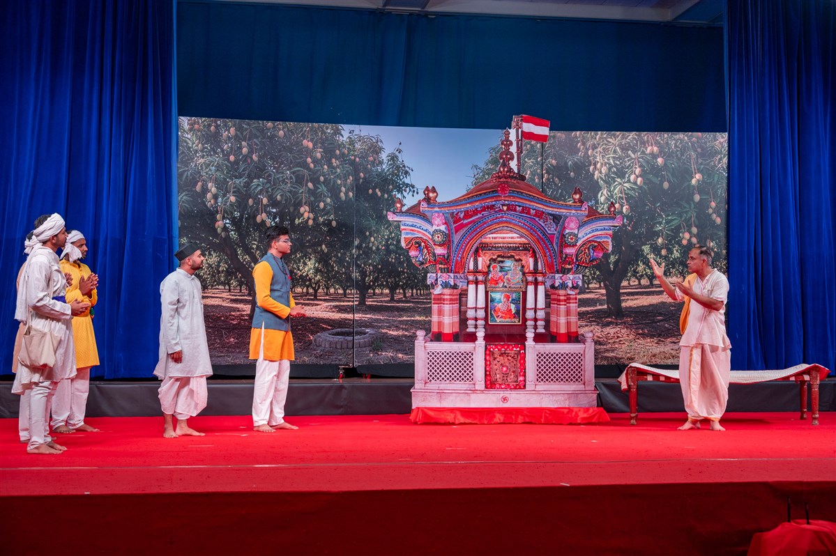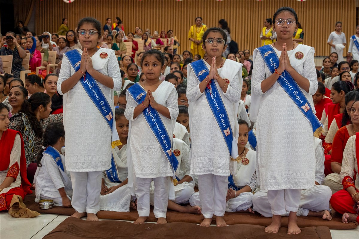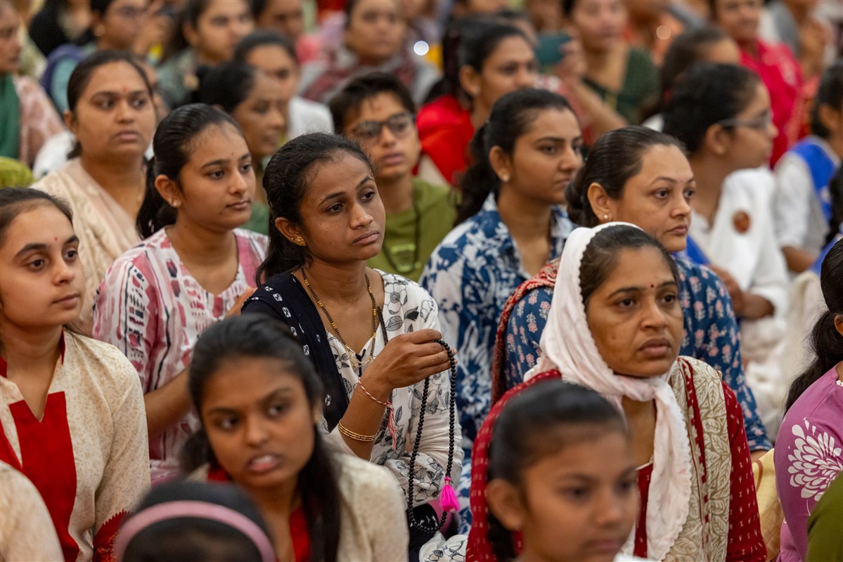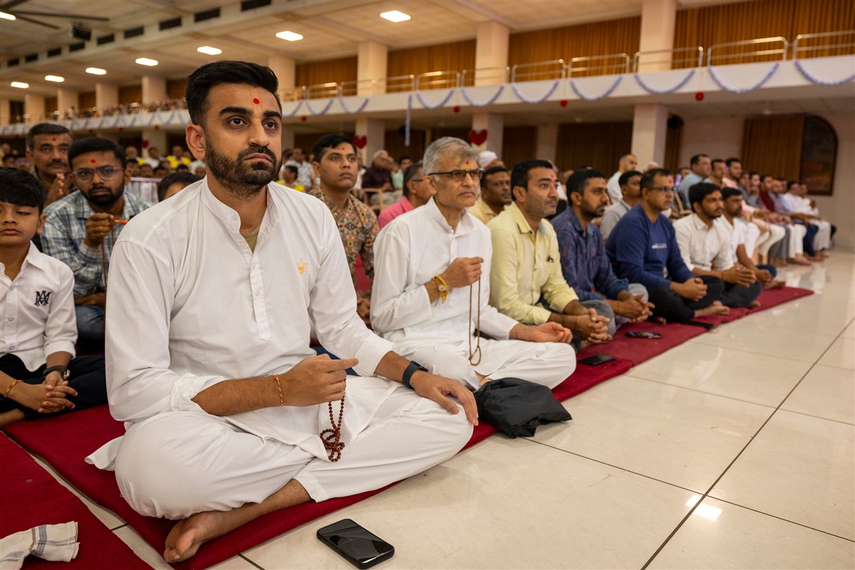 Param Pujya Mahant Swami Maharaj arrives in the assembly hall