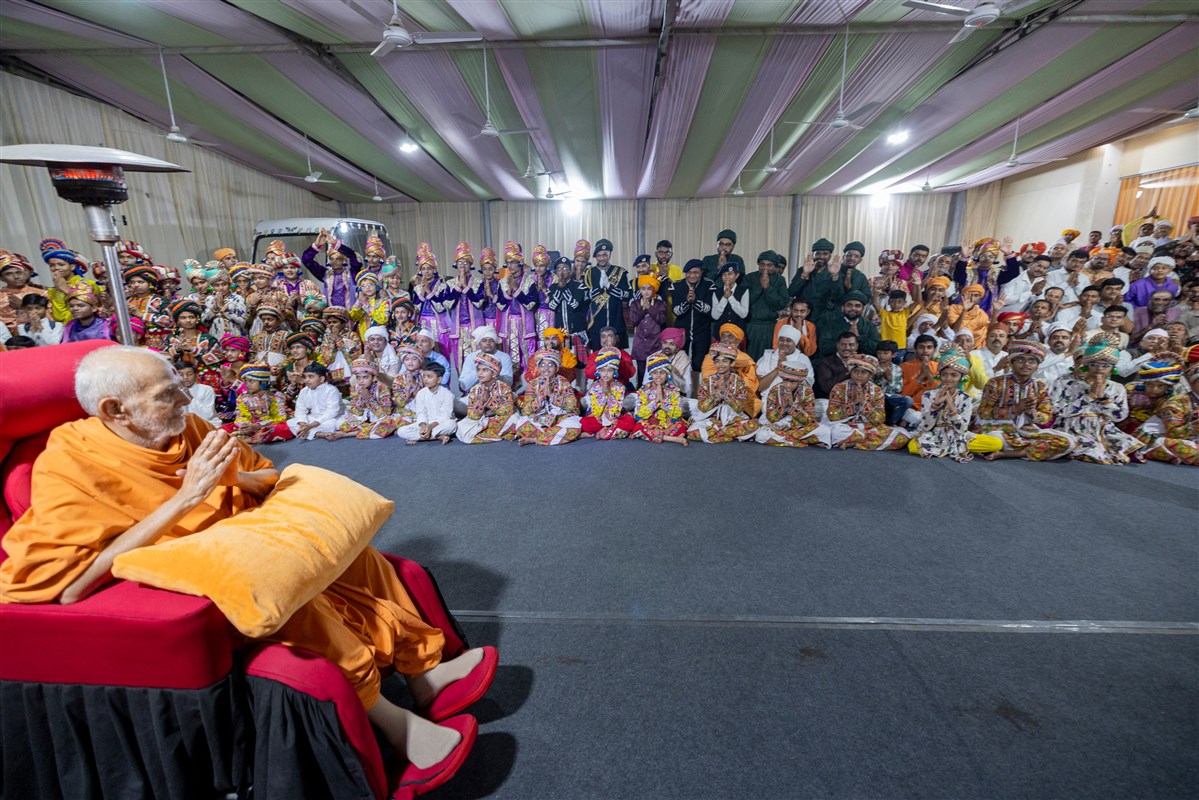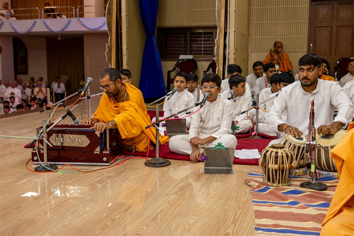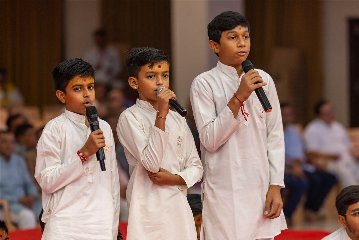 Balaks sing the Swaminarayan dhun in Swamishri's daily puja