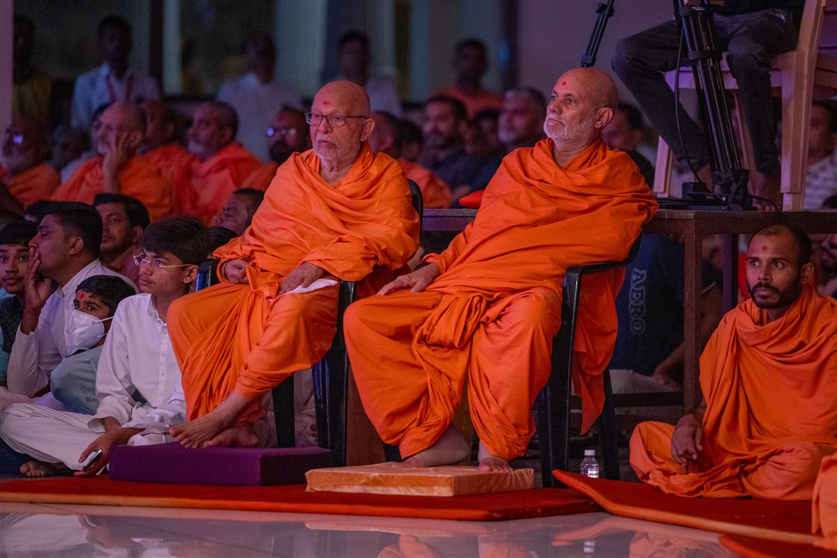 Pujya Ghanshyamcharan Swami and Pujya Viveksagar Swami during the assembly