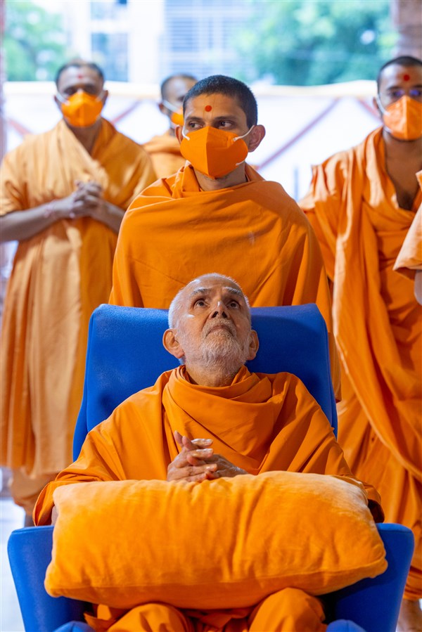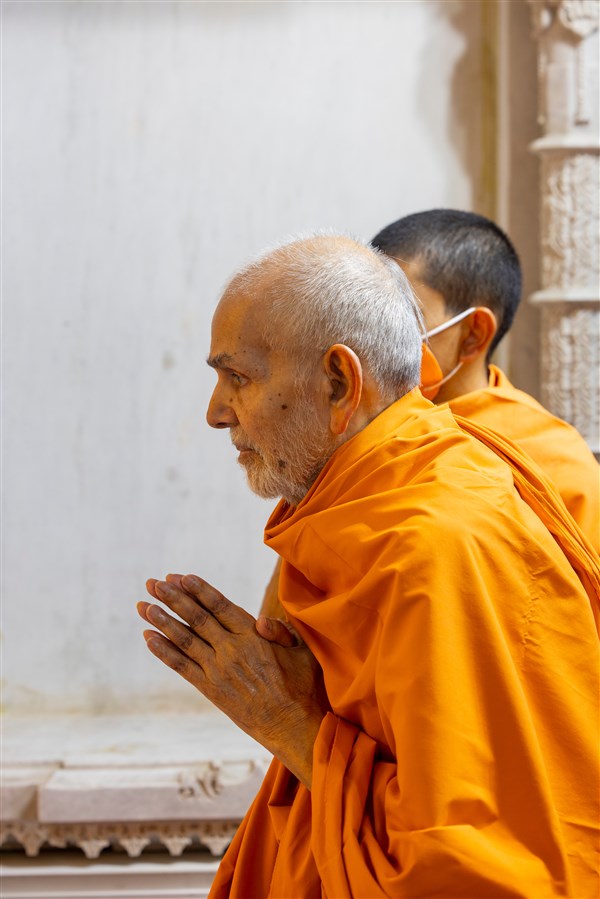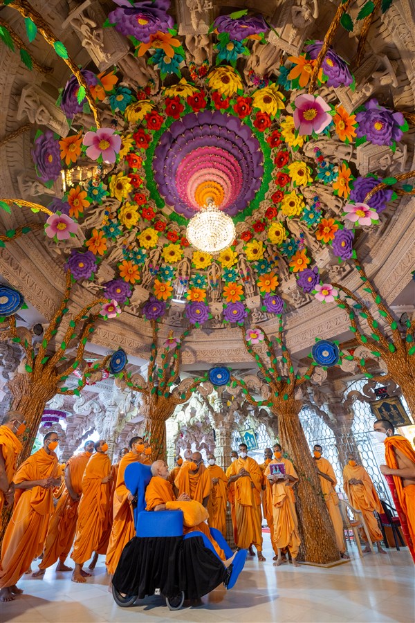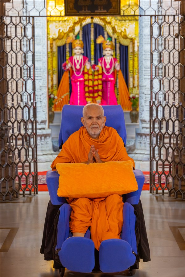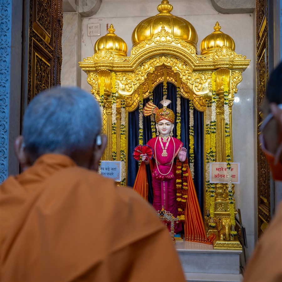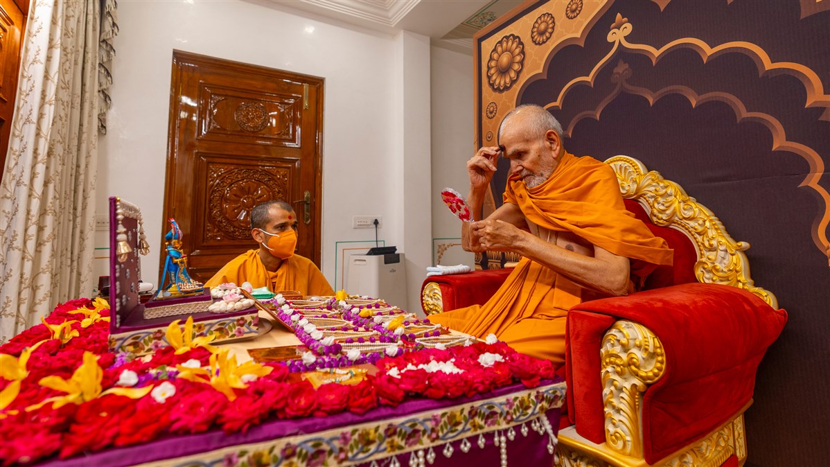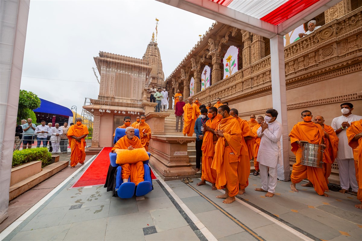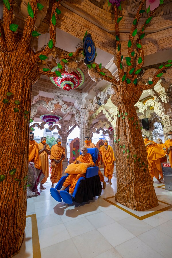 Param Pujya Mahant Swami Maharaj on his way for Thakorji's darshan