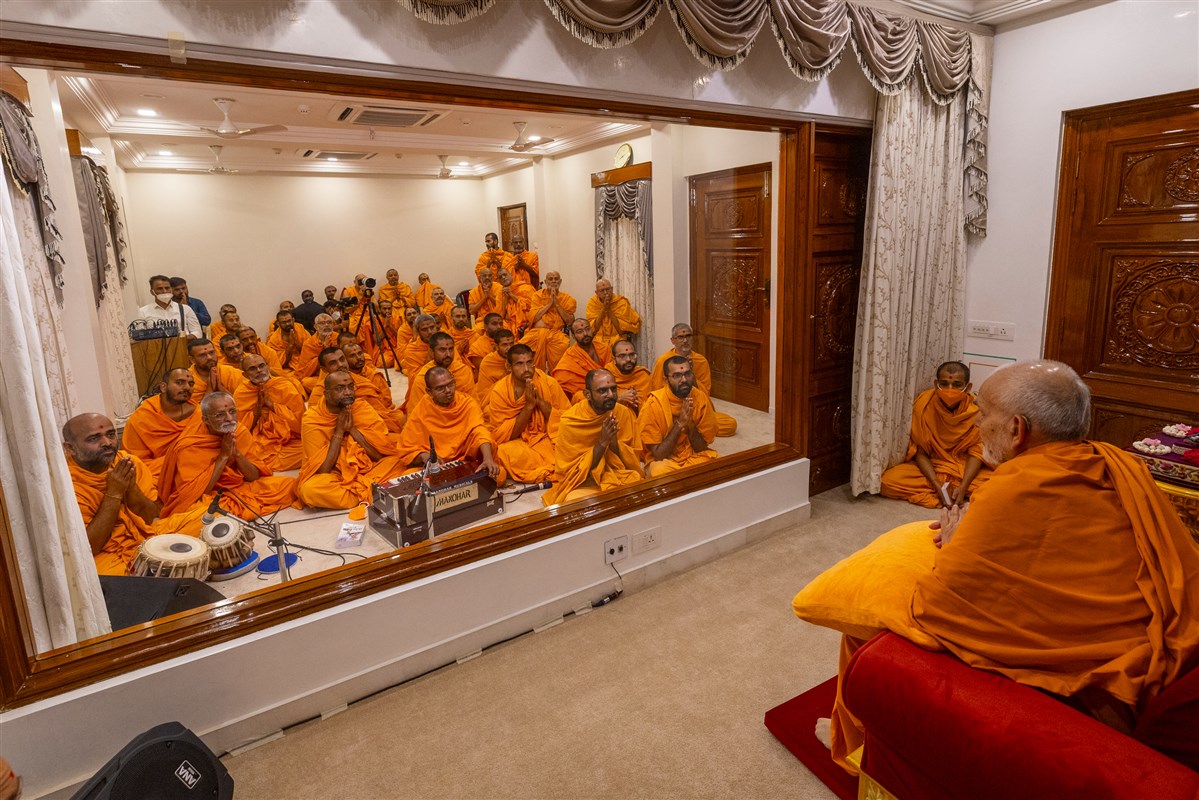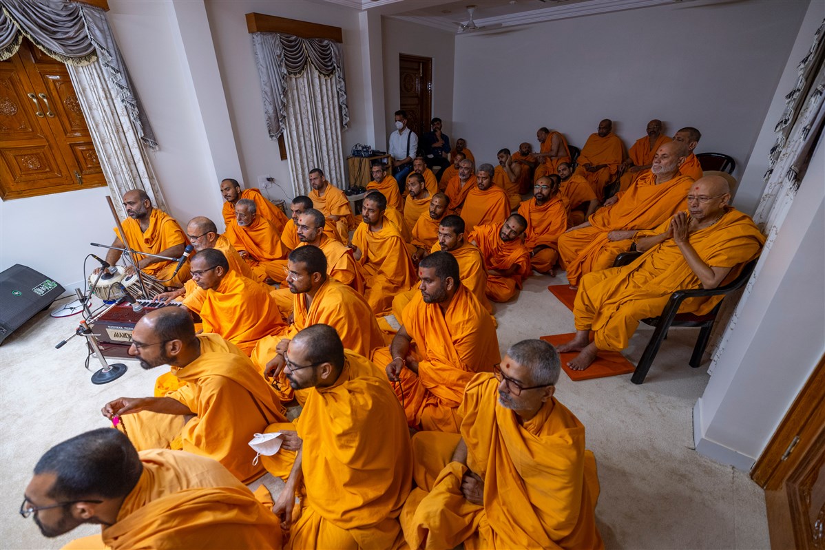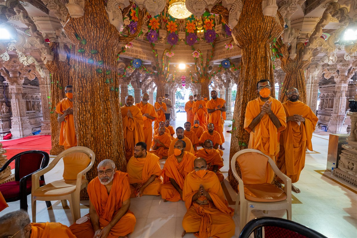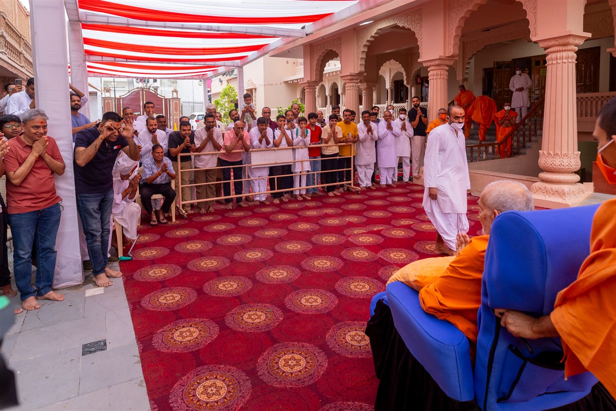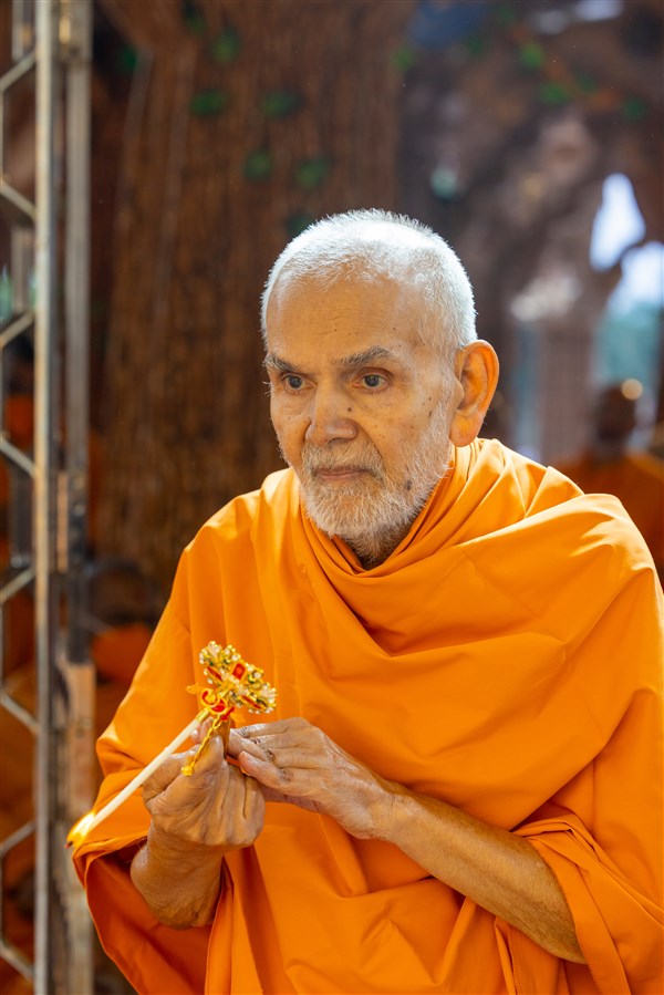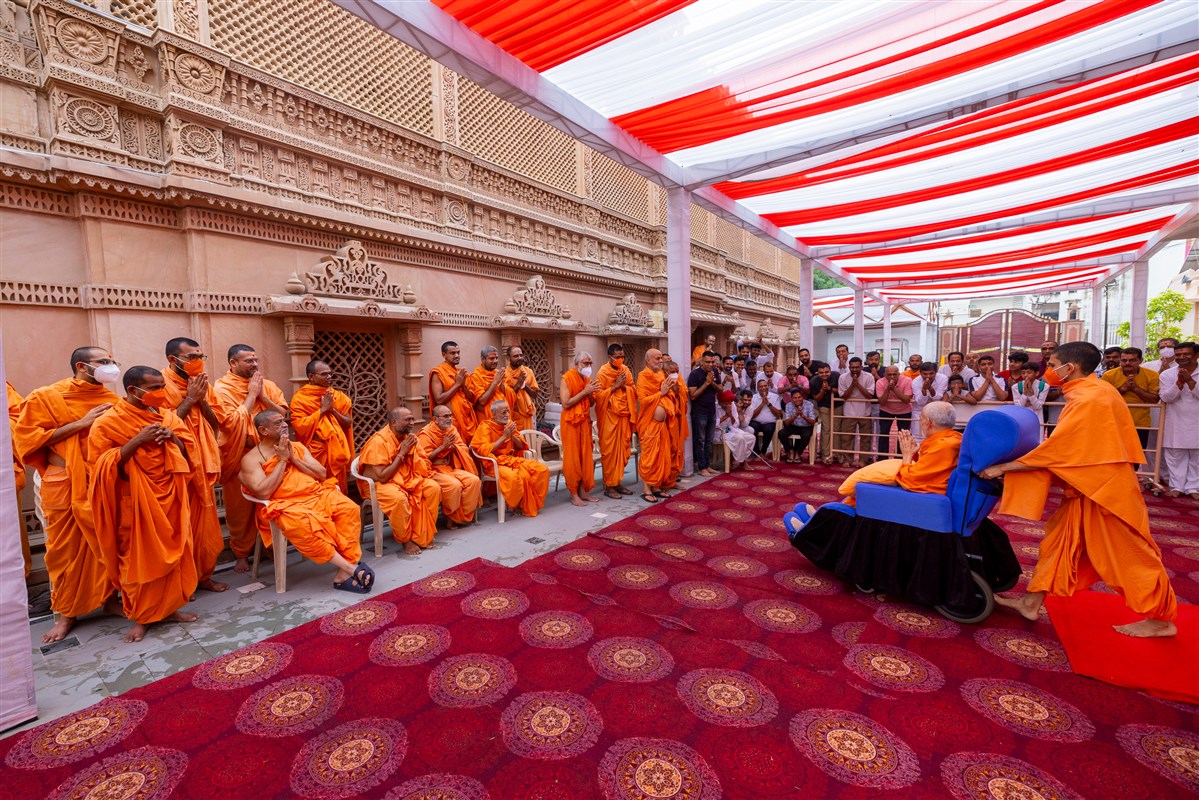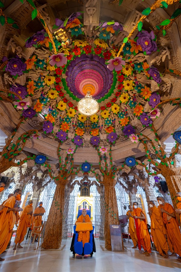 Param Pujya Mahant Swami Maharaj on his way for Thakorji's darshan