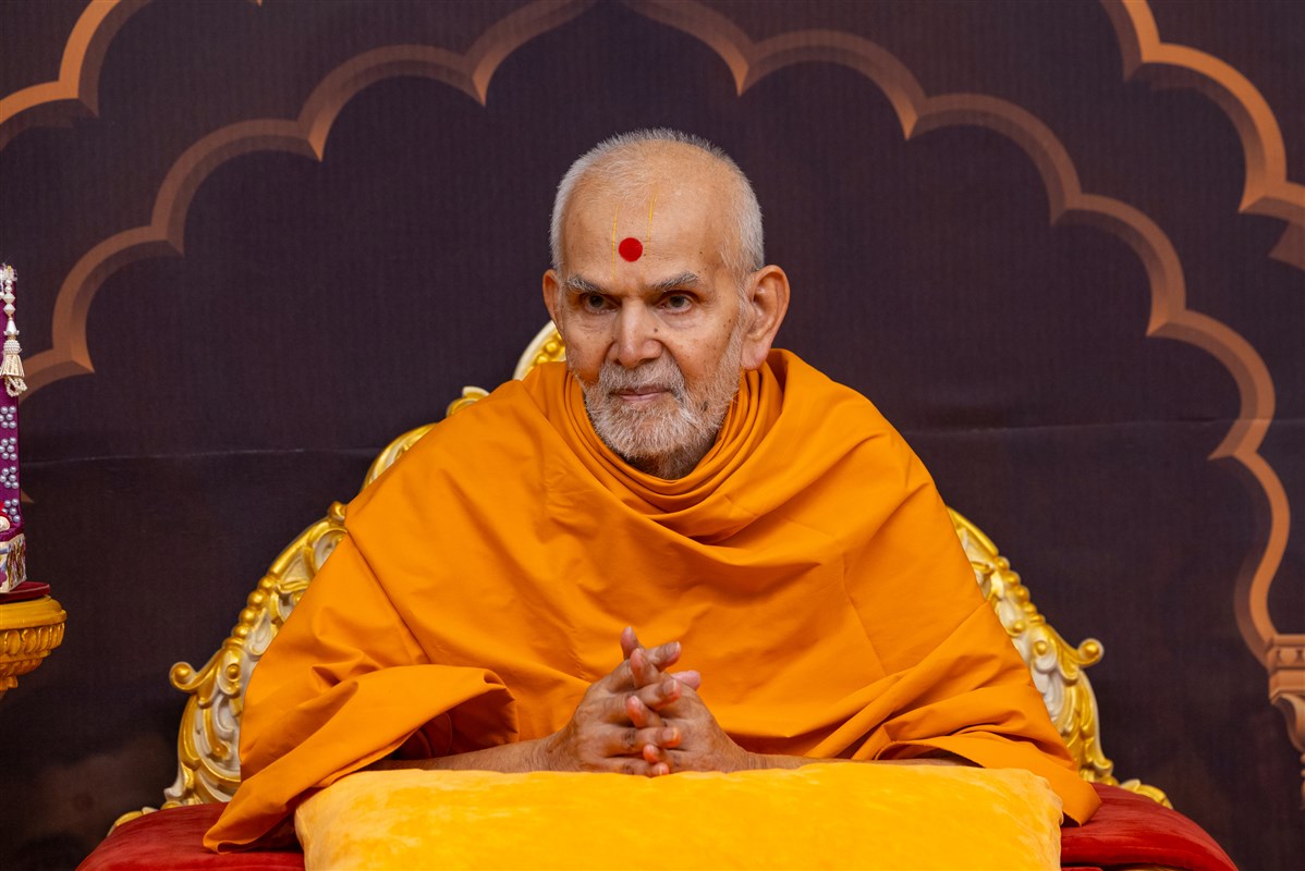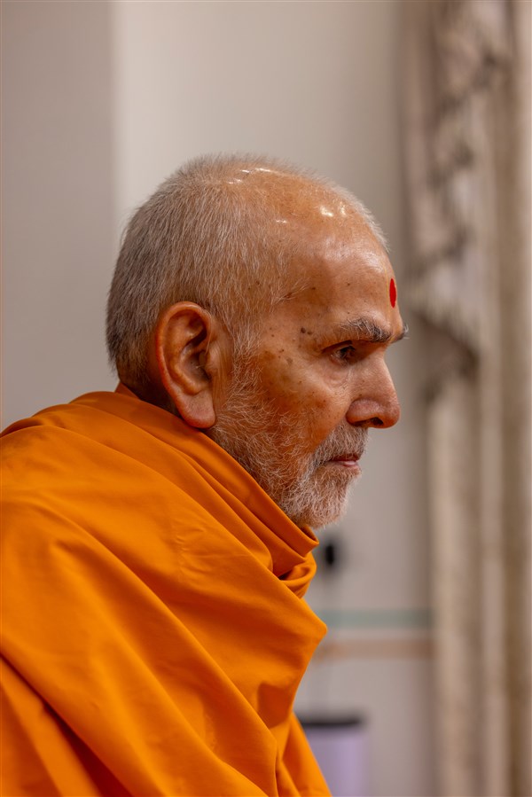 Swamishri engrossed in darshan of Shri Ghanshyam Maharaj