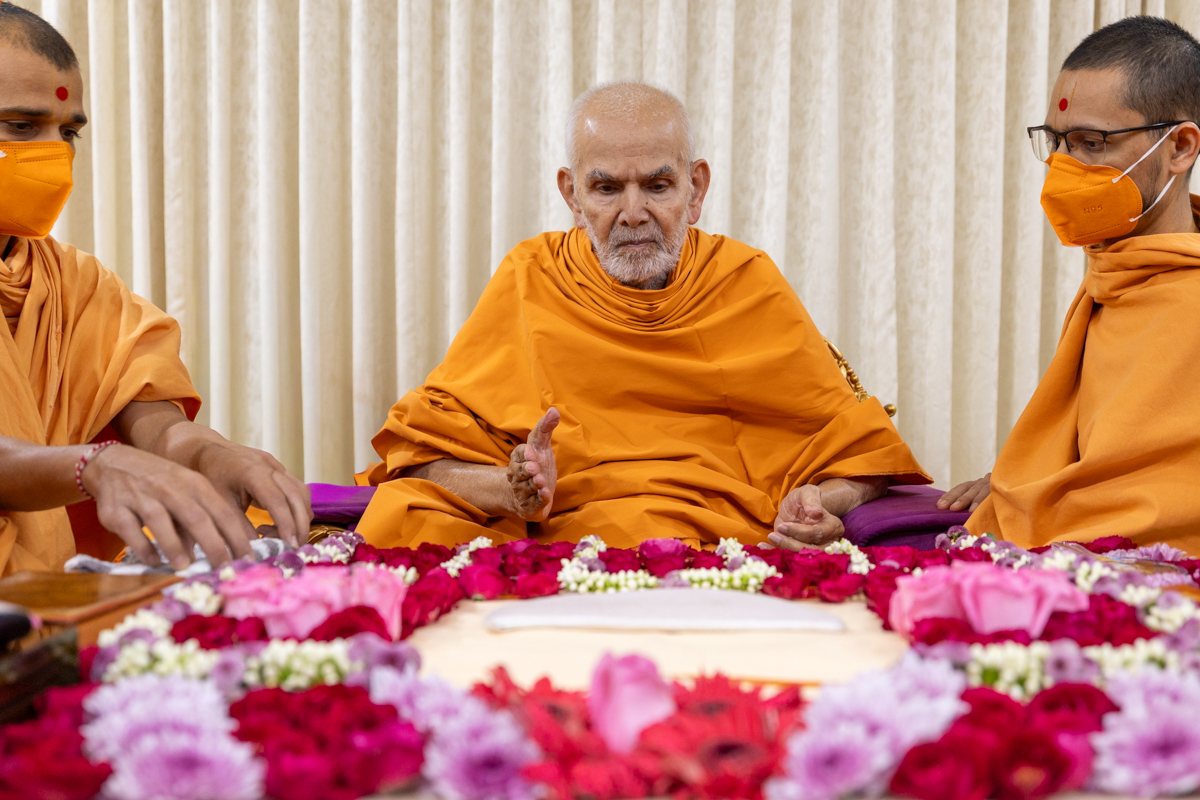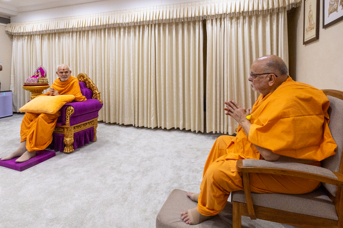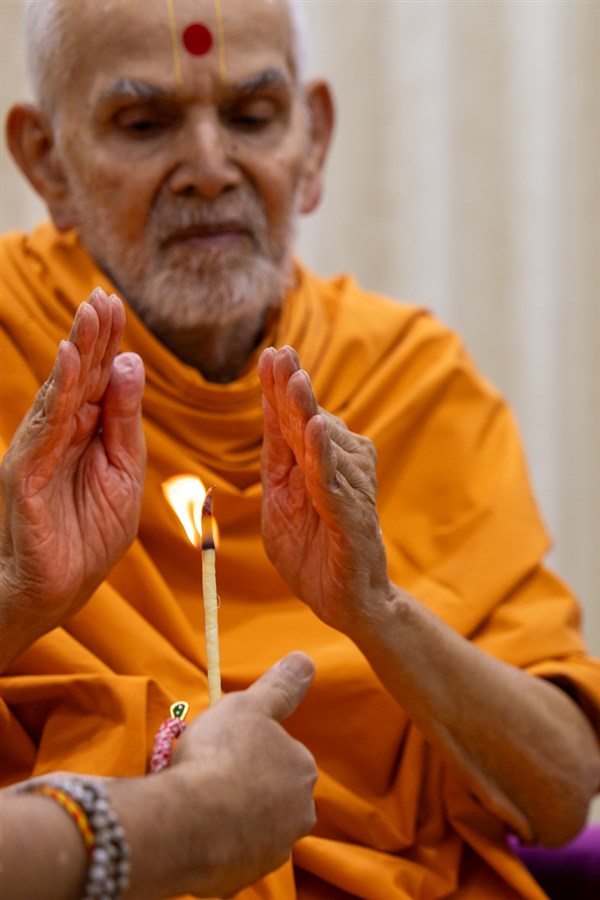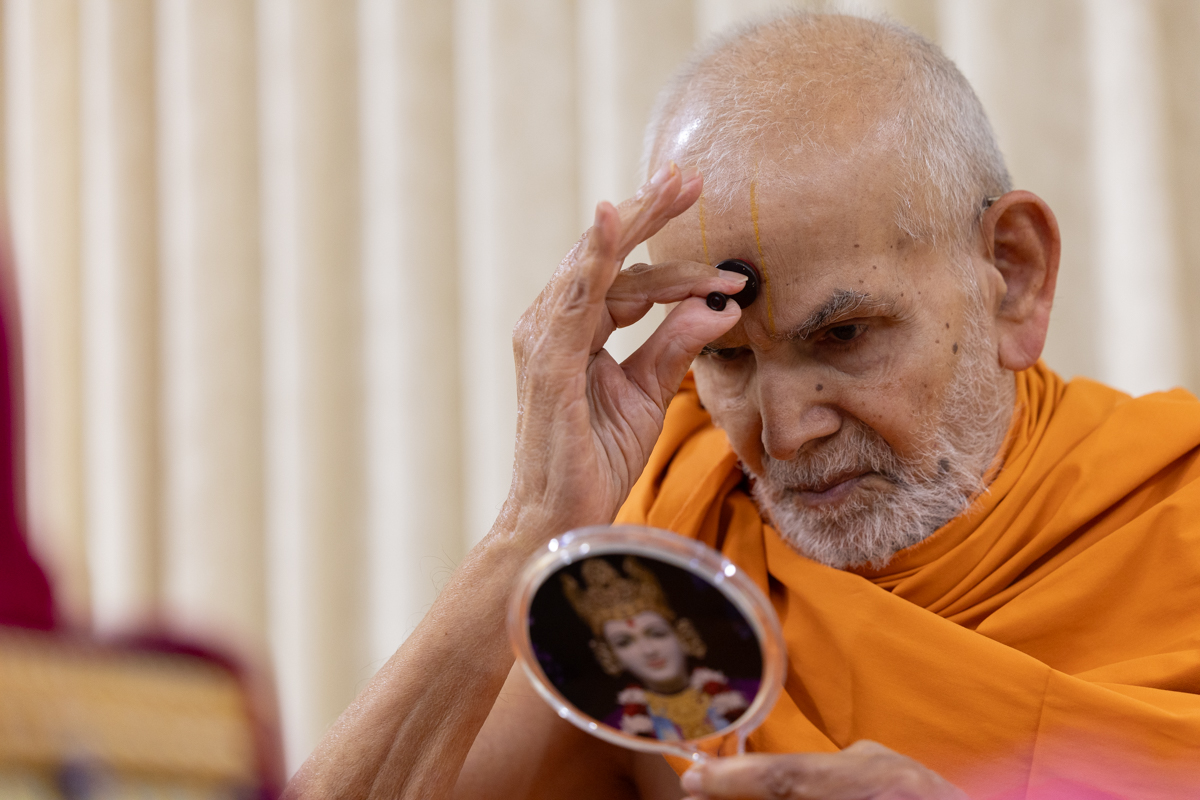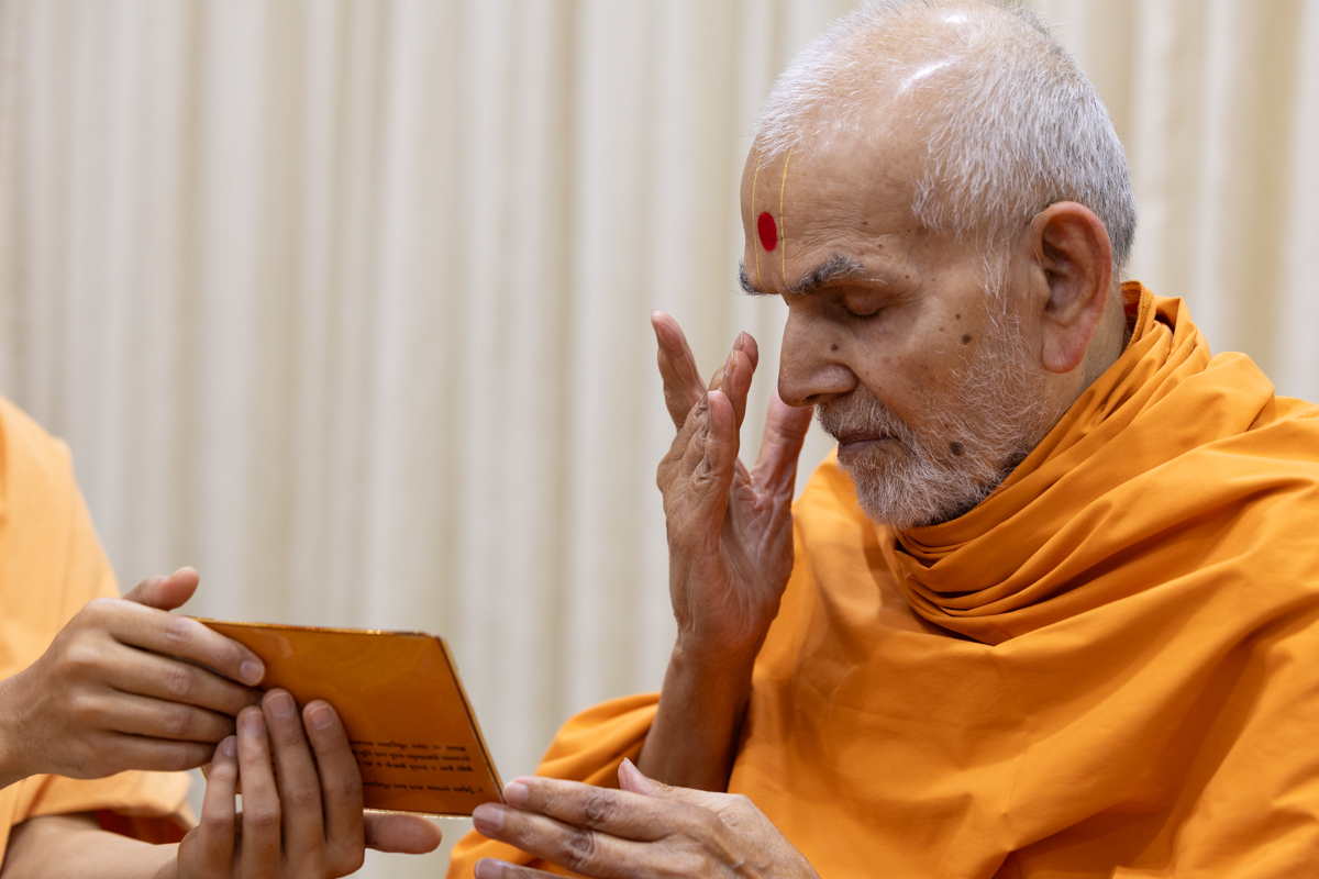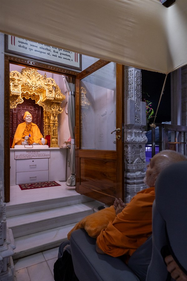 Pujya Ishwarcharan Swami doing darshan of Swamishri