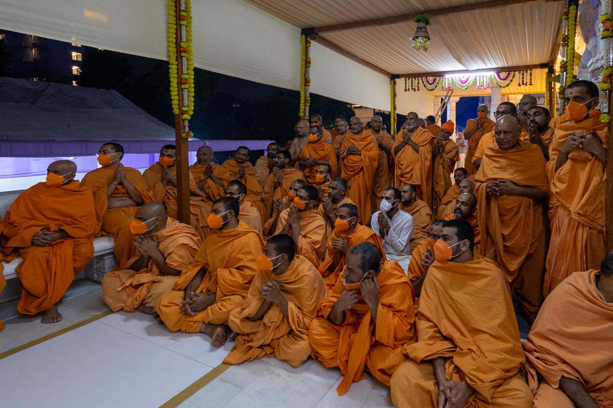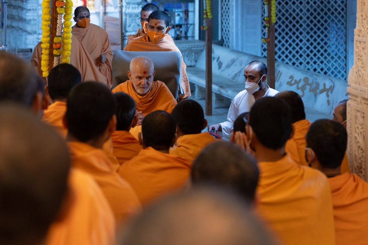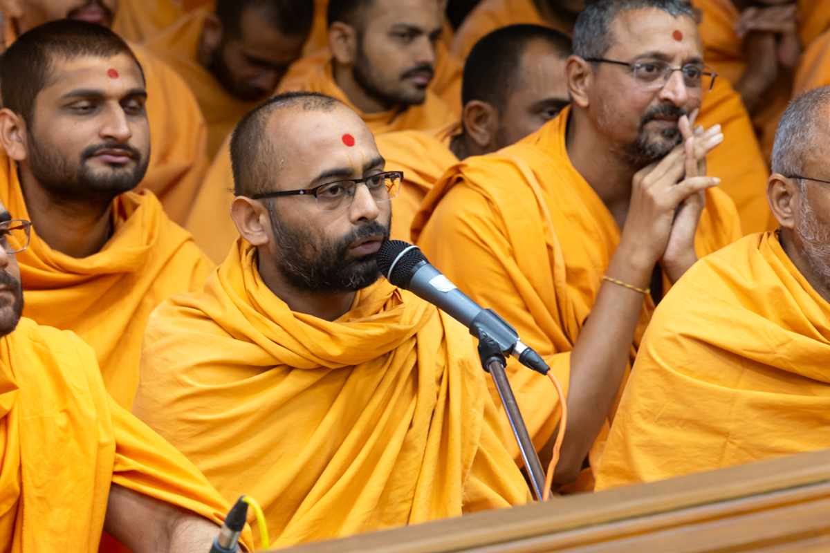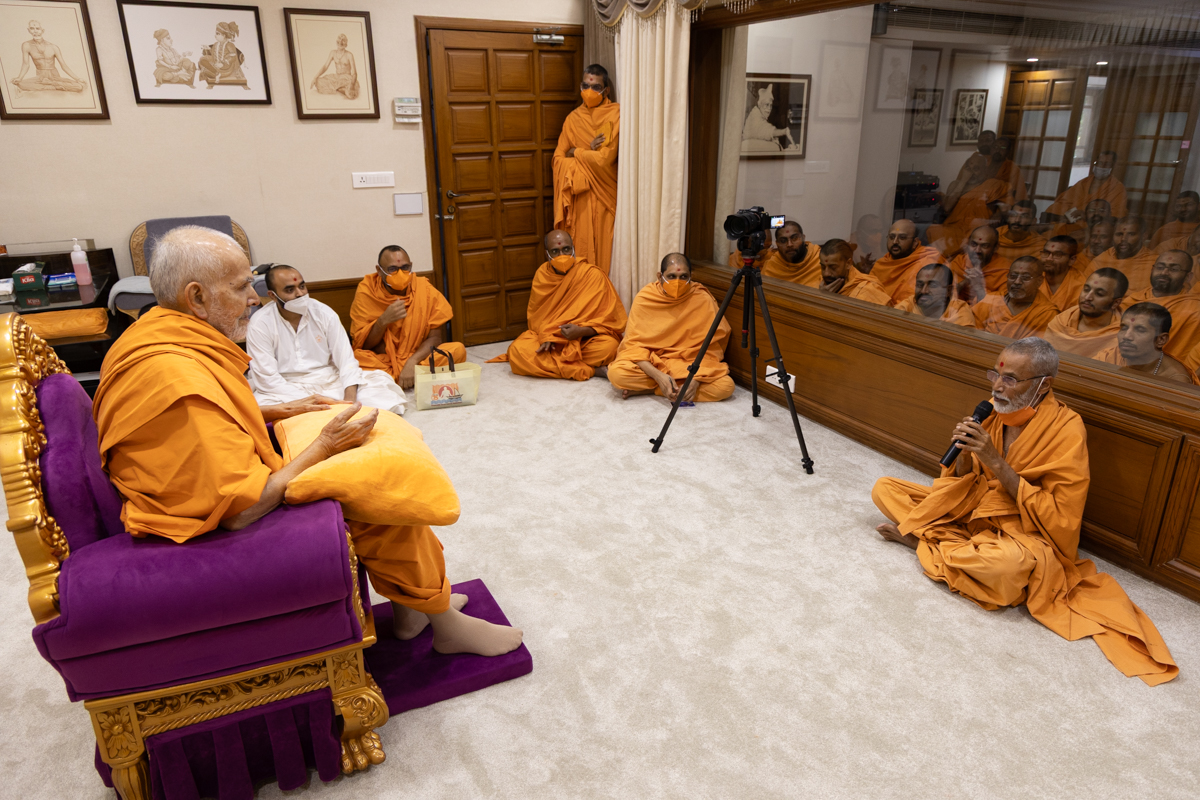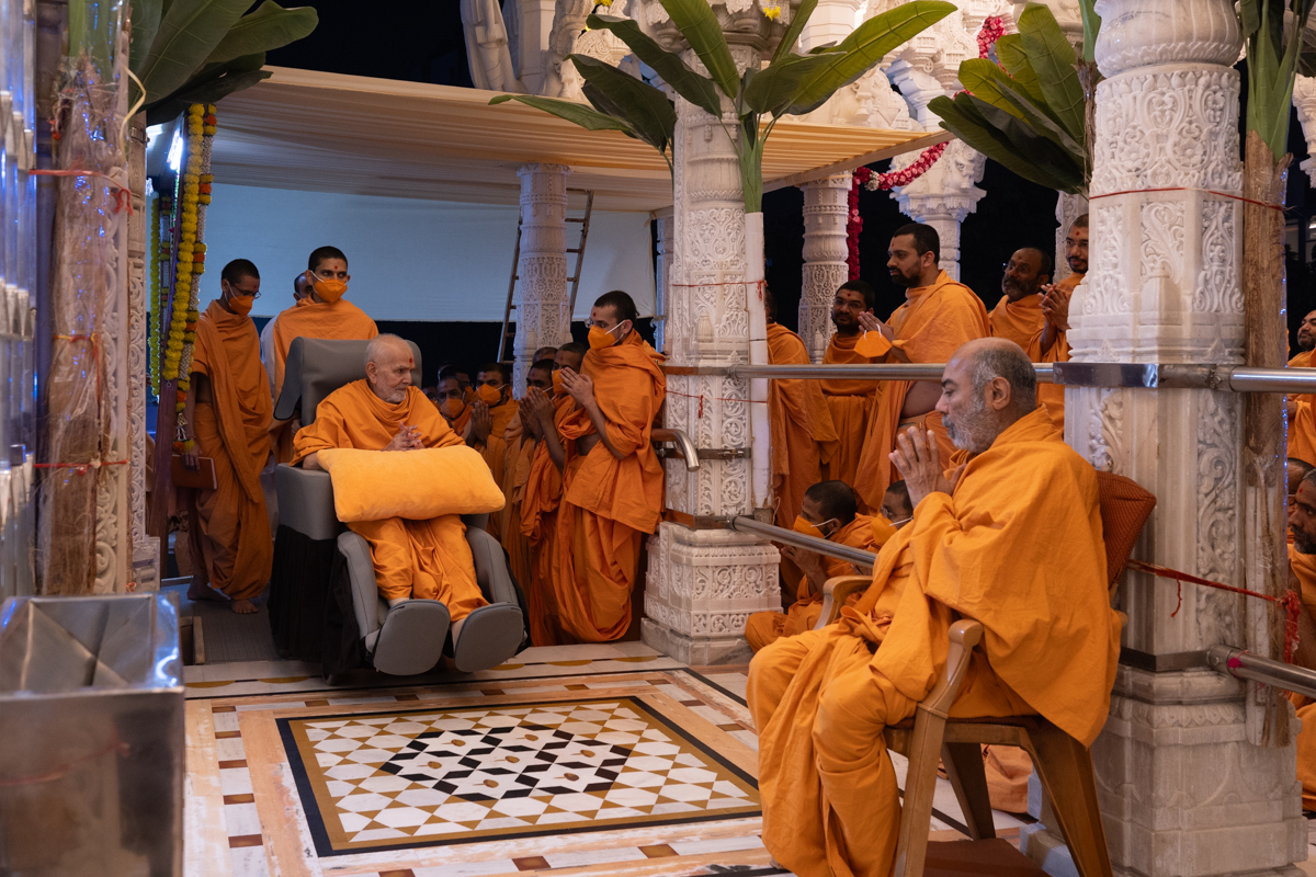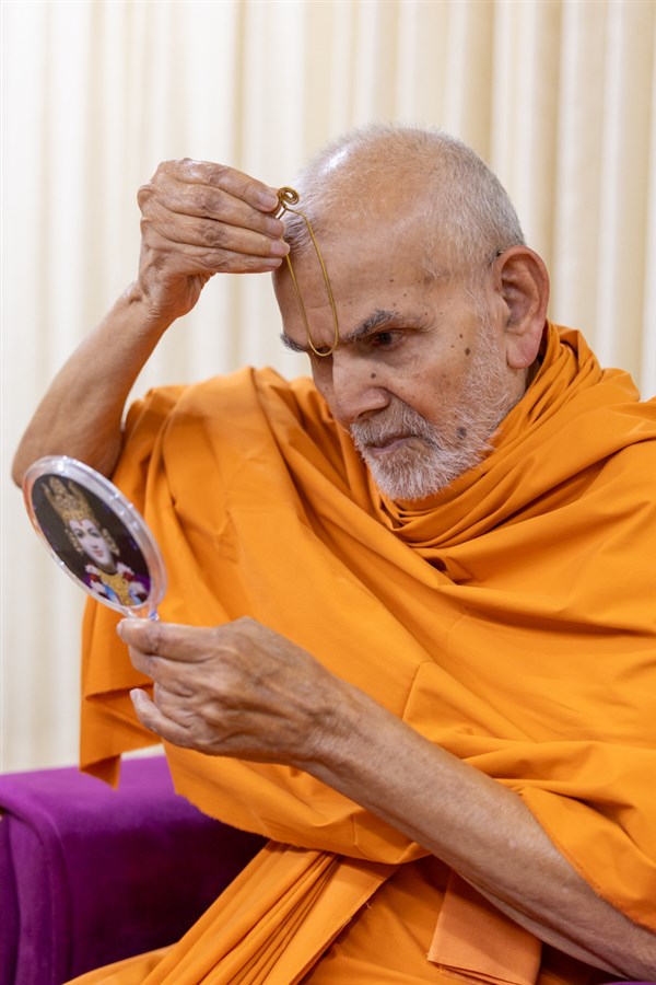 Pujya Ishwarcharan Swami doing darshan of Swamishri
