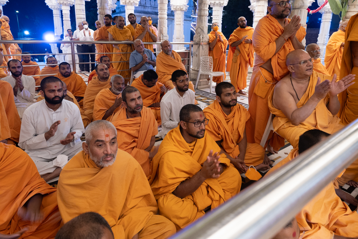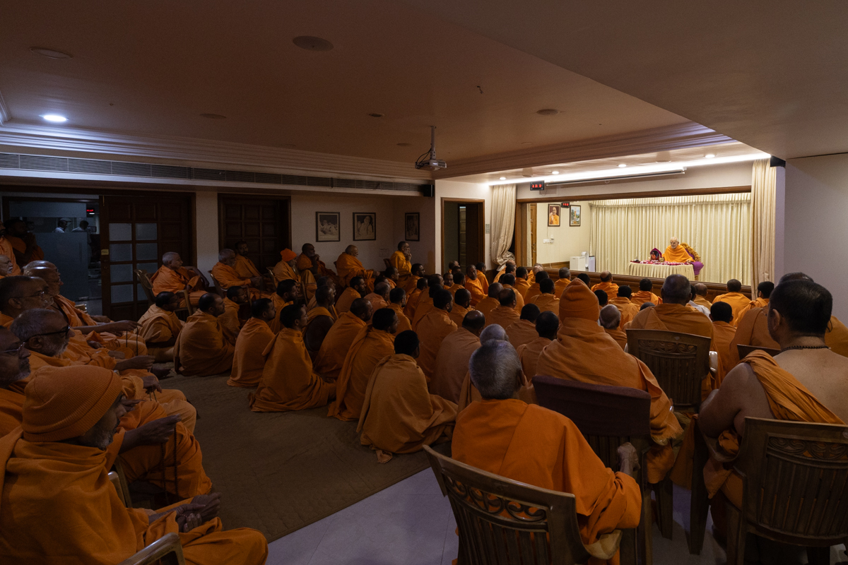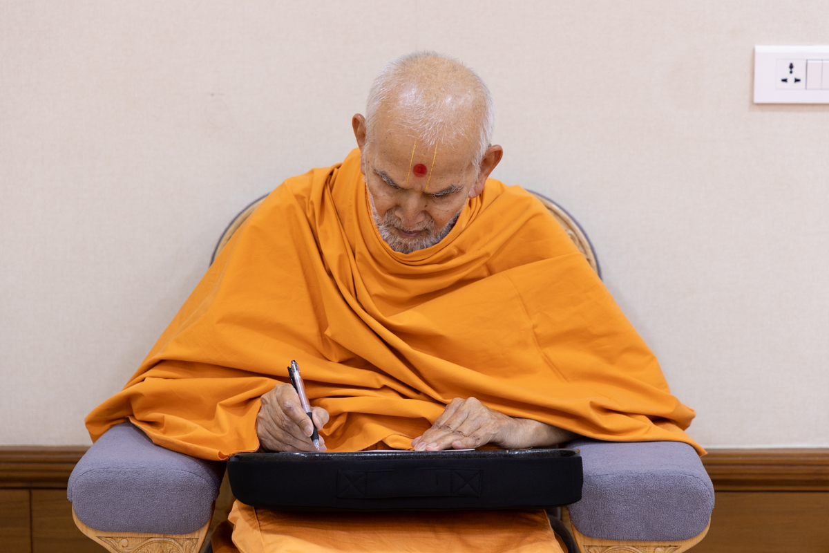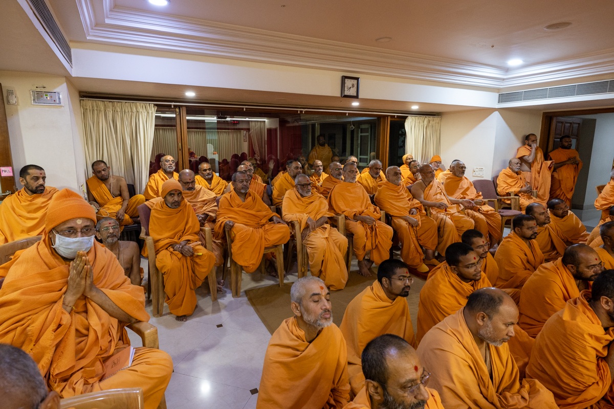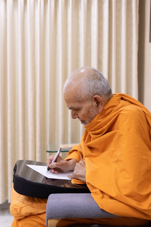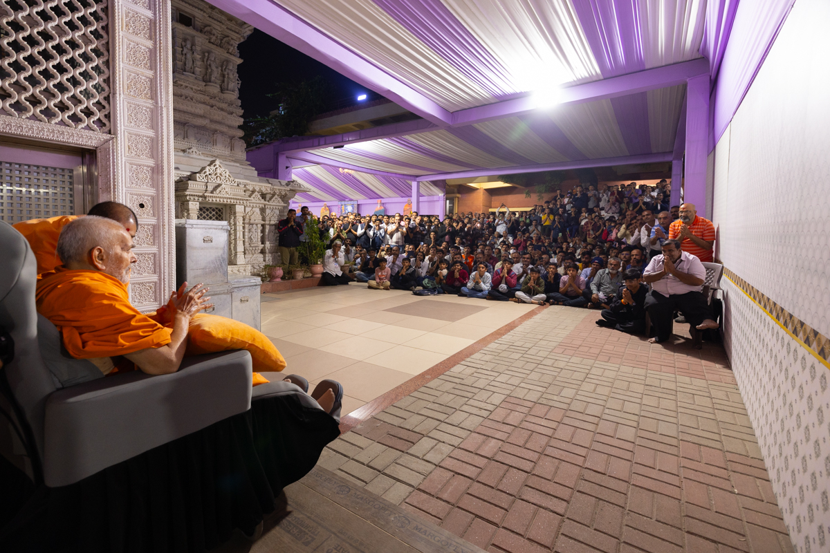 Pujya Ishwarcharan Swami doing darshan of Swamishri