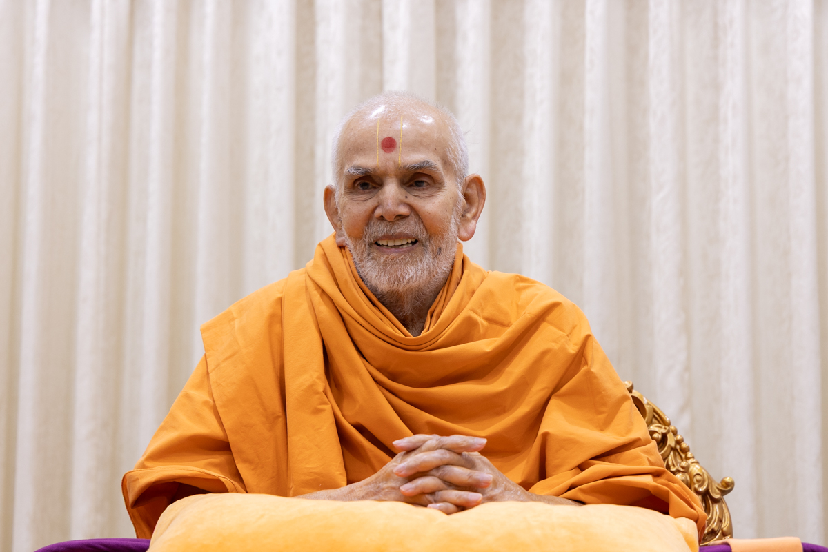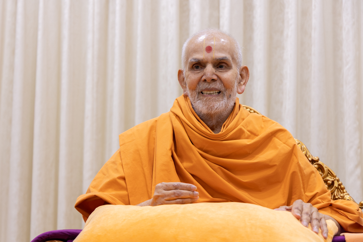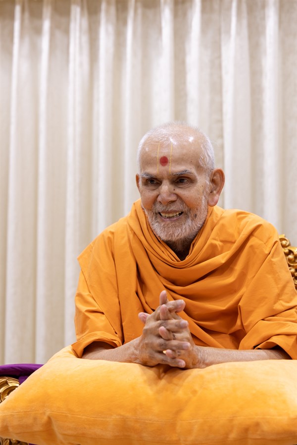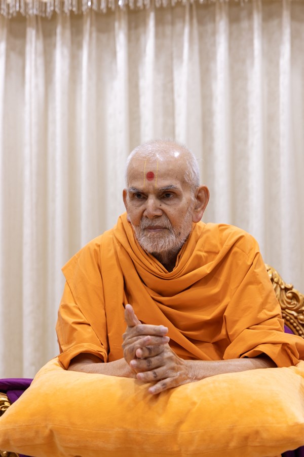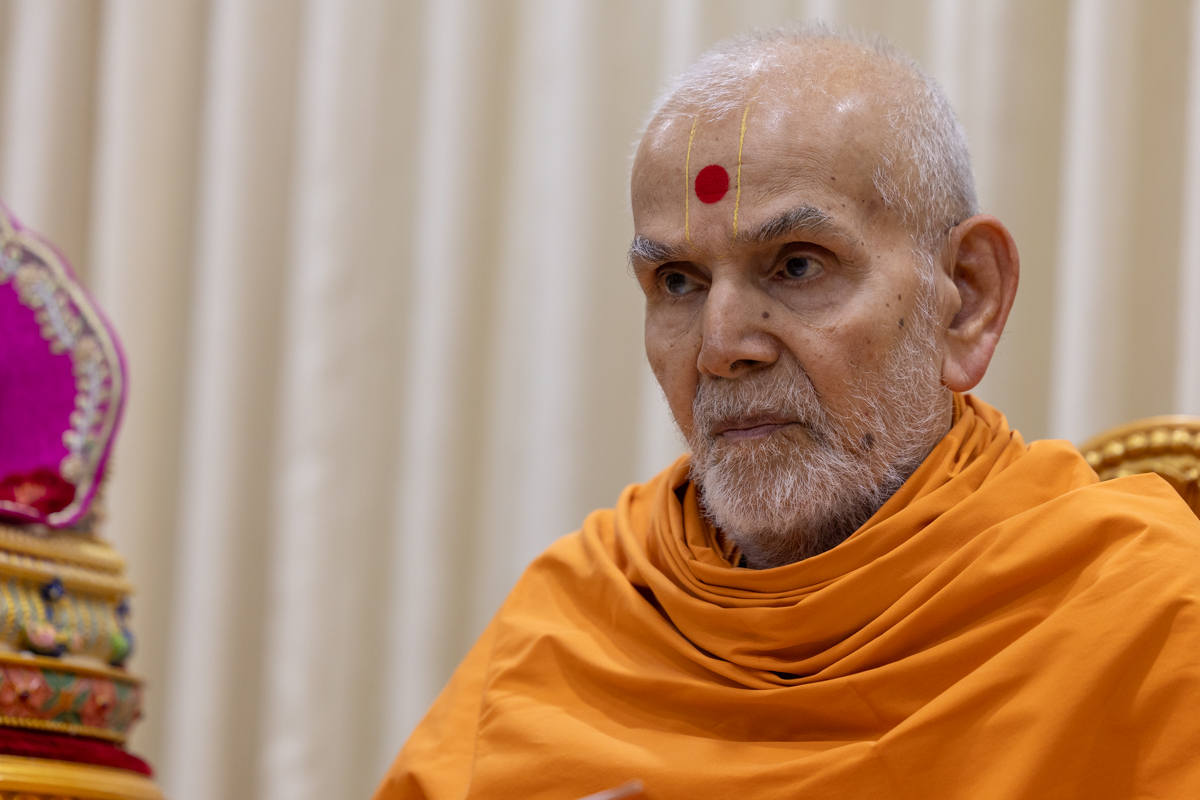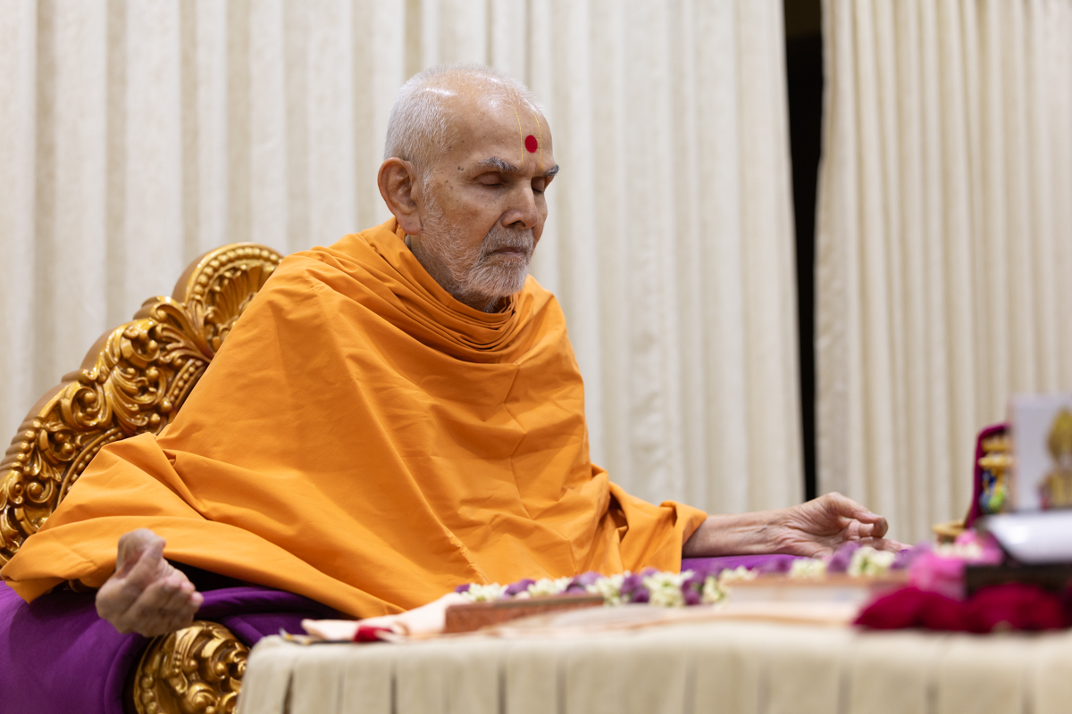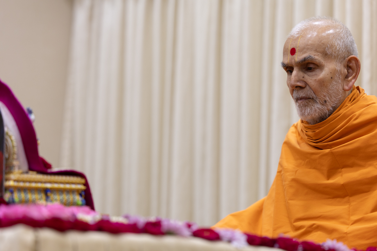 Swamishri engrossed in darshan of Shri Ghanshyam Maharaj