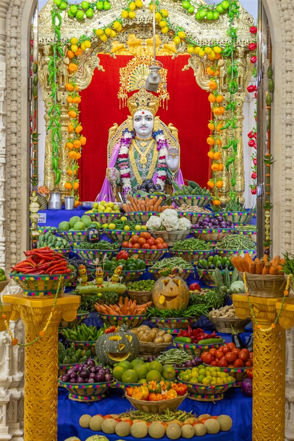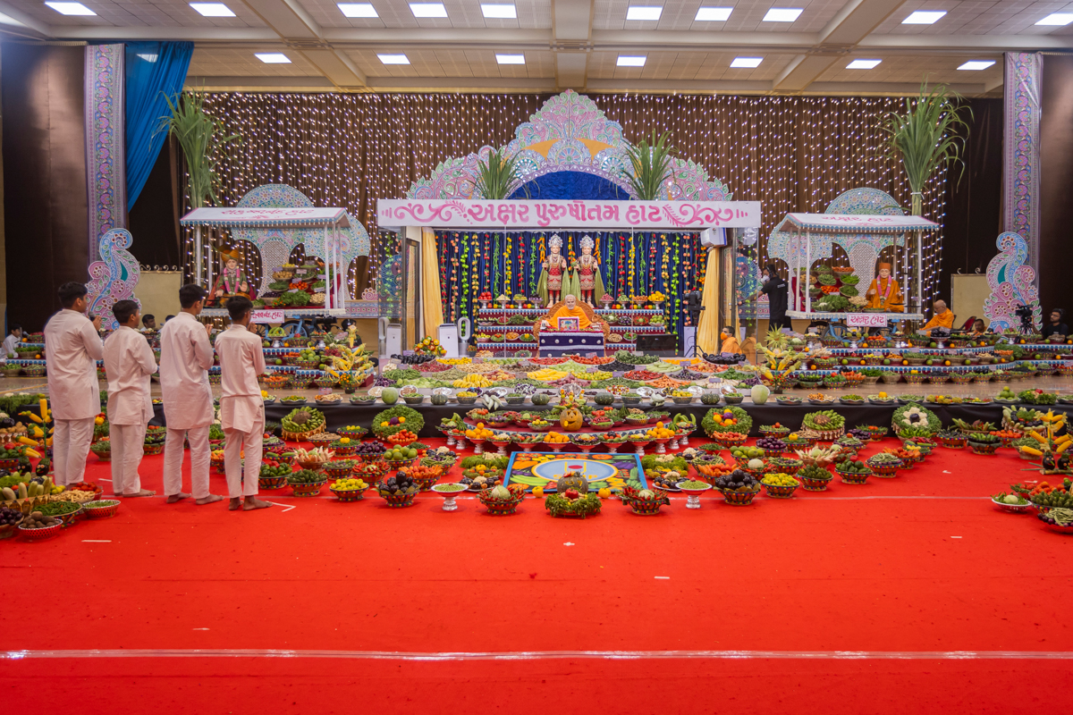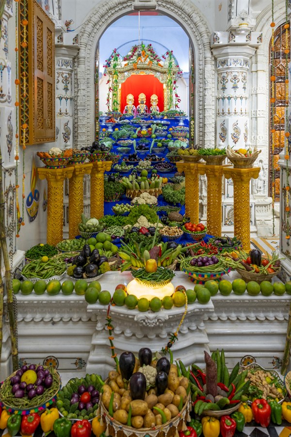 Annakut of fruits and vegetables (Haatadi) in the Akshar Deri