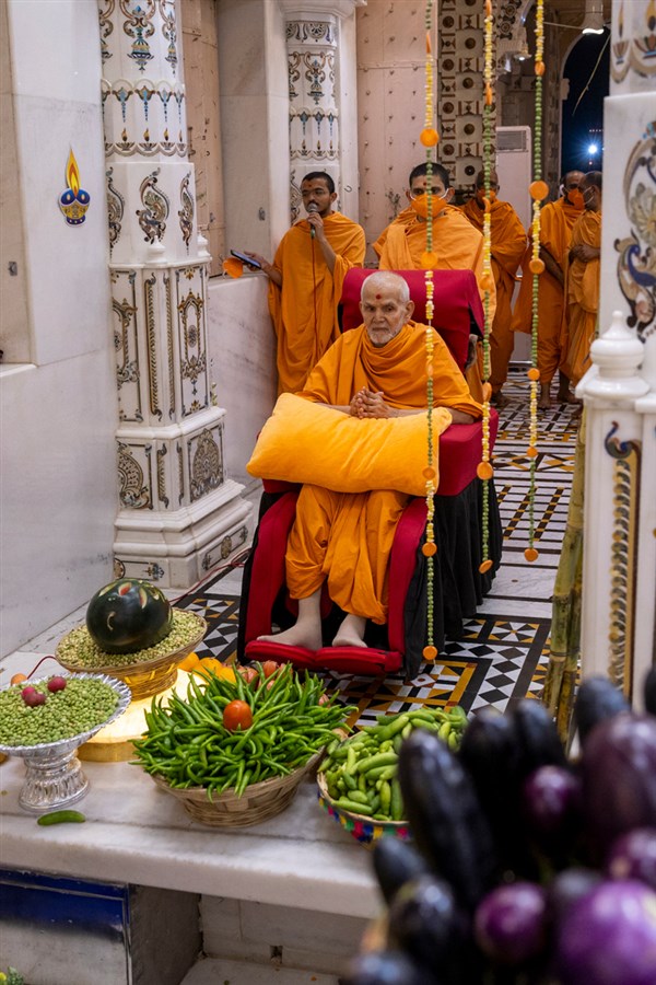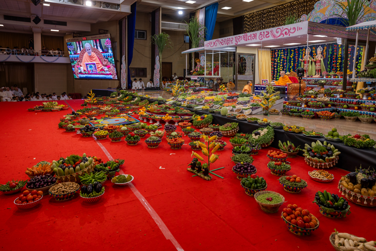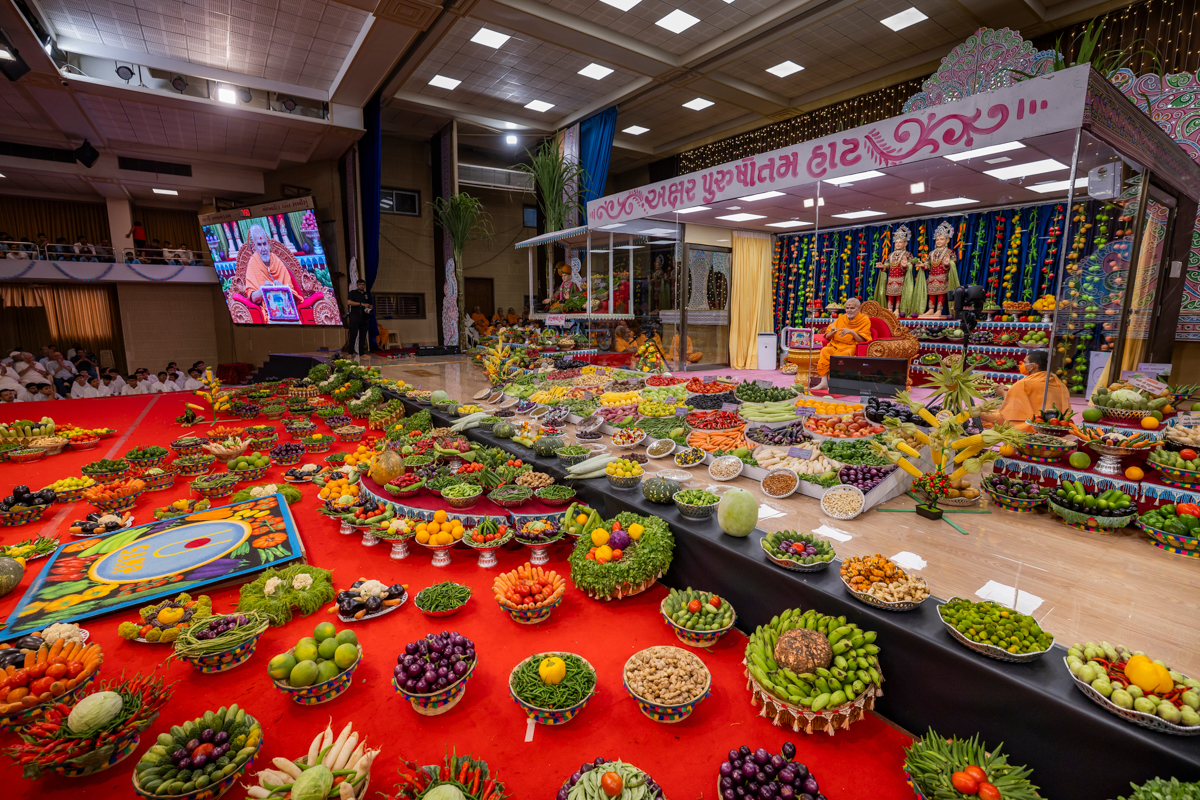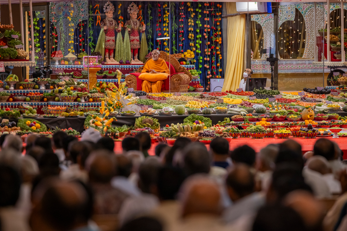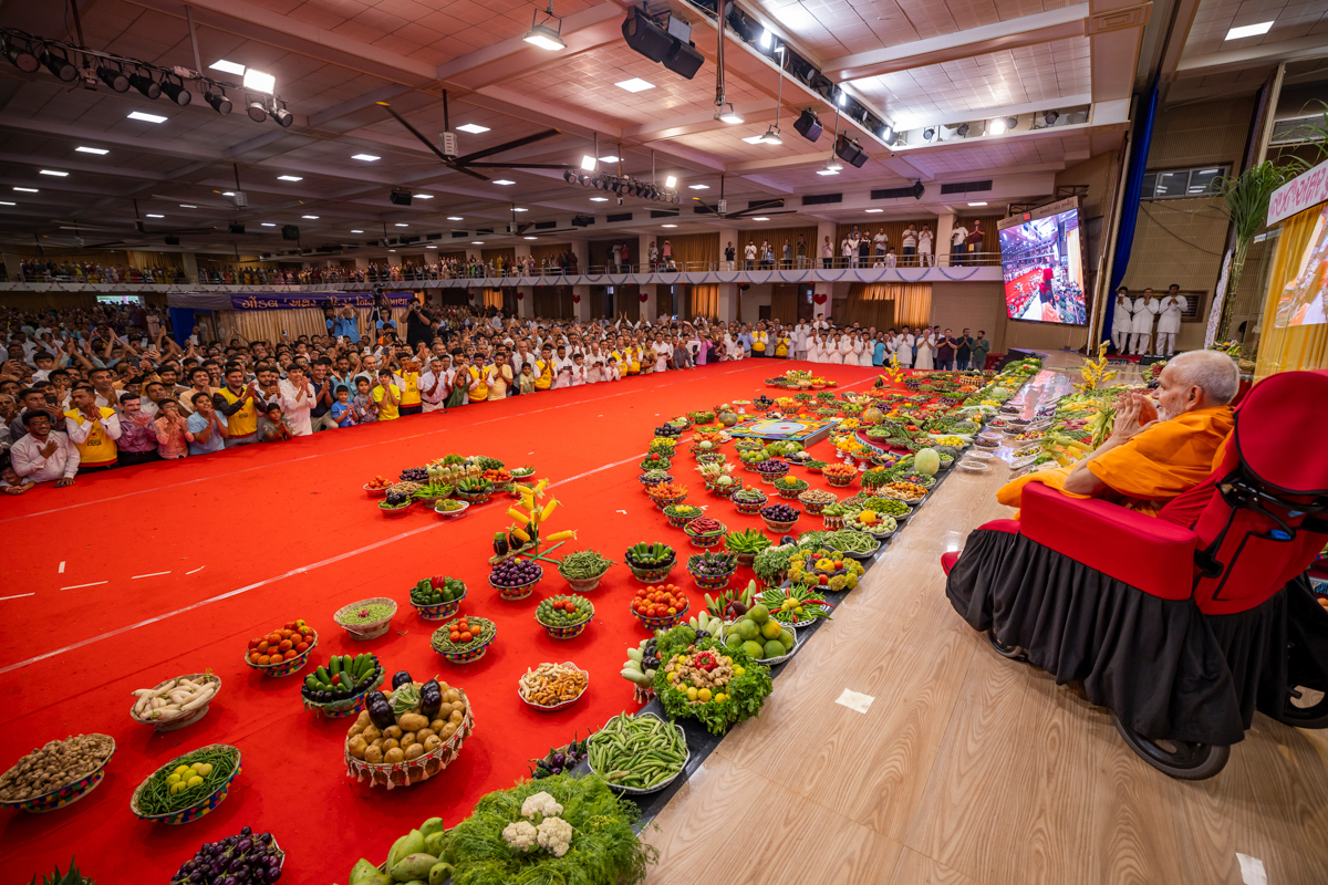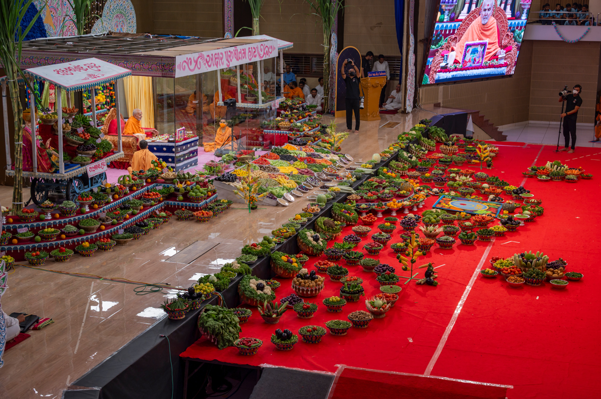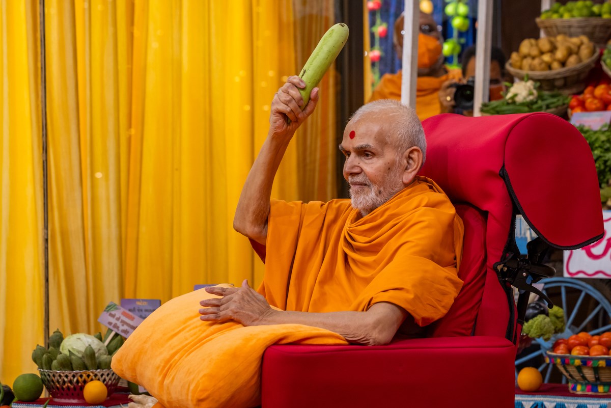 Swamishri observes the annakut of fruits and vegetables