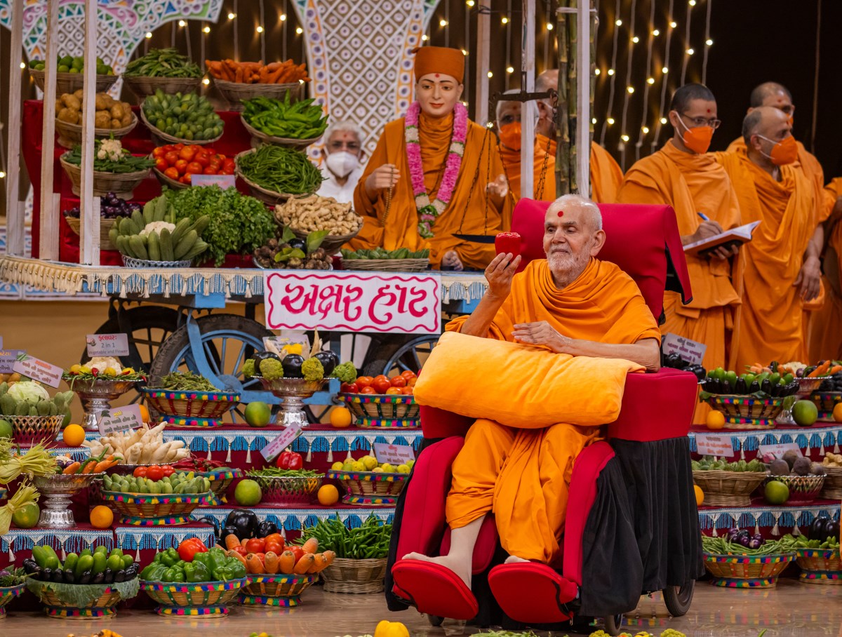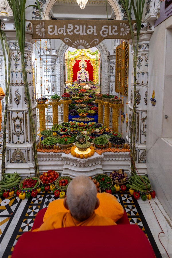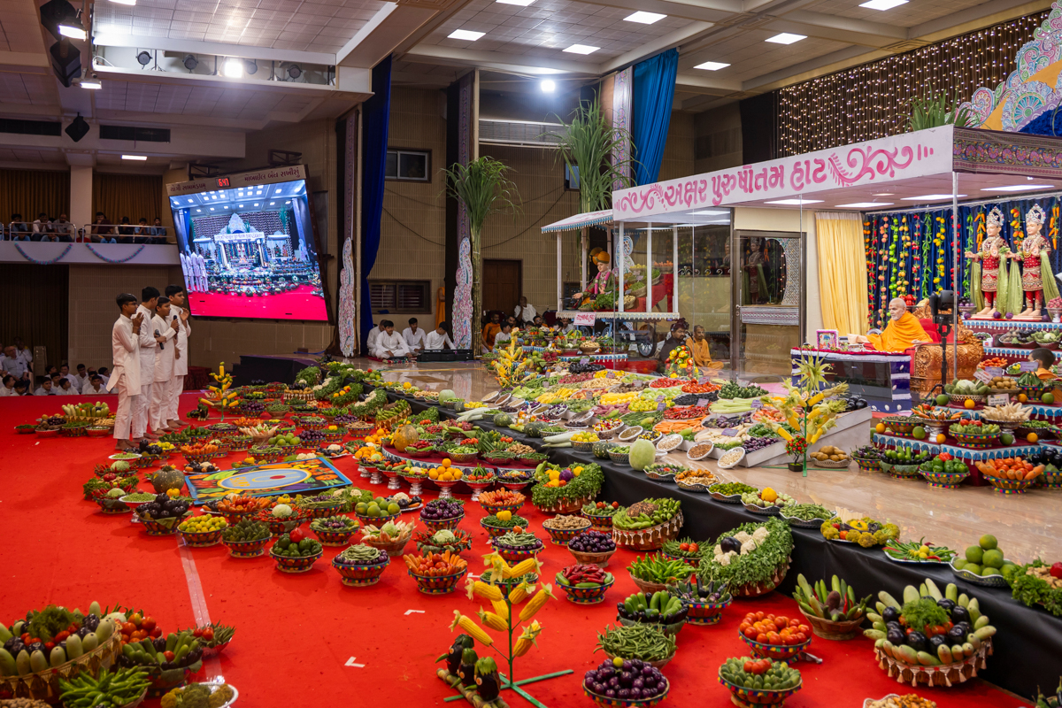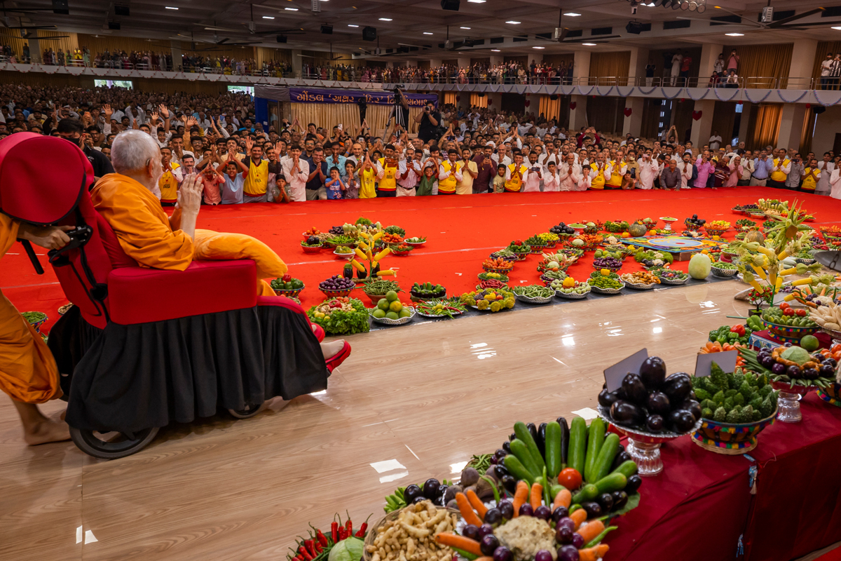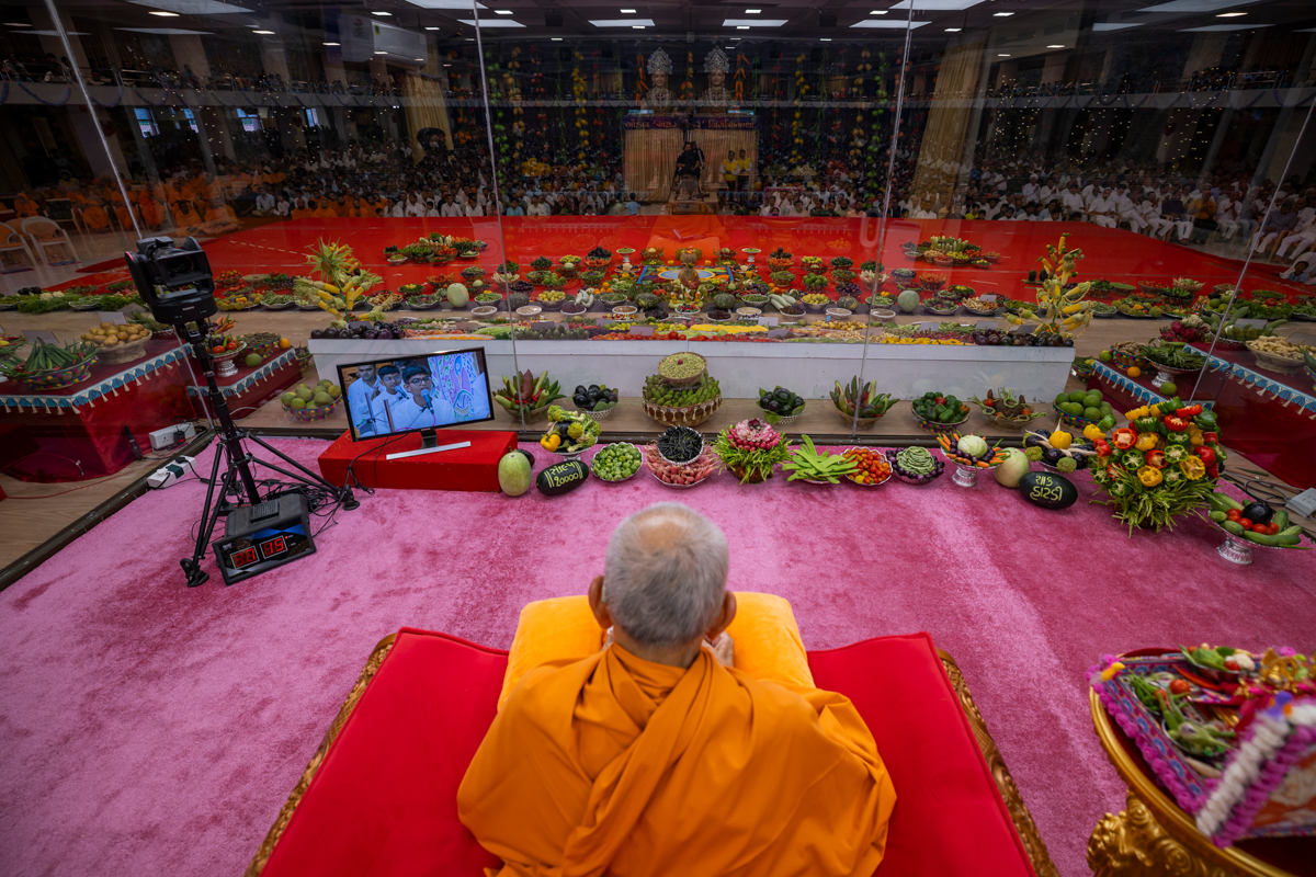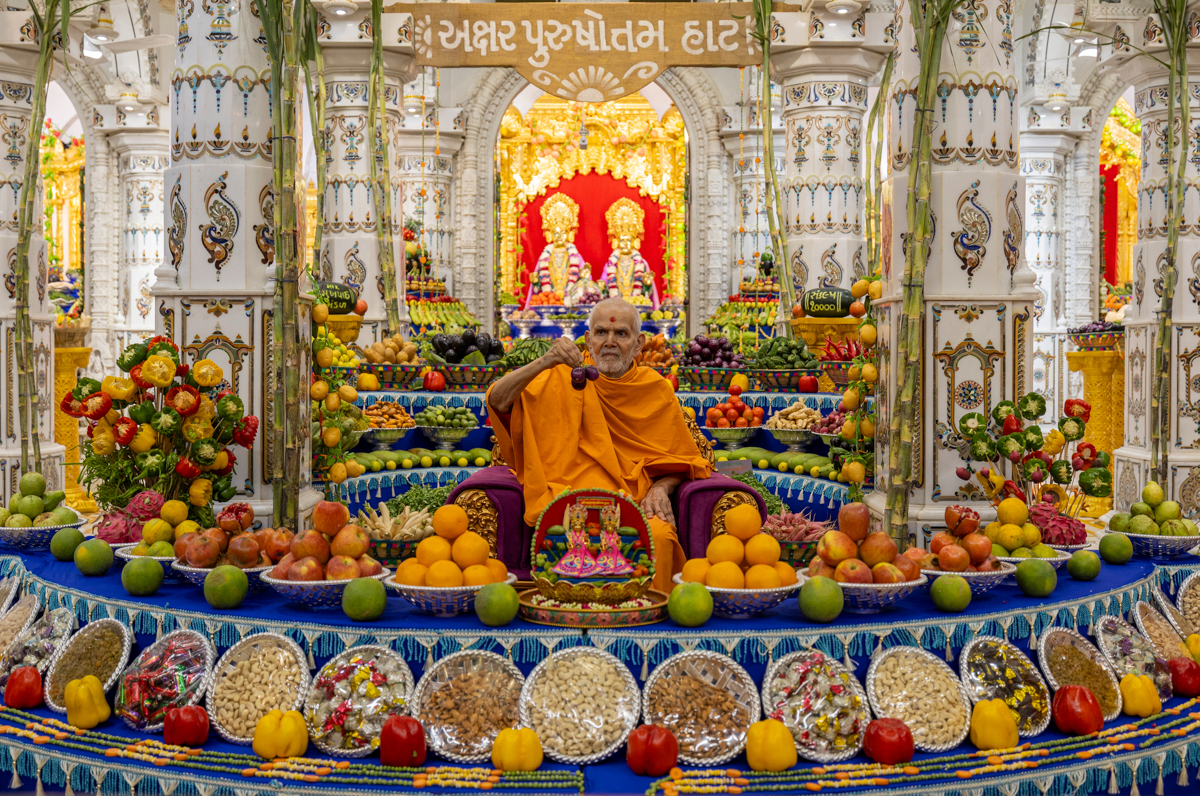 Swamishri observes the annakut of fruits and vegetables