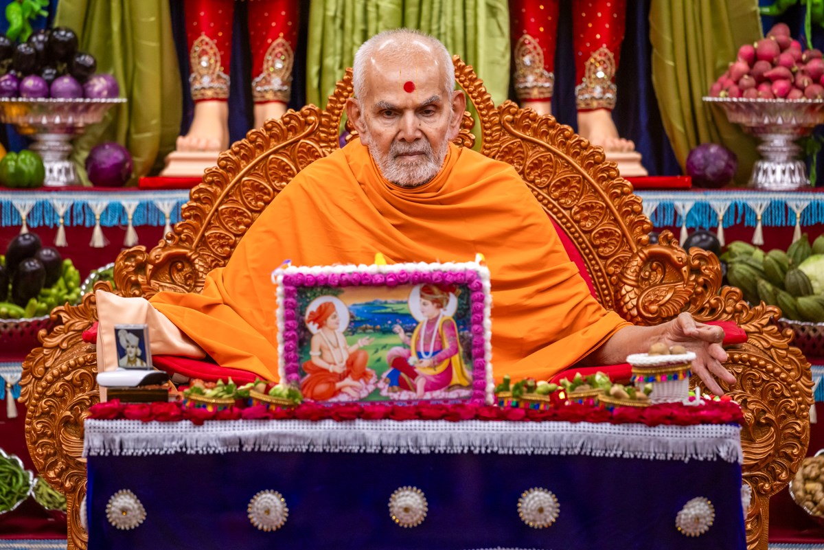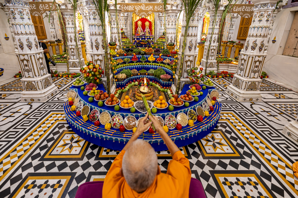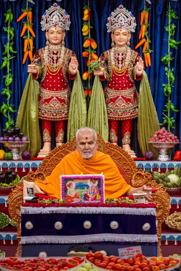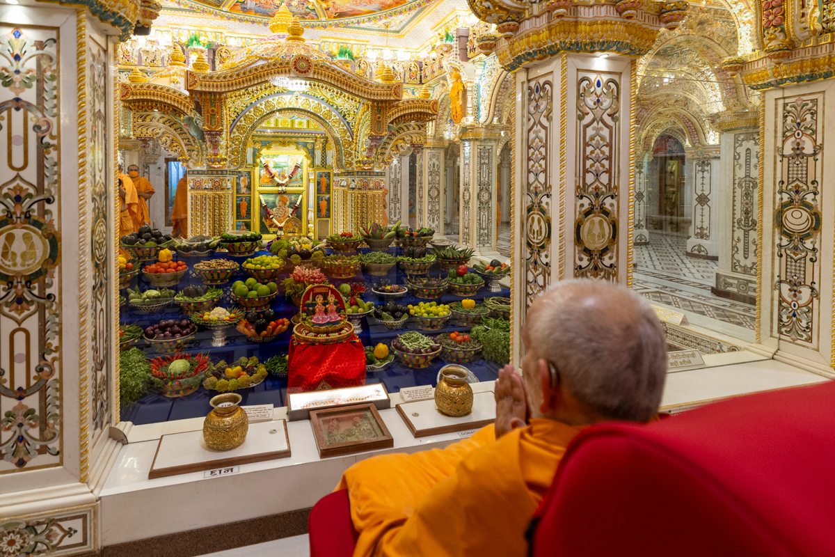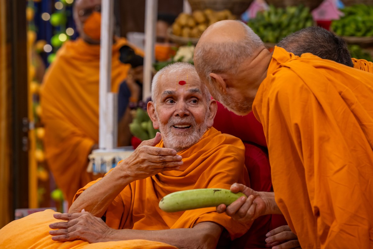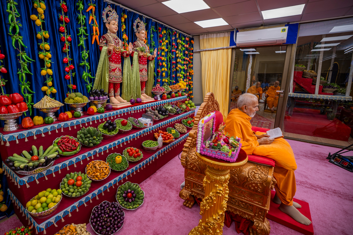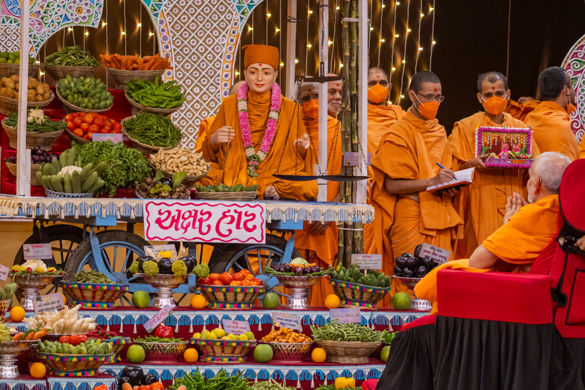 Swamishri observes the annakut of fruits and vegetables