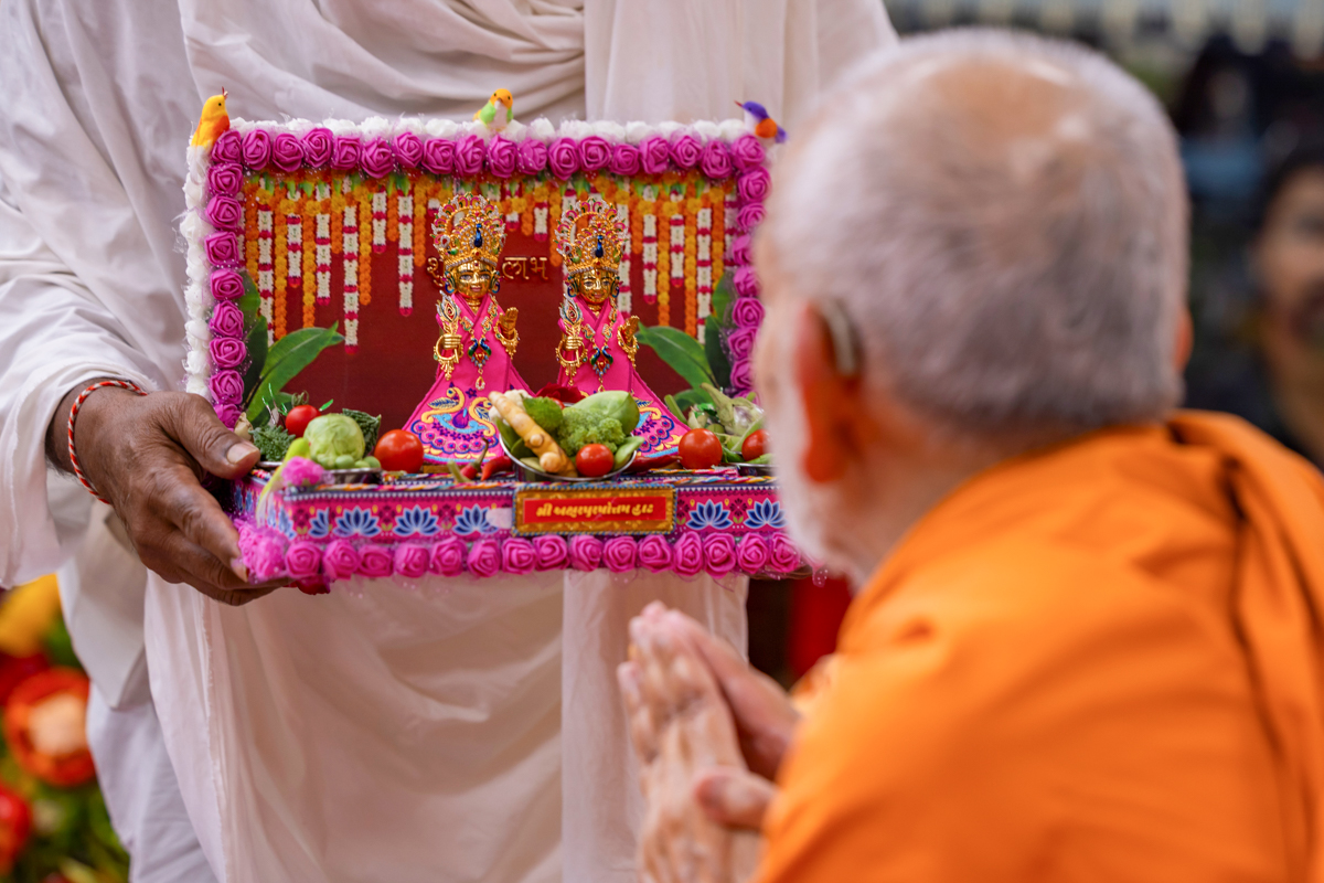 Thal is offered to Shri Harikrishna Maharaj and Shri Gunatitanand Swami Maharaj