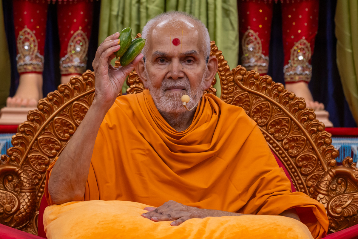 Swamishri sanctifies a lemon