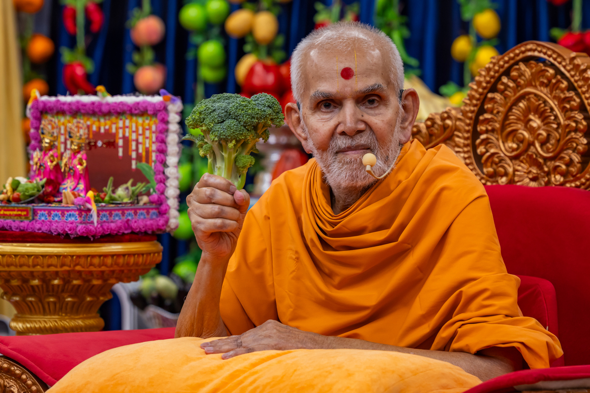 Swamishri sanctifies a broccoli head