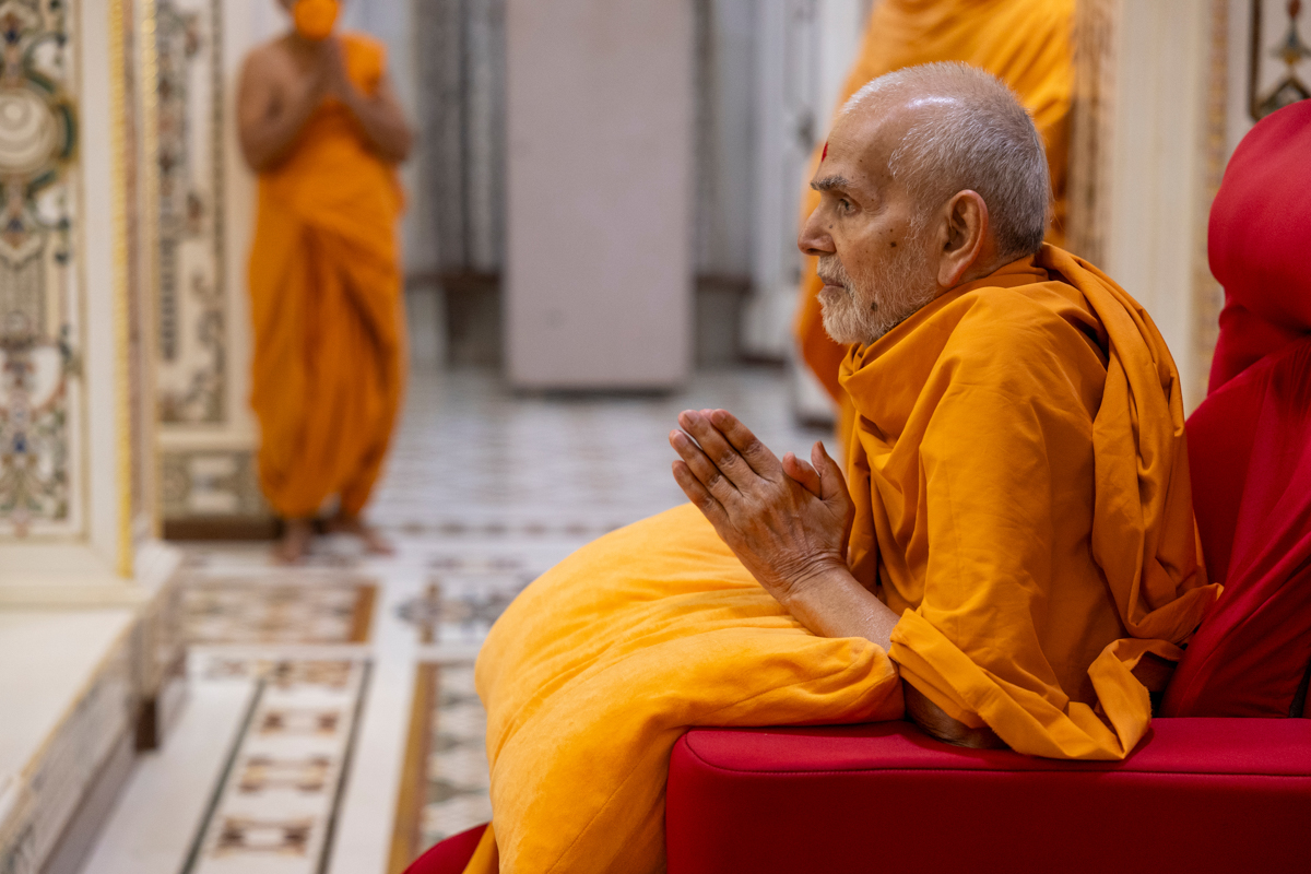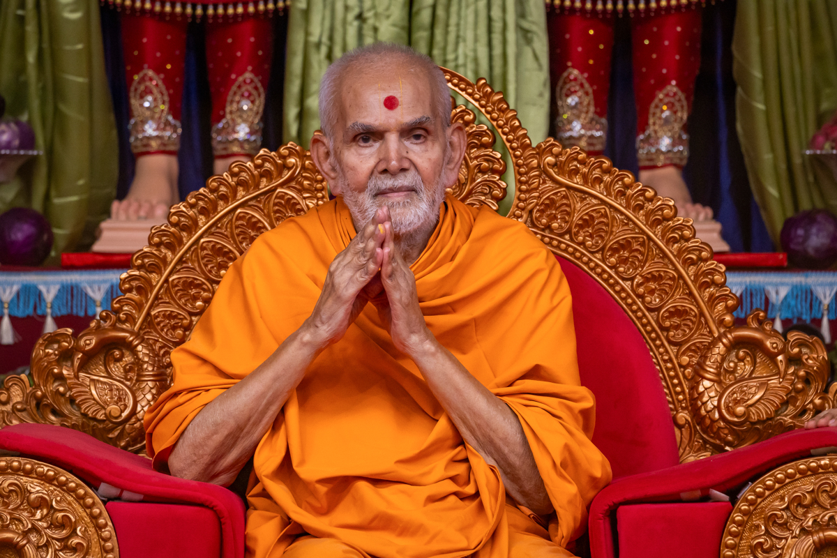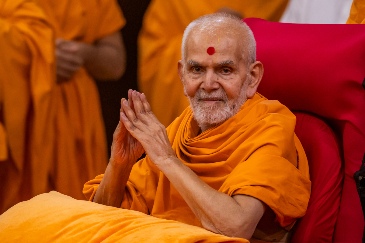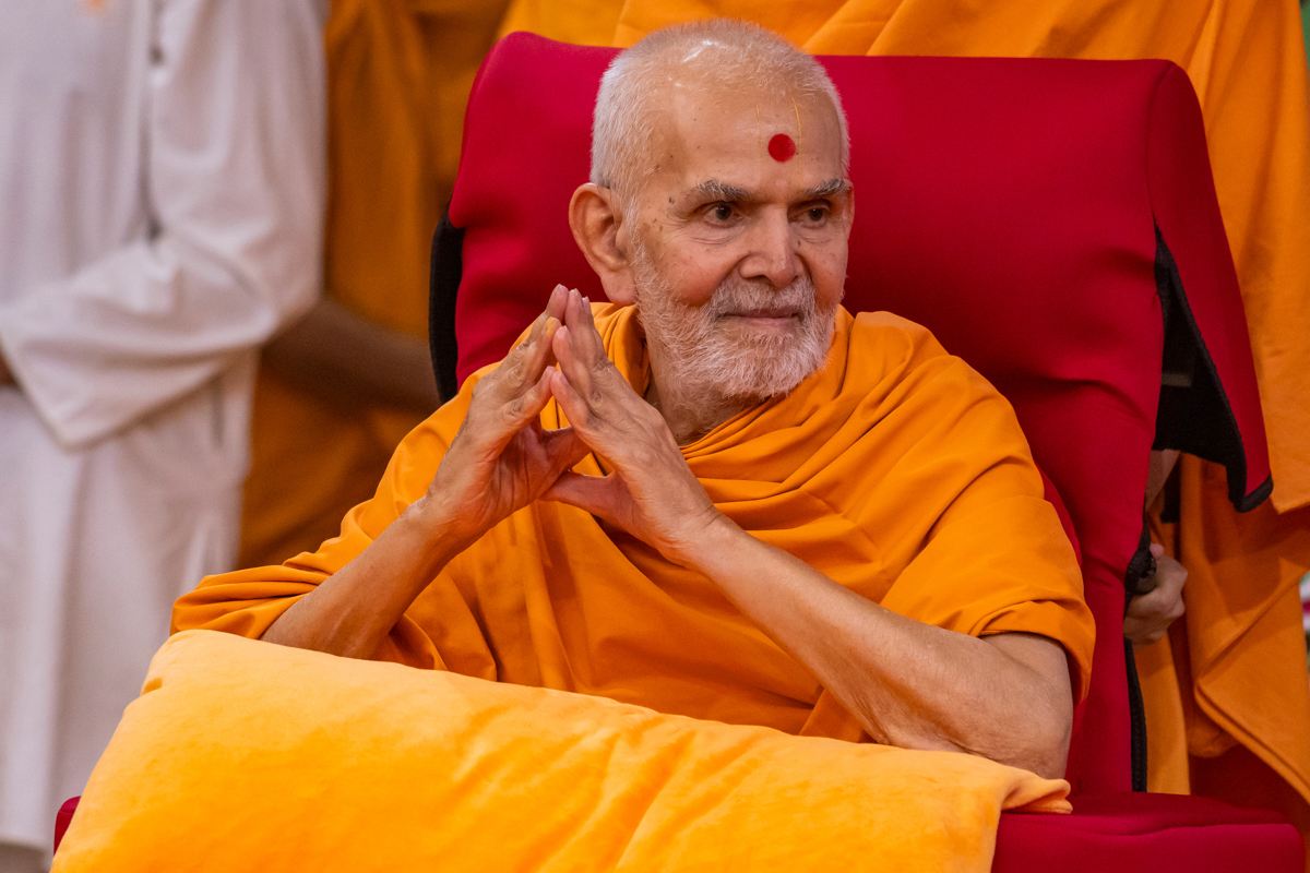Swamishri greets all with folded hands