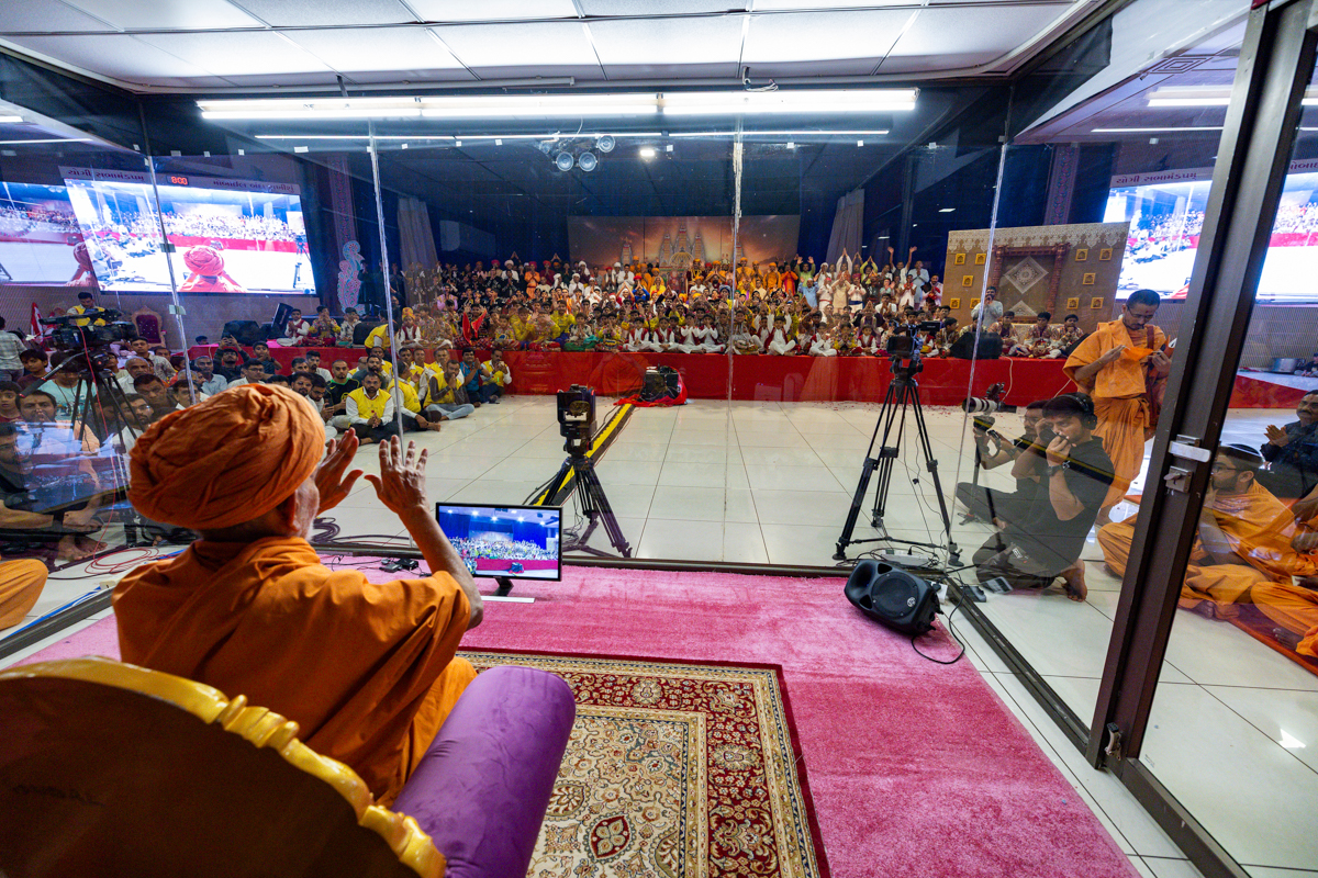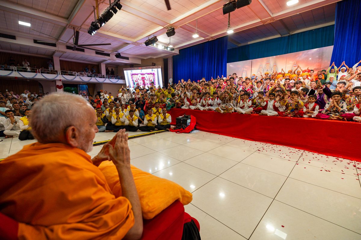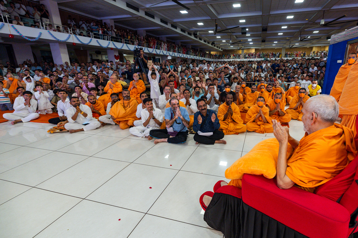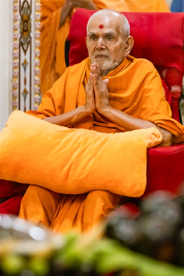 Swamishri greets all with folded hands