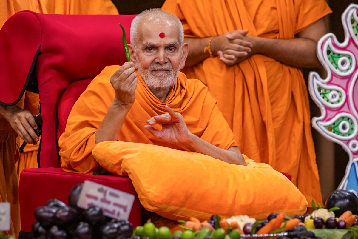 Swamishri sanctifies a red chilli