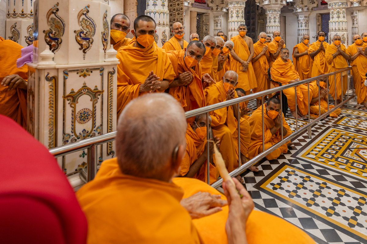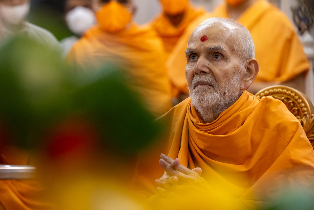 Swamishri performs the morning arti