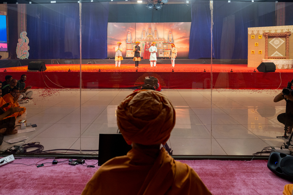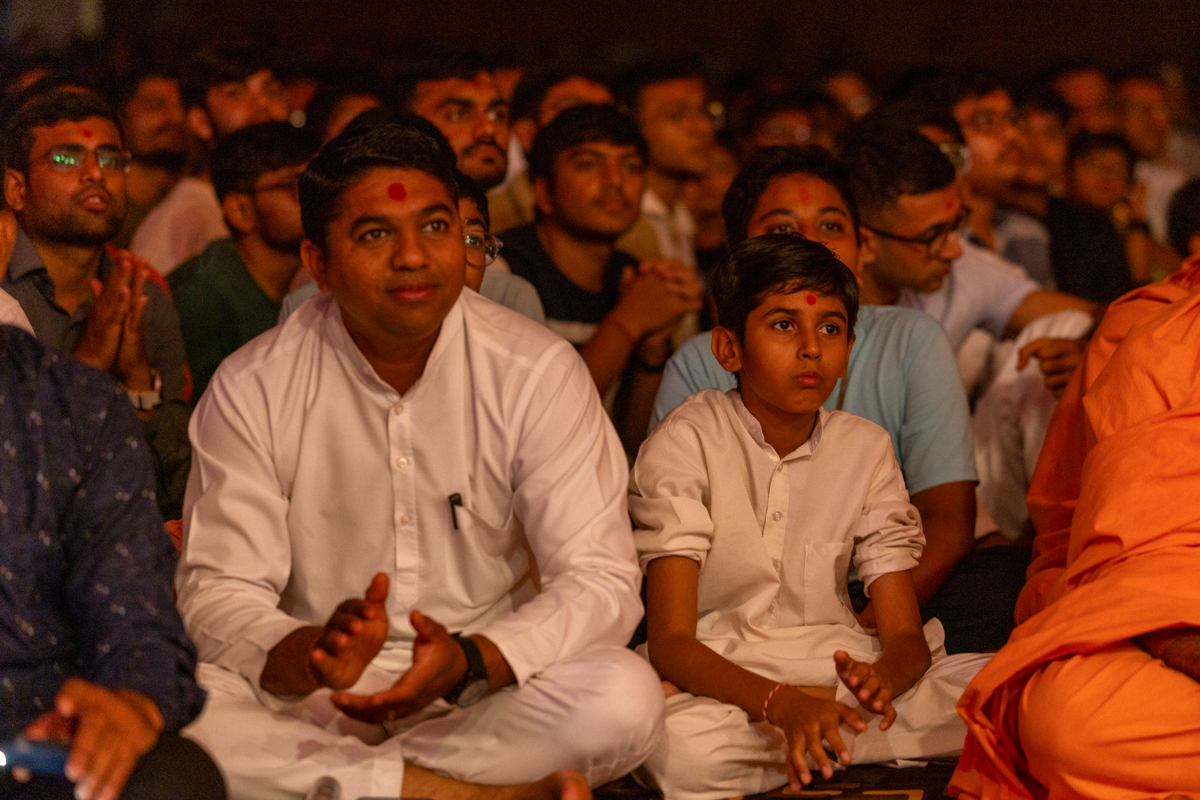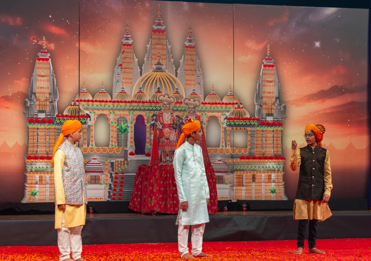 Youths sing kirtans in Swamishri's daily puja