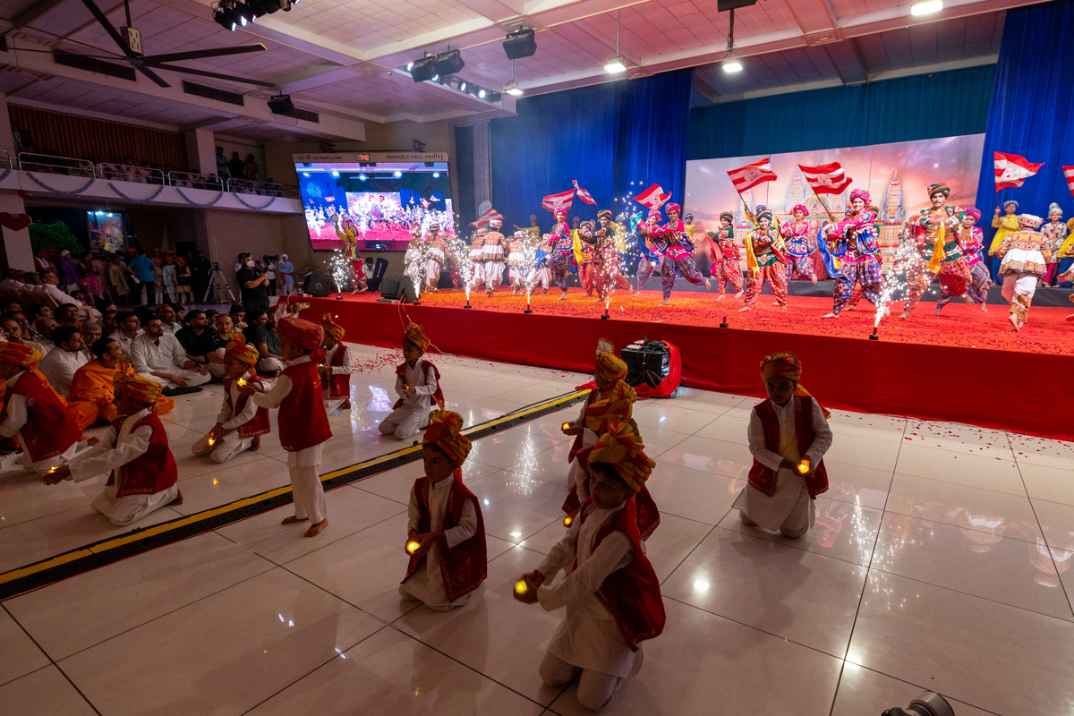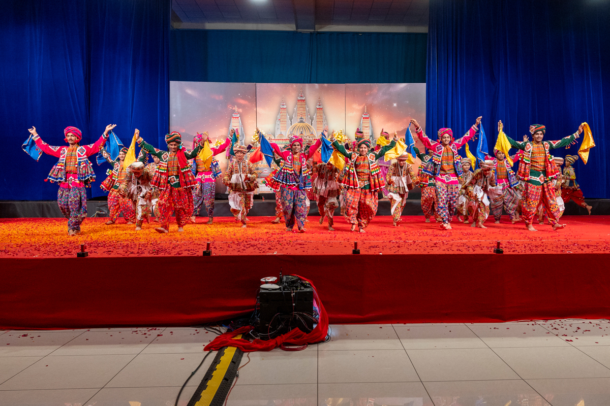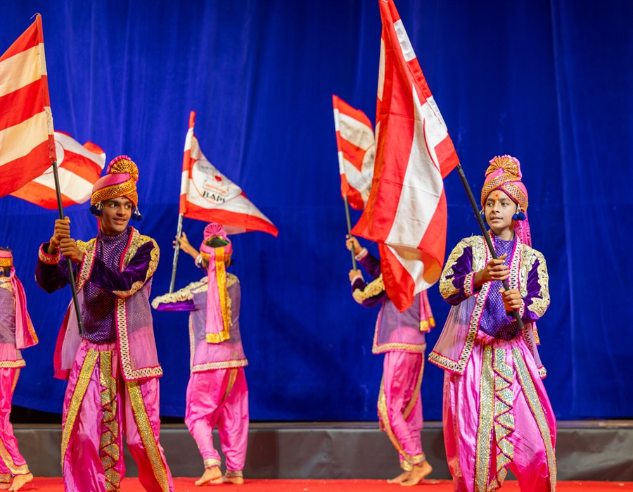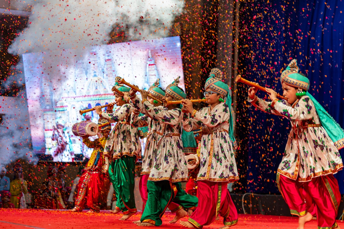 Youths sing kirtans in Swamishri's daily puja