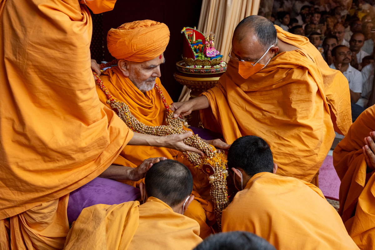Swamishri honored with a garland