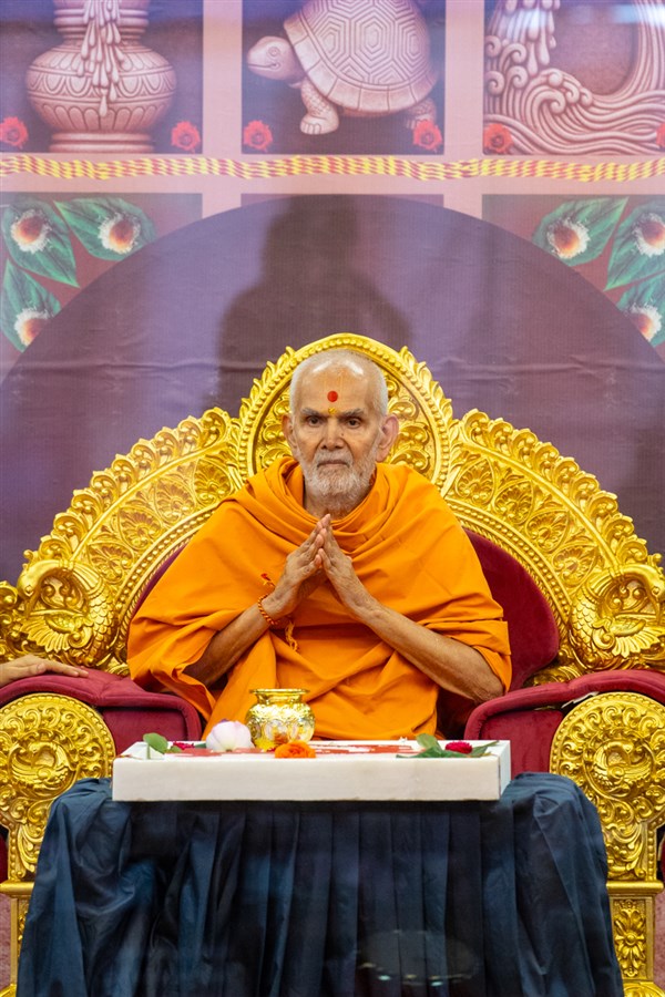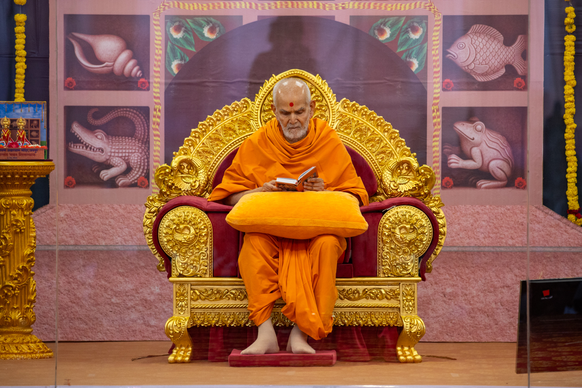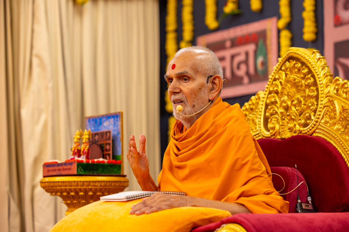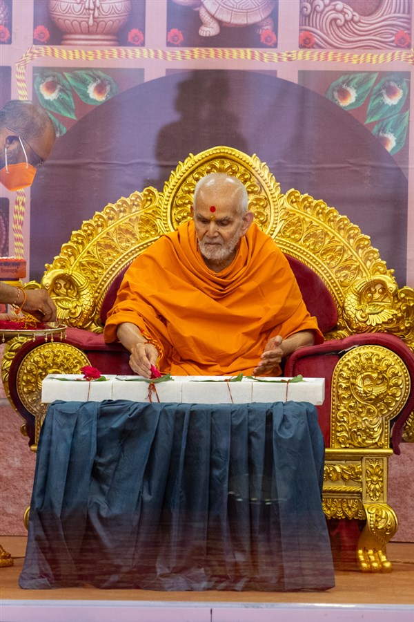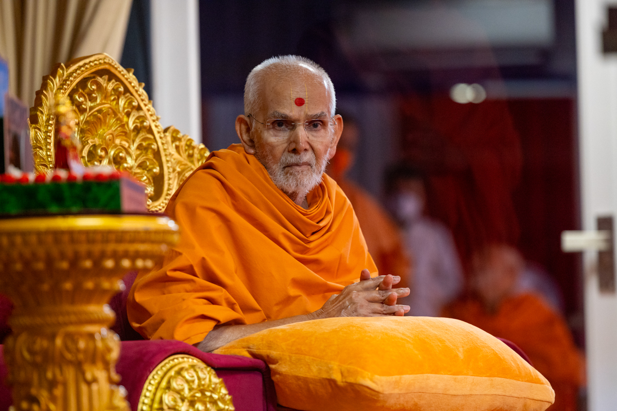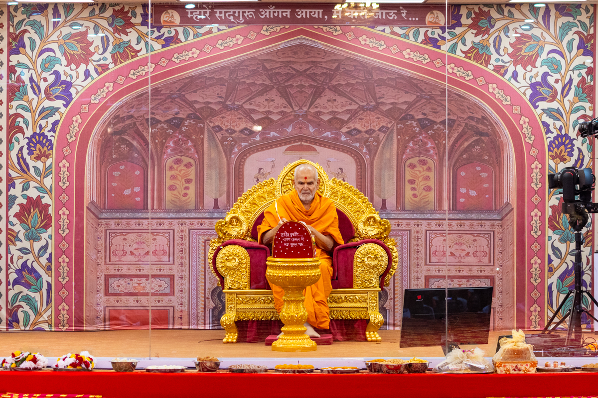 Param Pujya Mahant Swami Maharaj performs his daily puja