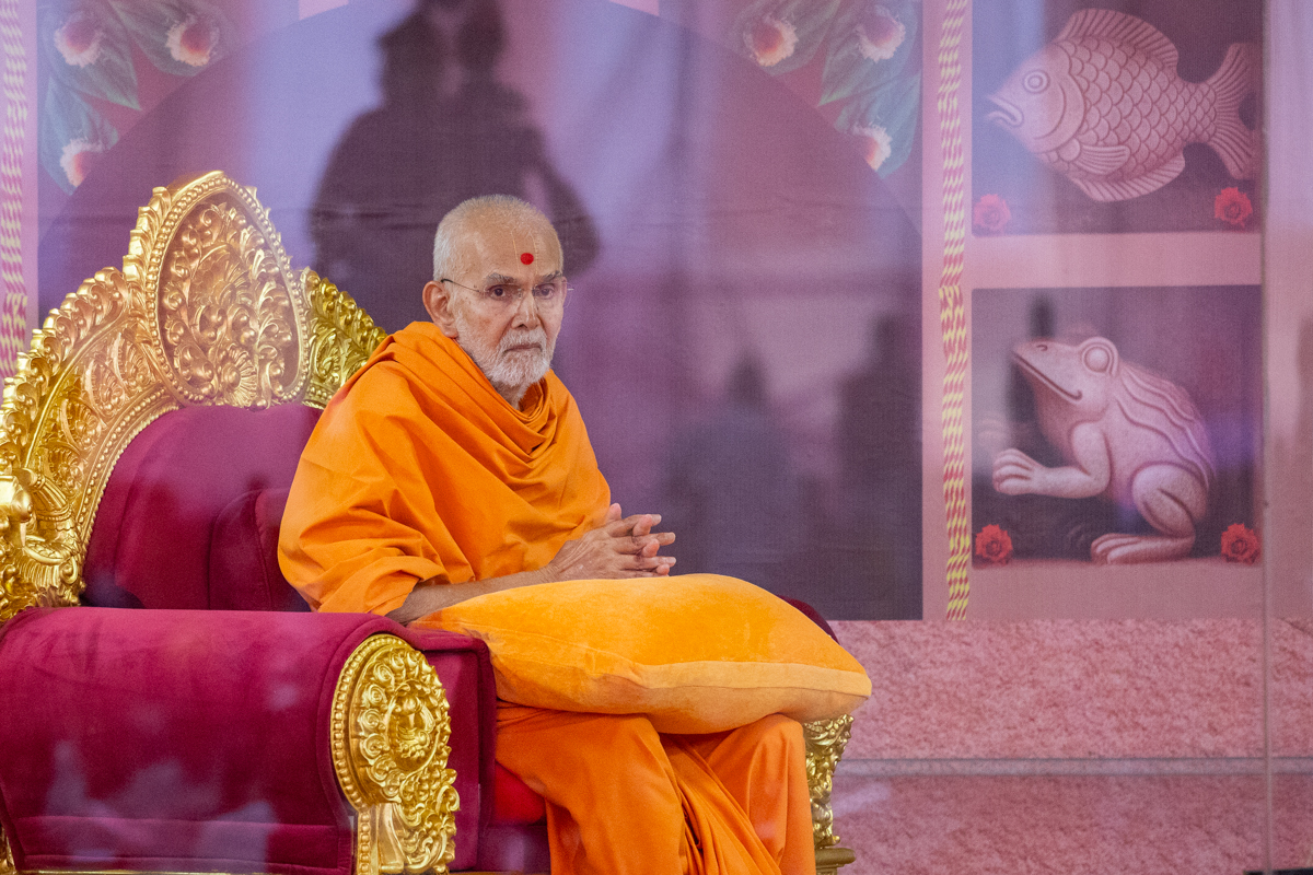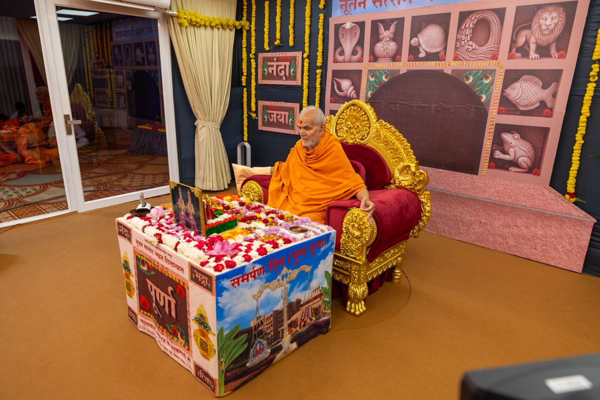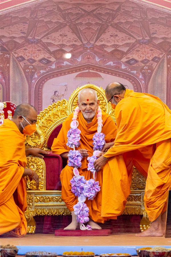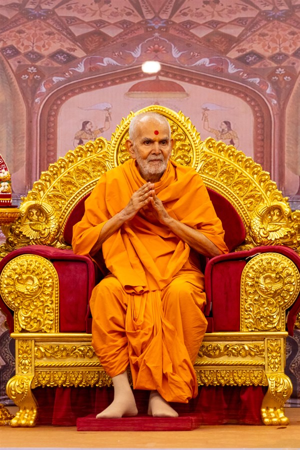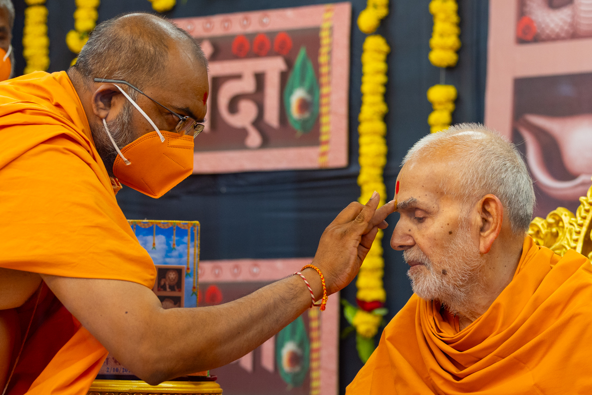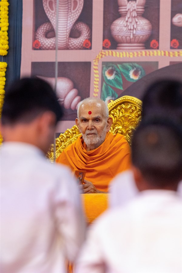 Param Pujya Mahant Swami Maharaj performs his daily puja